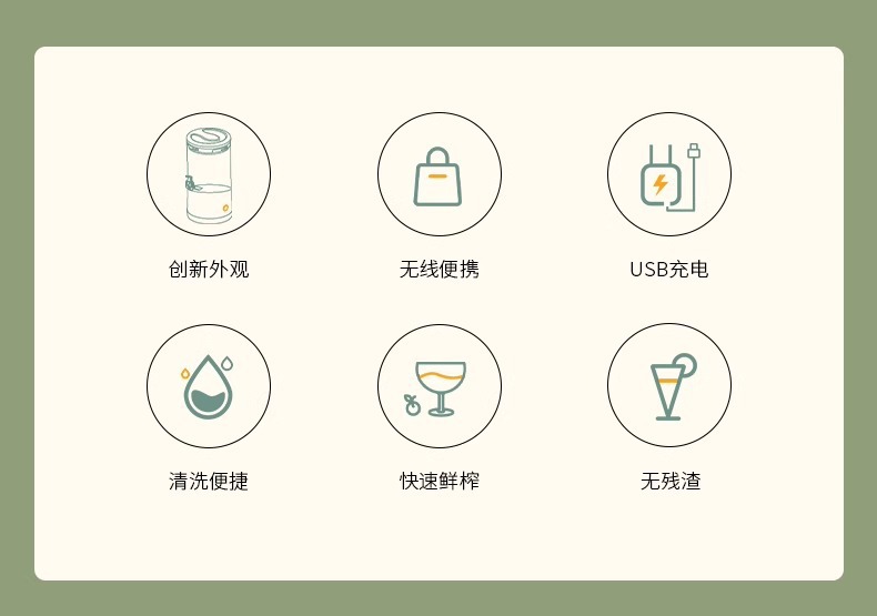 跨境新款家用电动榨橙器原汁机无线榨汁机水果料理机充电压榨汁机