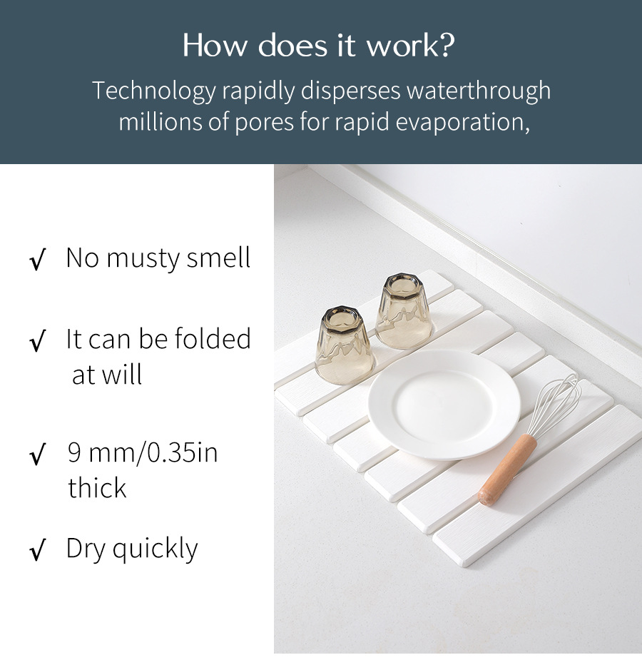 跨境硅藻土折叠吸水垫厨房餐具碗盘干燥垫浴室台面垫杯垫沥水地垫