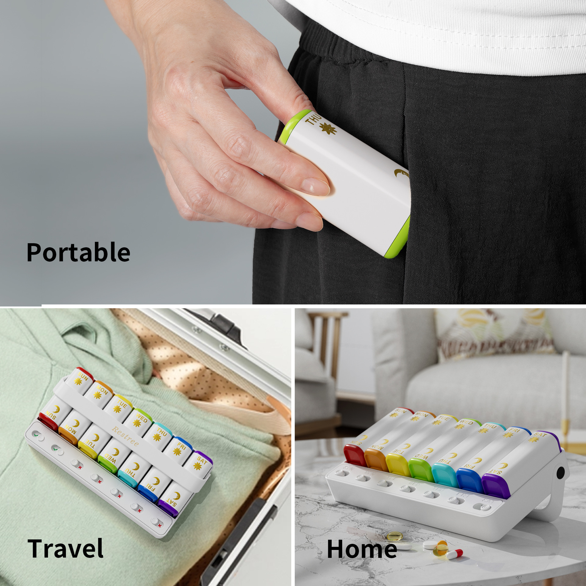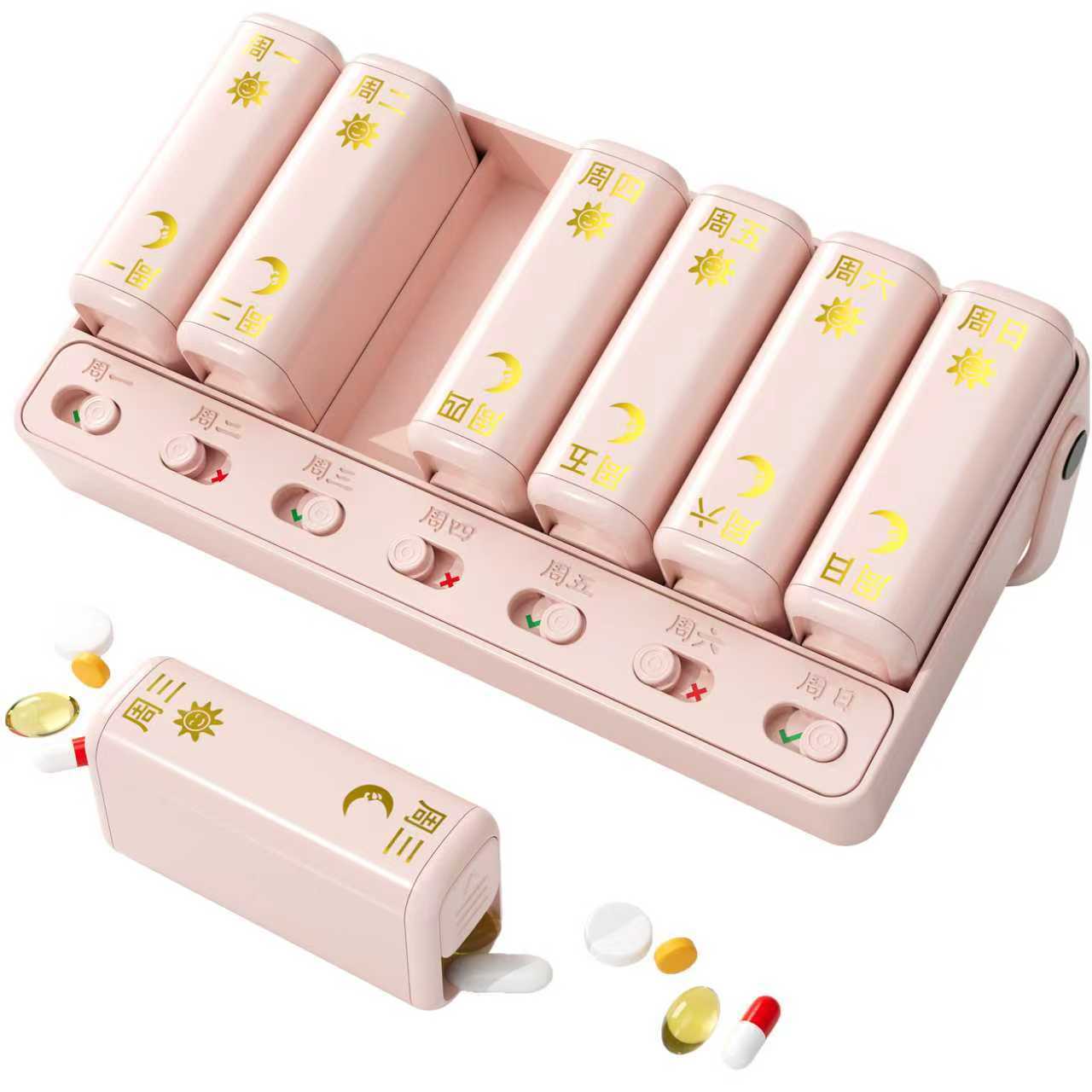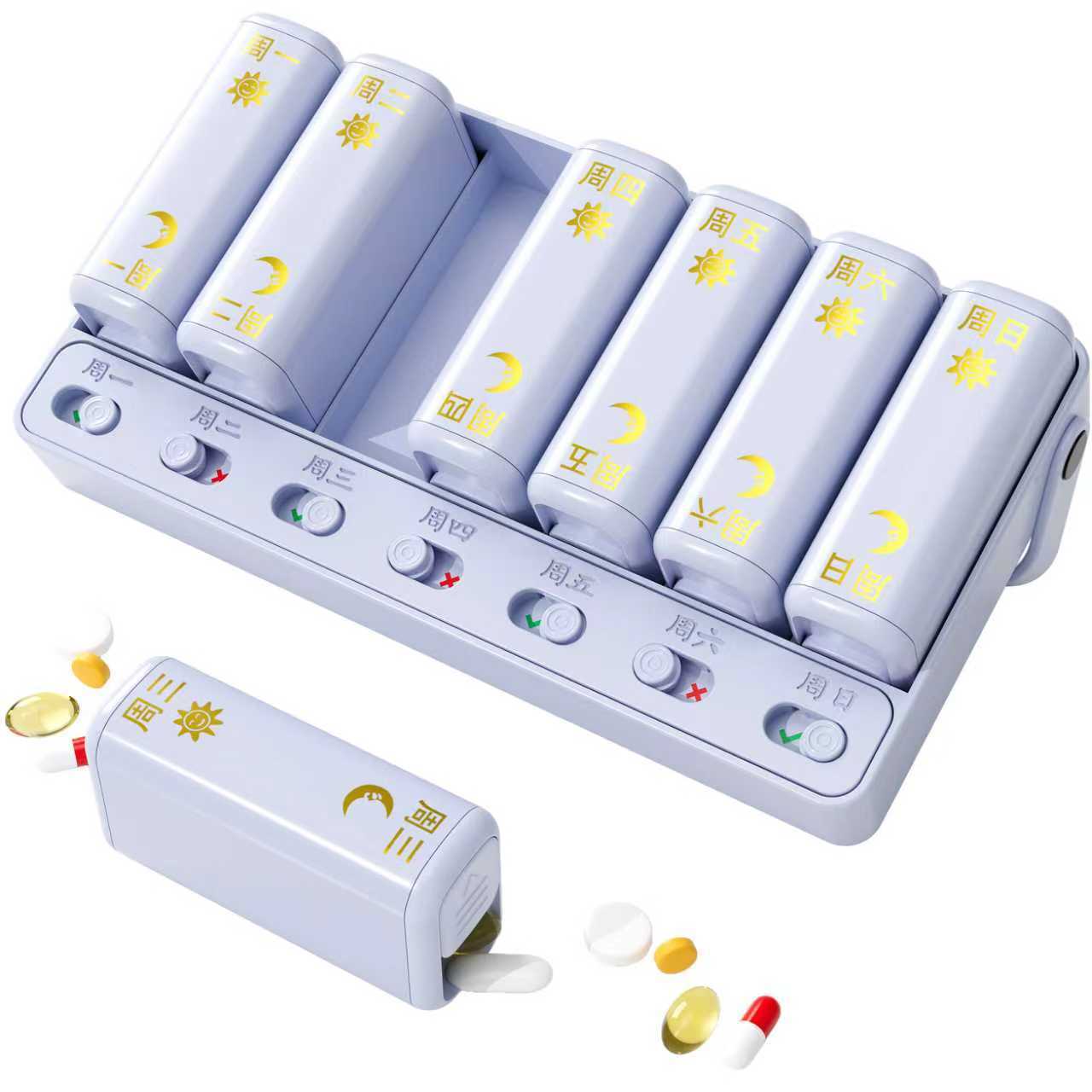 一周7天支架14格药盒 分装收纳盒 便携迷你小药盒