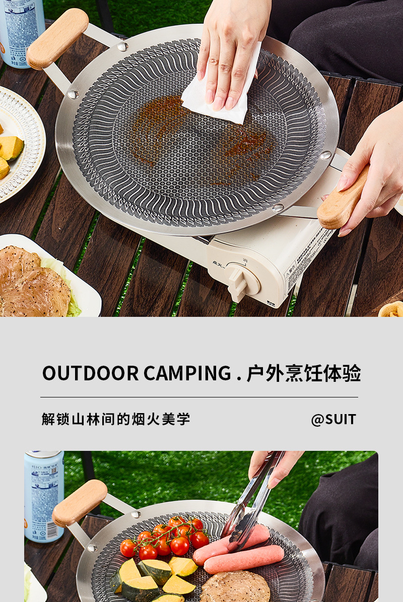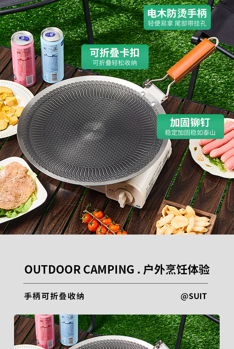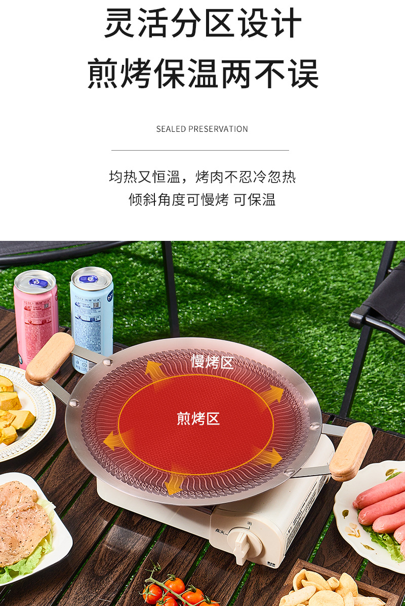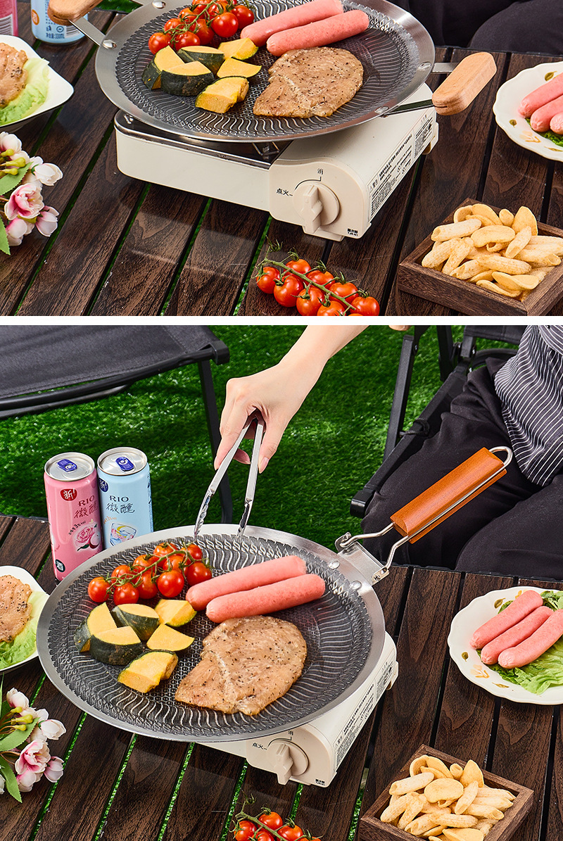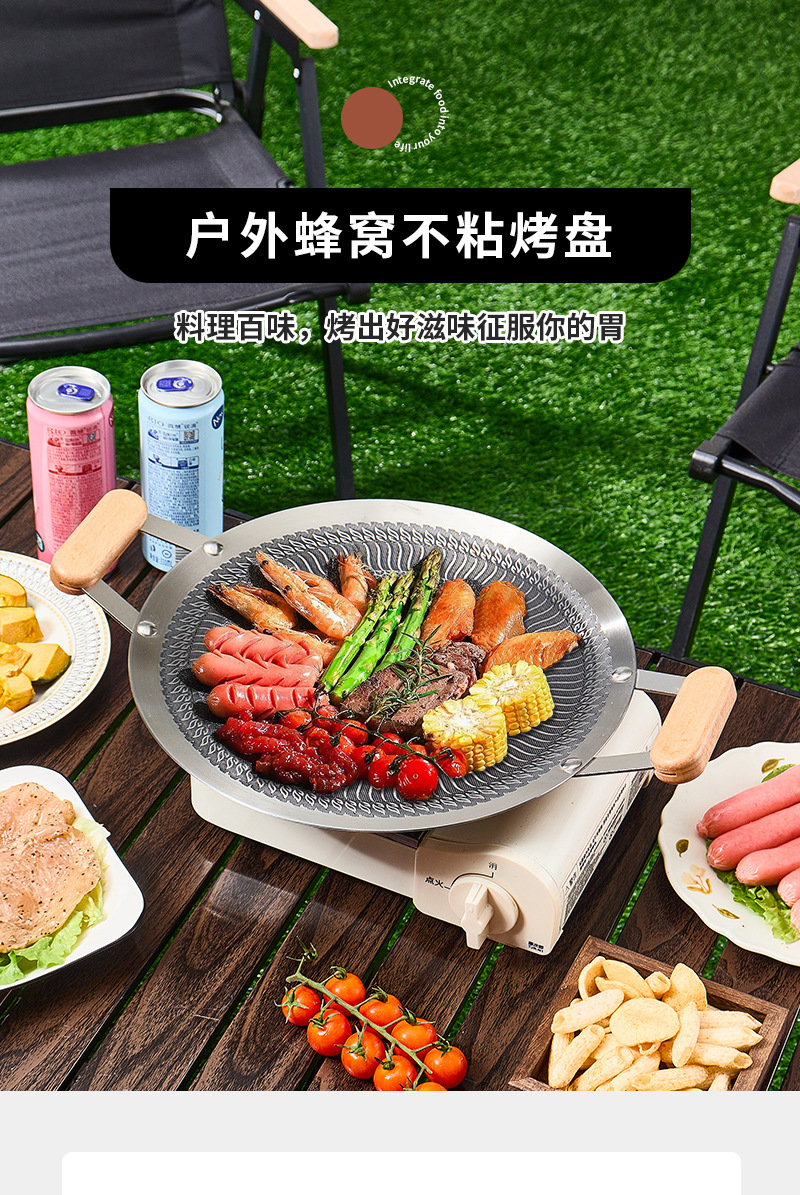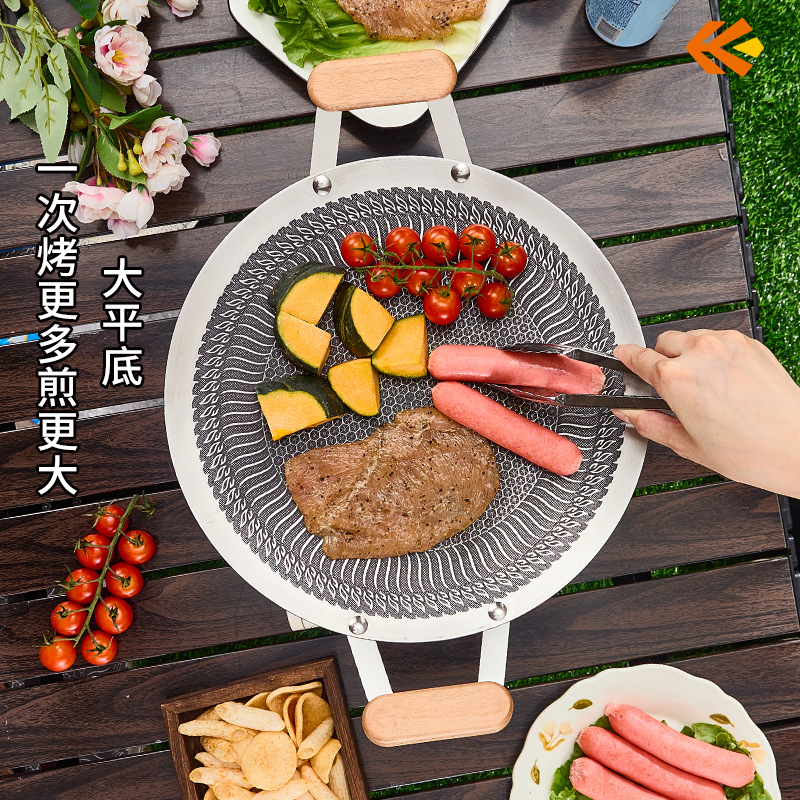 日式蜂窝不沾烤盘韩式烤肉盘户外露营烧烤盘烤肉店专用圆形煎烤盘