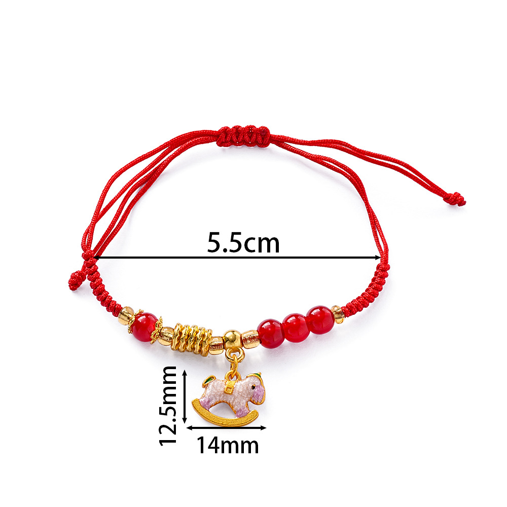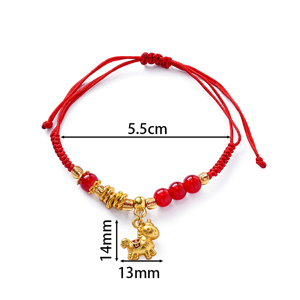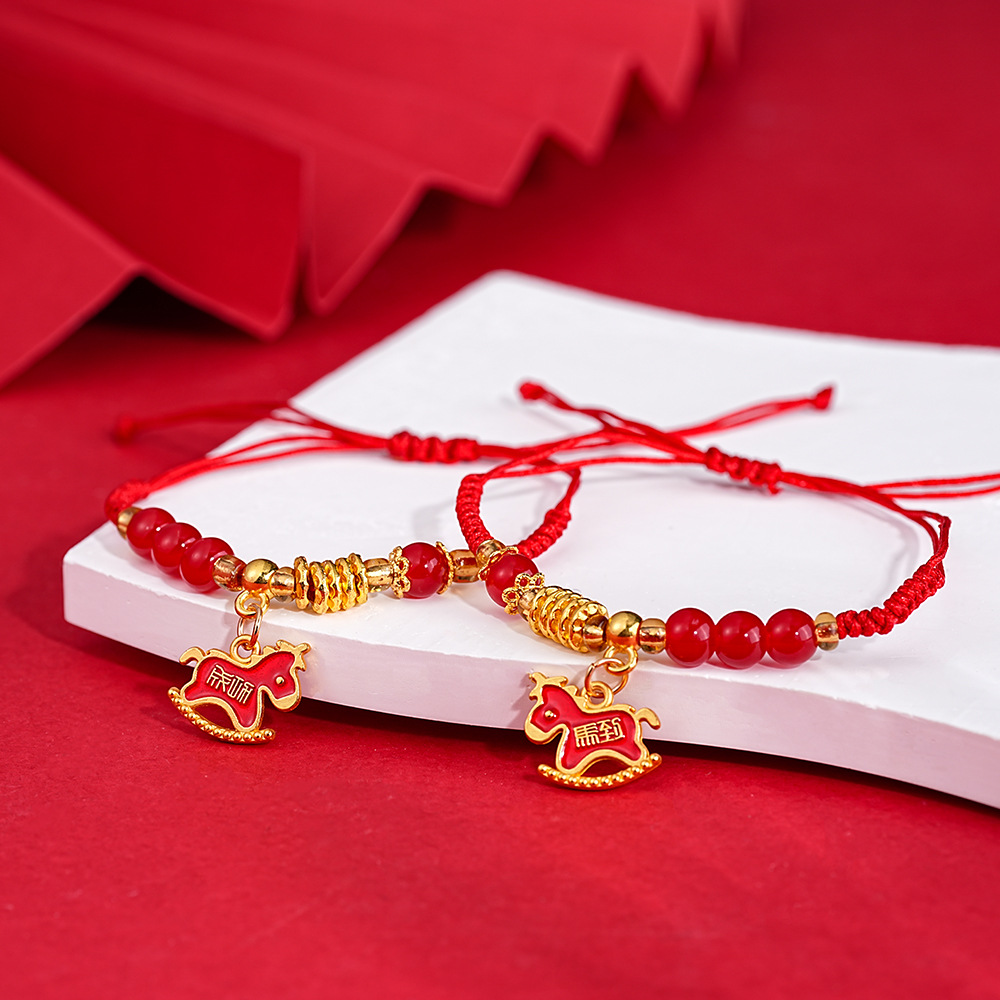 新中式复古简约红绳本命年小马手链轻奢高级感手环时尚个性手饰女
