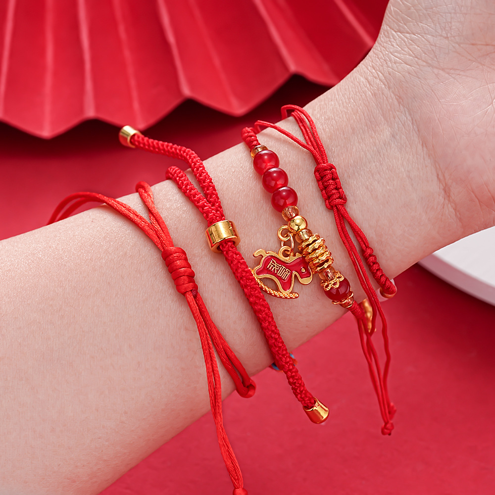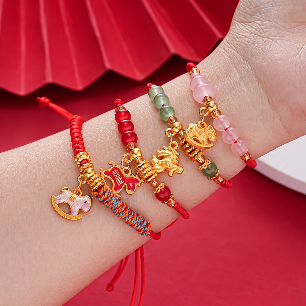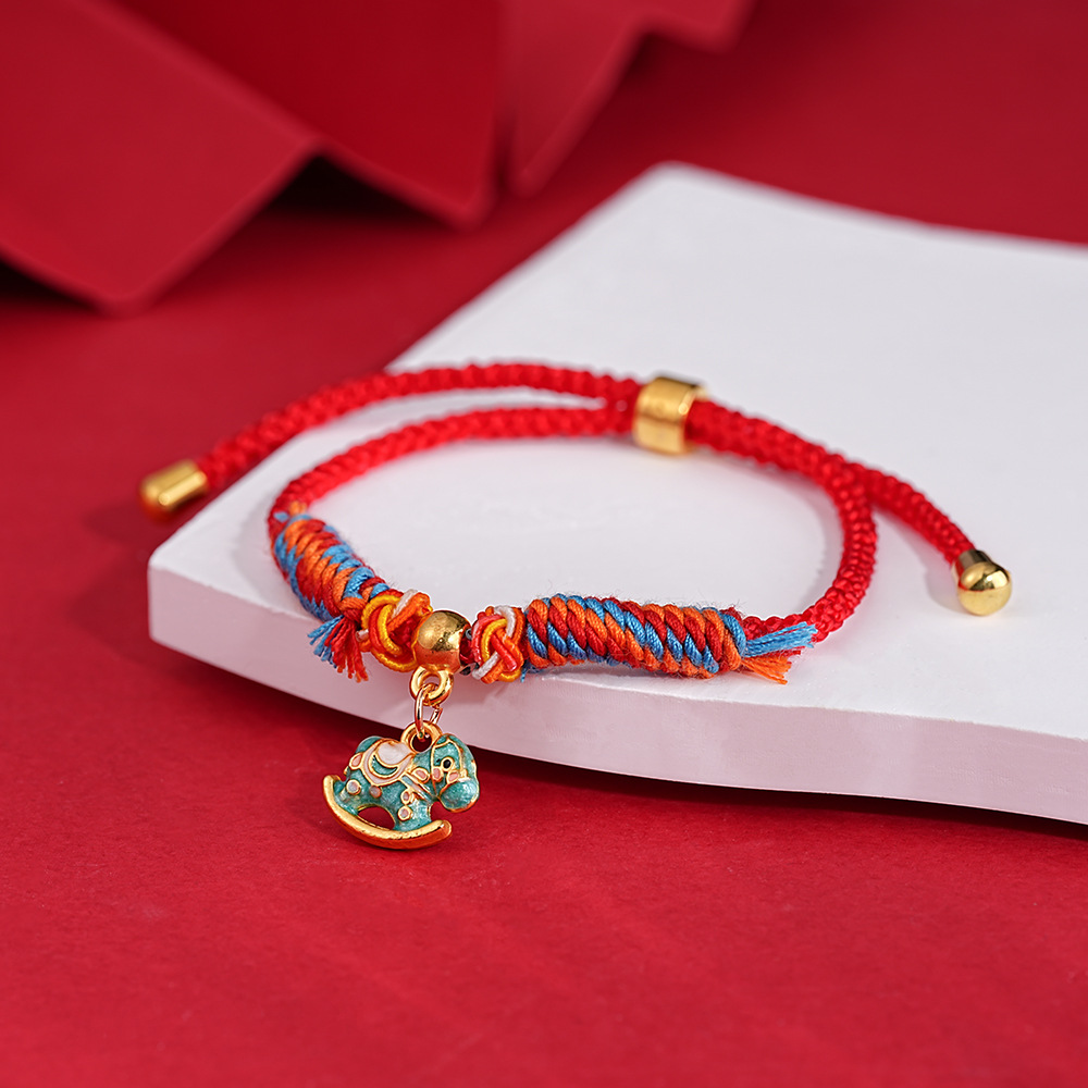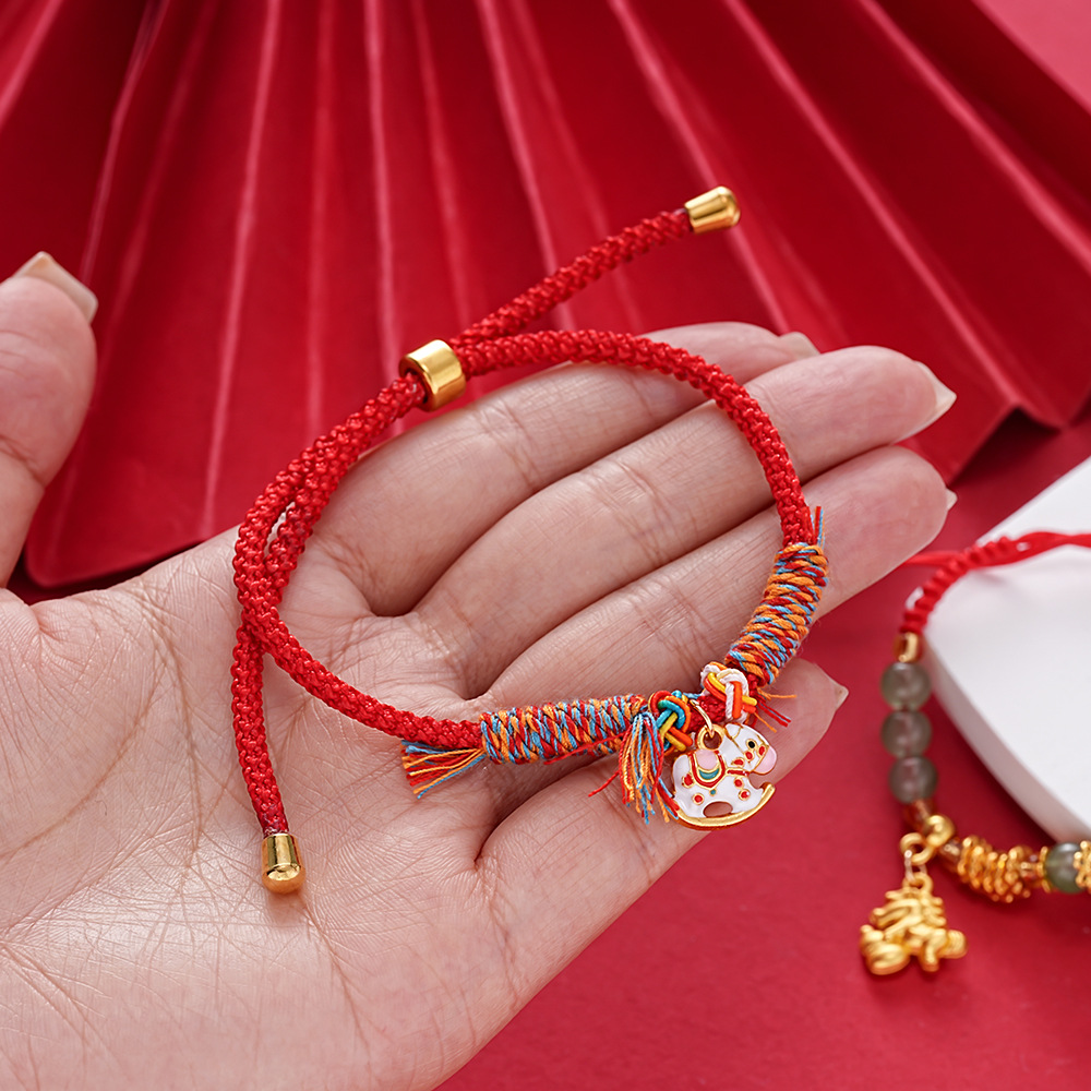 新中式复古简约红绳本命年小马手链轻奢高级感手环时尚个性手饰女