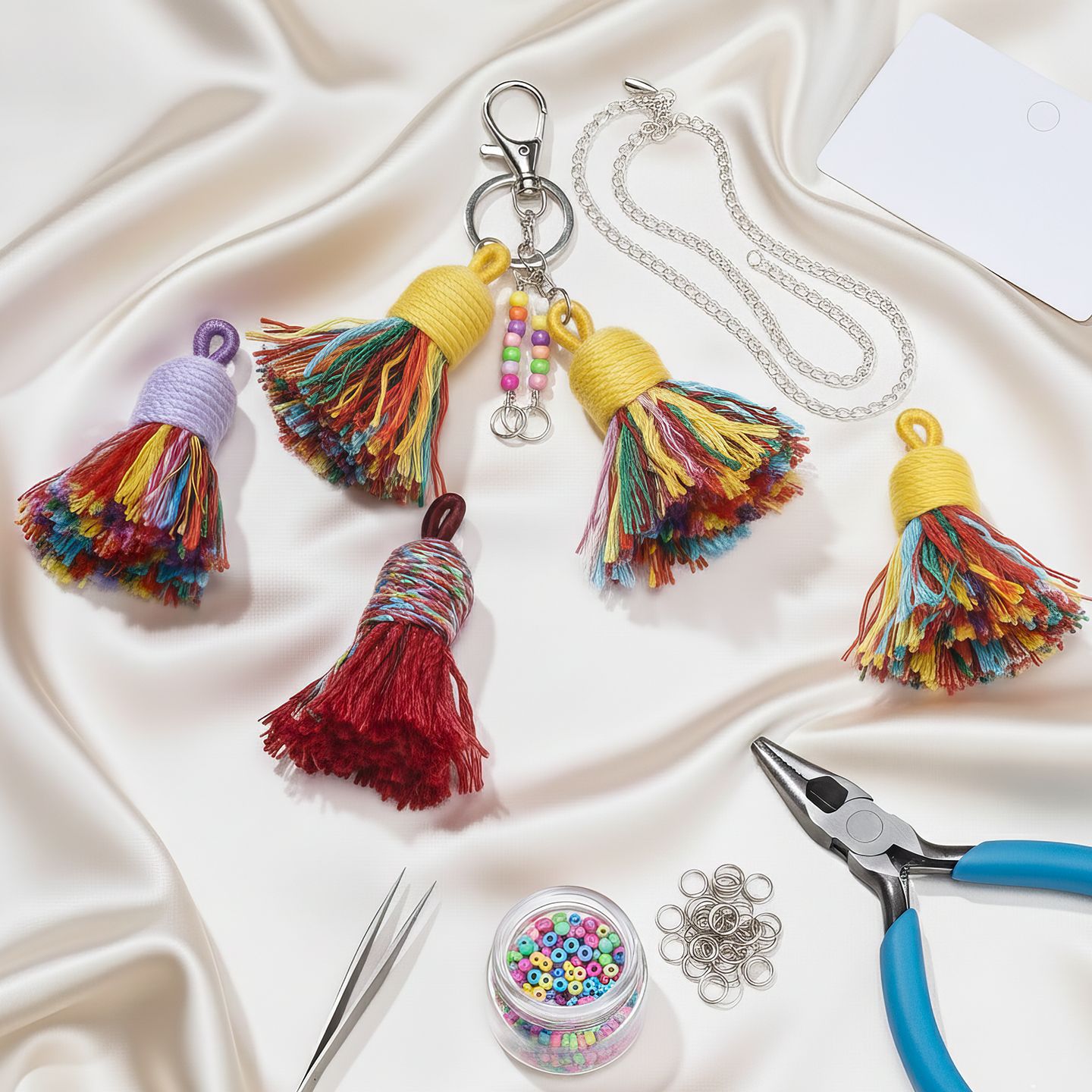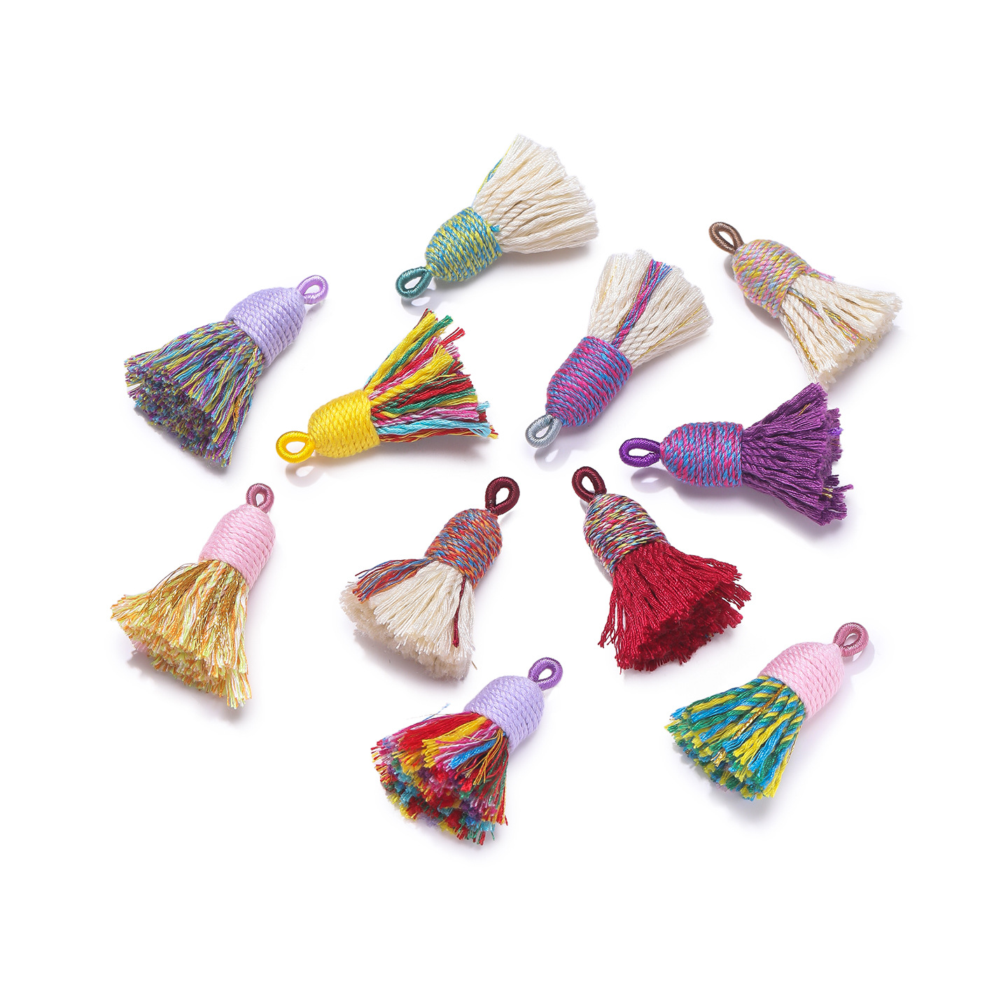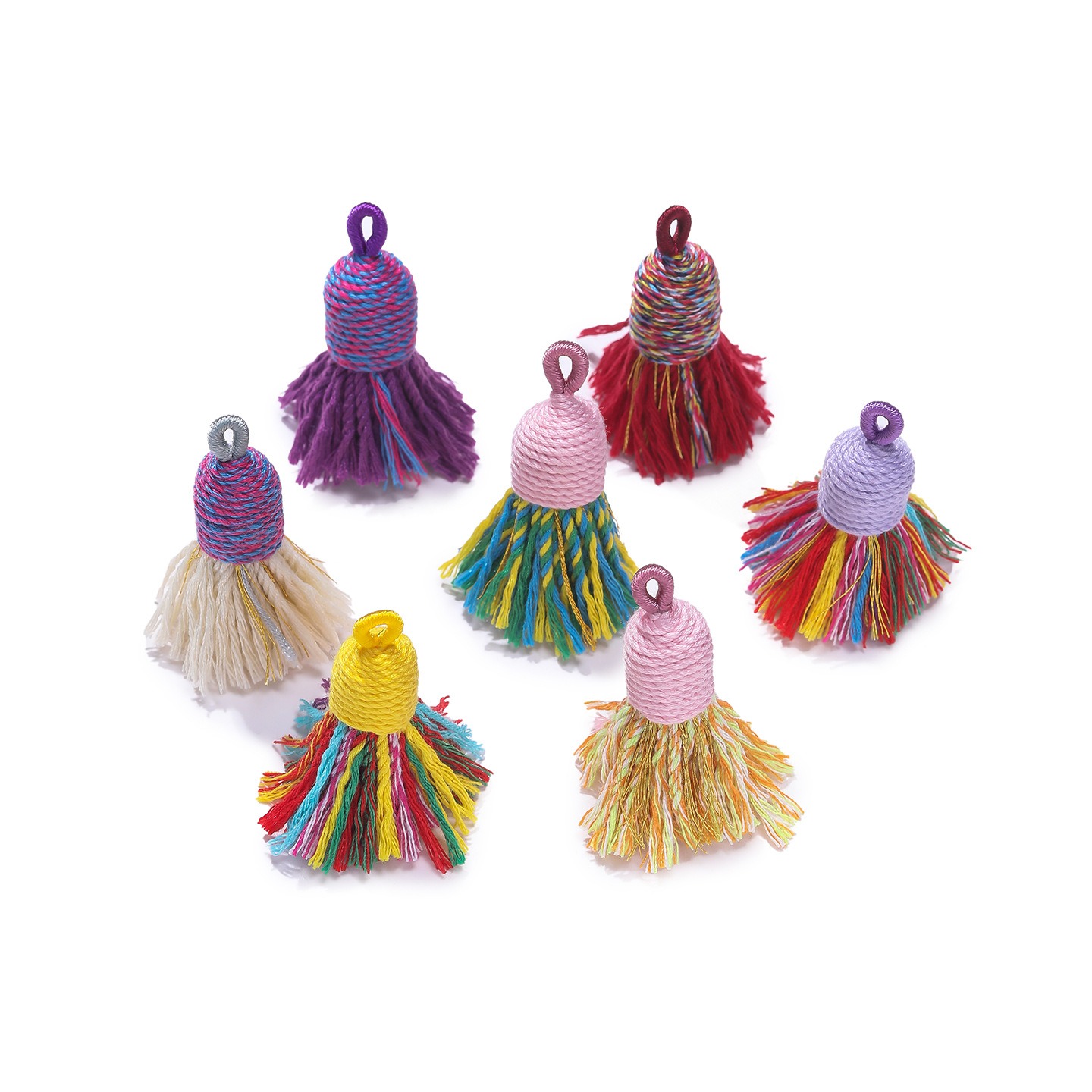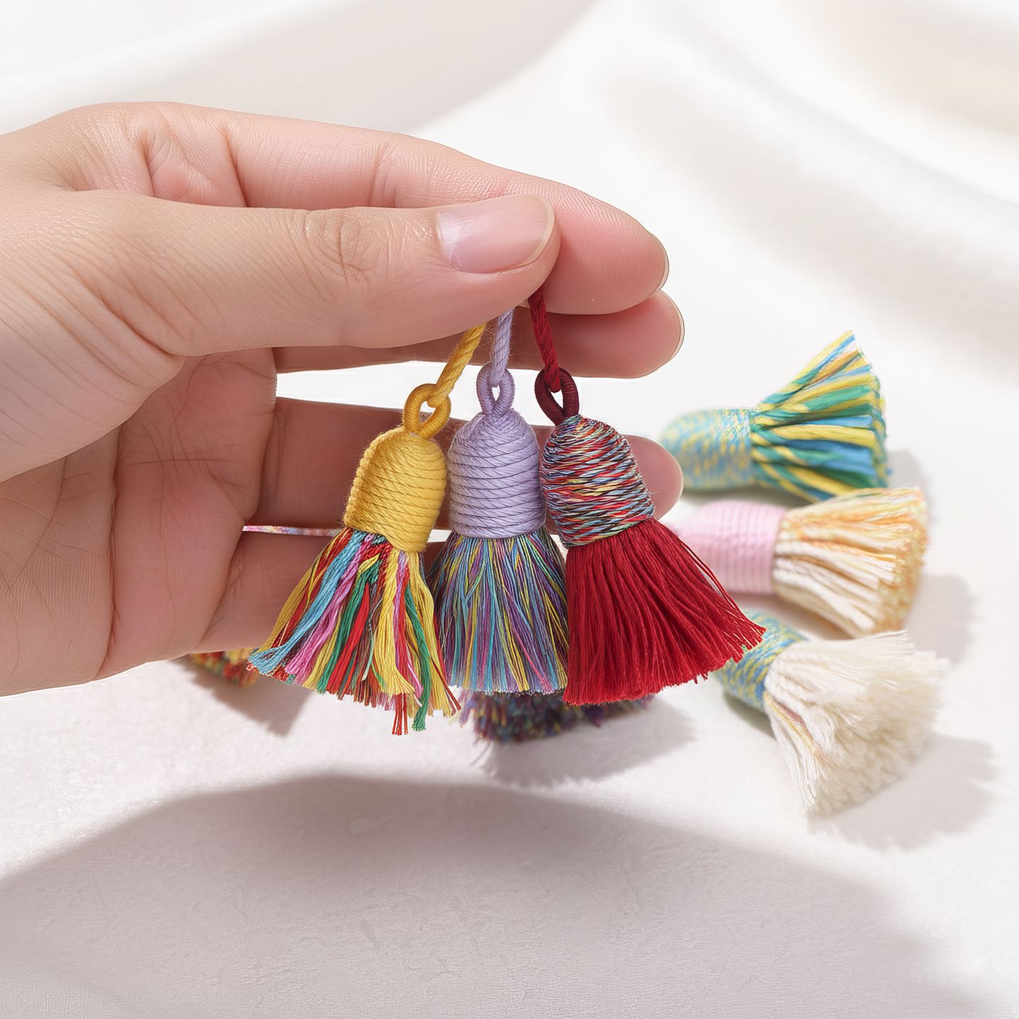 藏式短胖手搓棉线小流苏吊坠 手工diy钥匙扣手串包挂装饰饰品配件