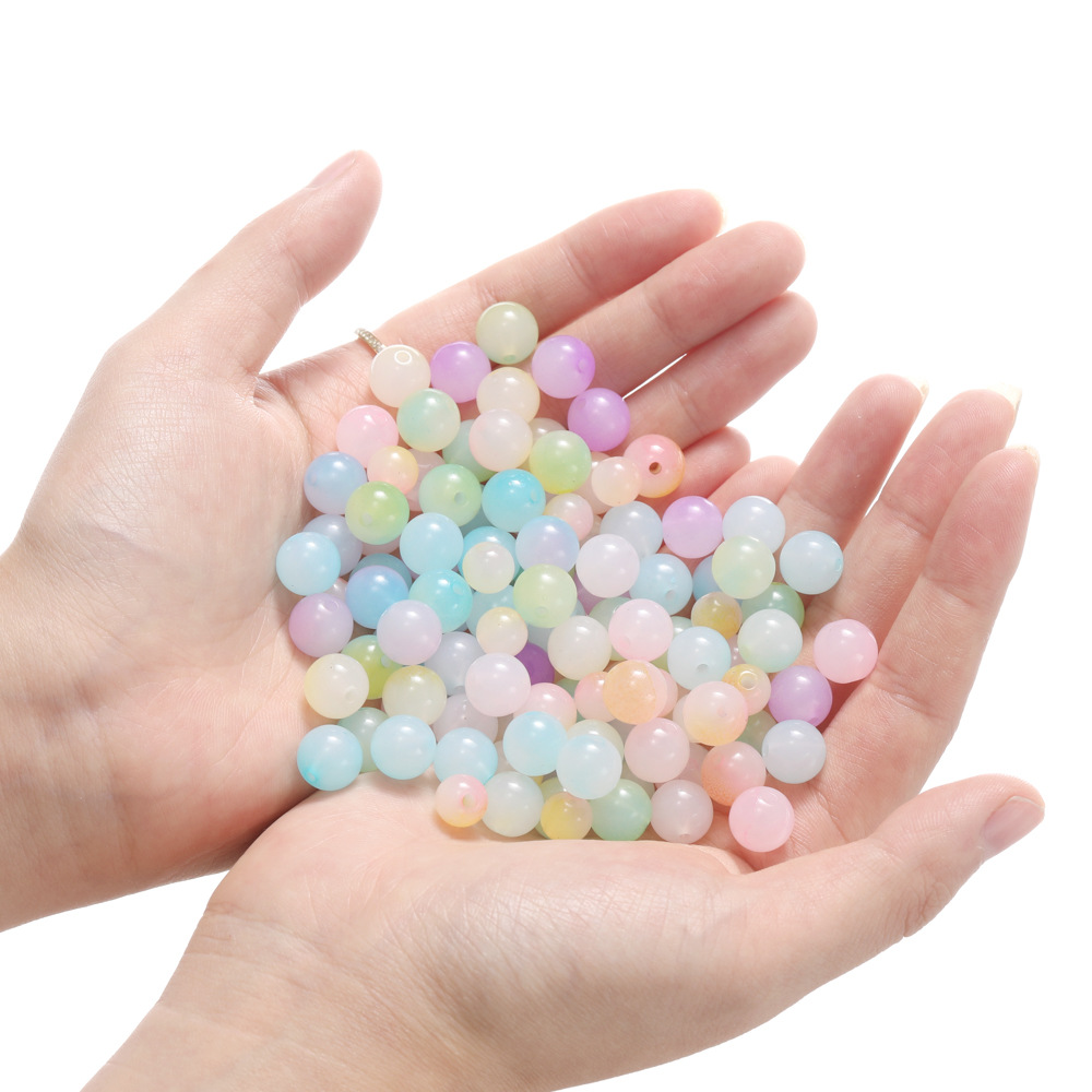 8mm双色仿玉石玻璃珠琉璃珠圆珠散珠手工diy手链饰品配件串珠配珠