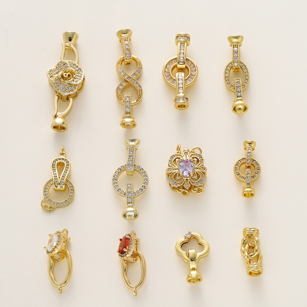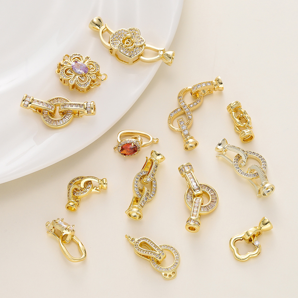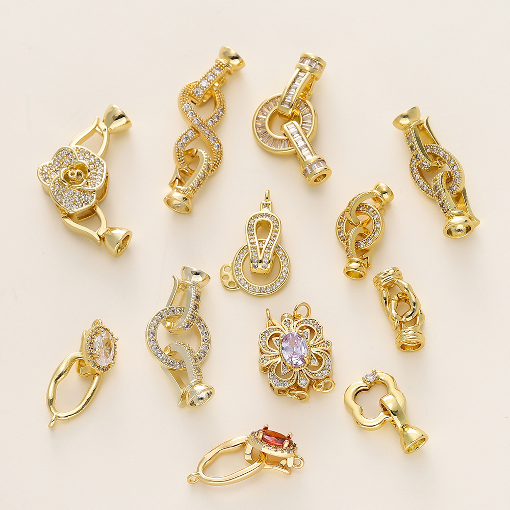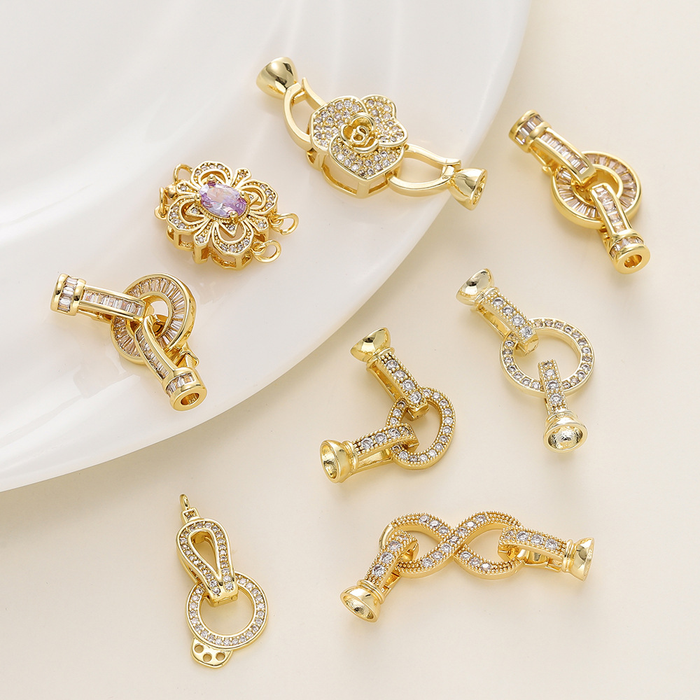 保色18K包金手链连接扣手工diy饰品配件镶锆石珍珠项链材料收尾扣