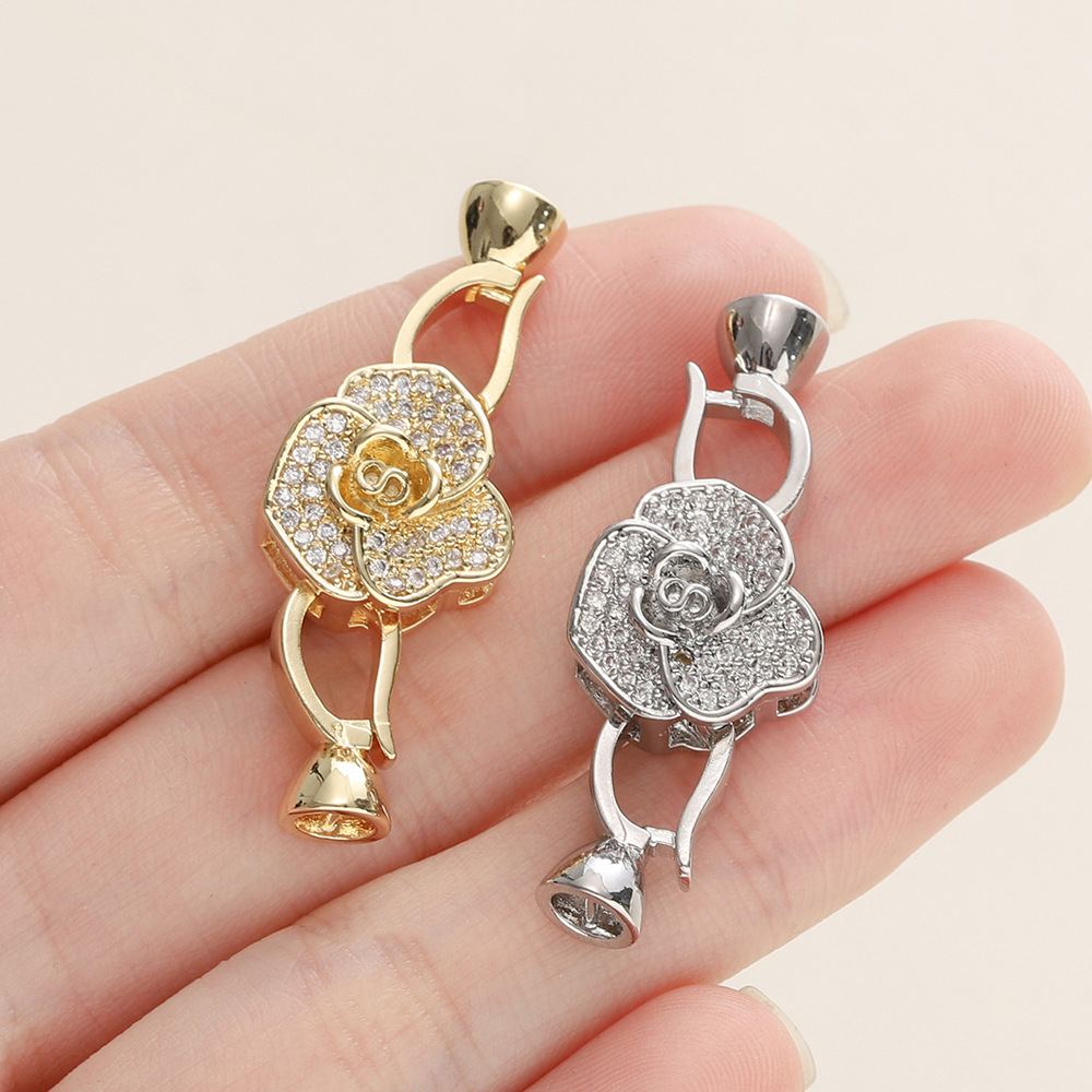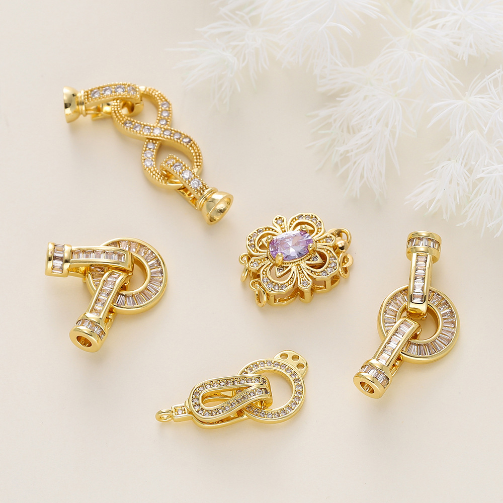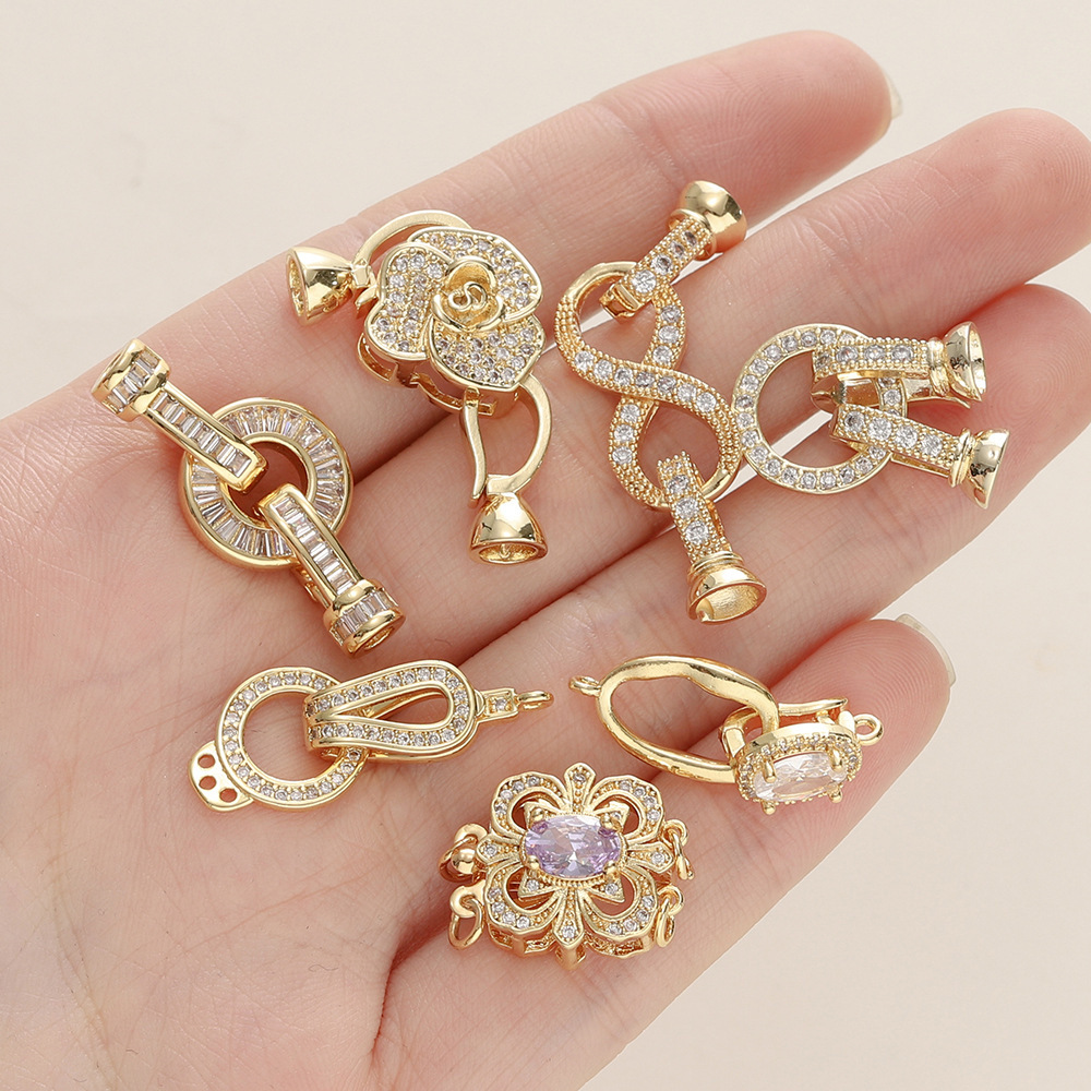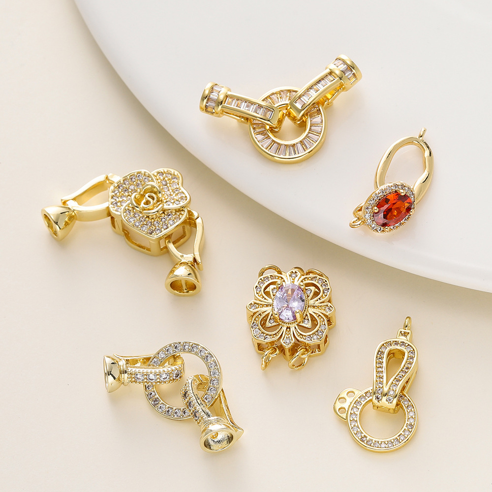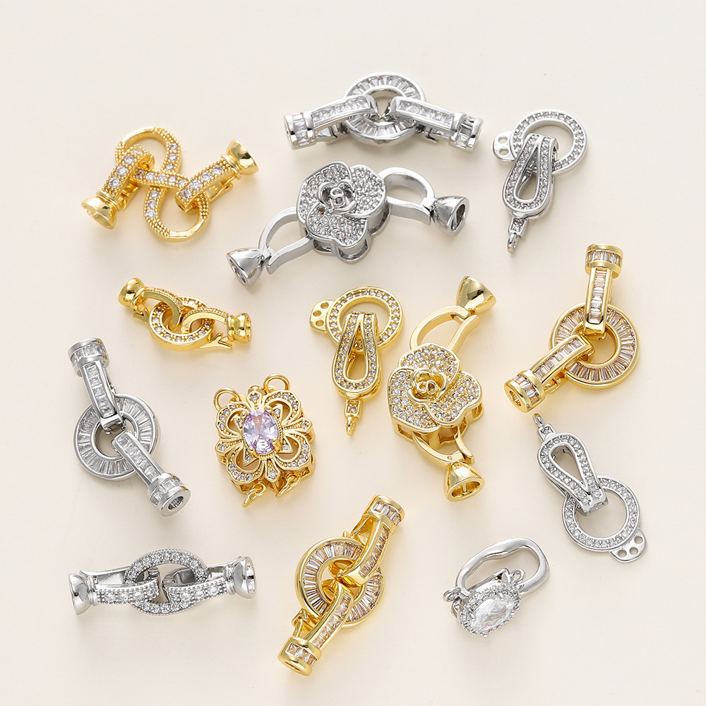 保色18K包金手链连接扣手工diy饰品配件镶锆石珍珠项链材料收尾扣