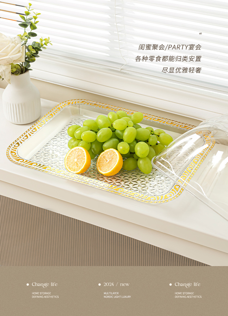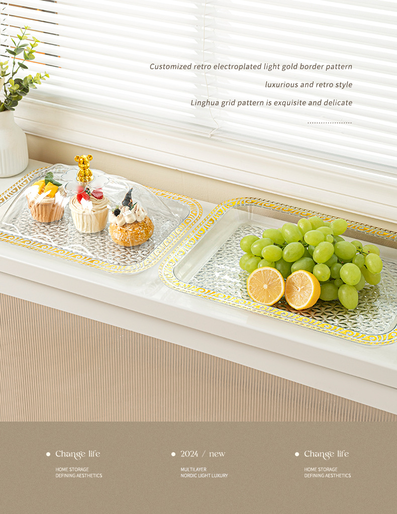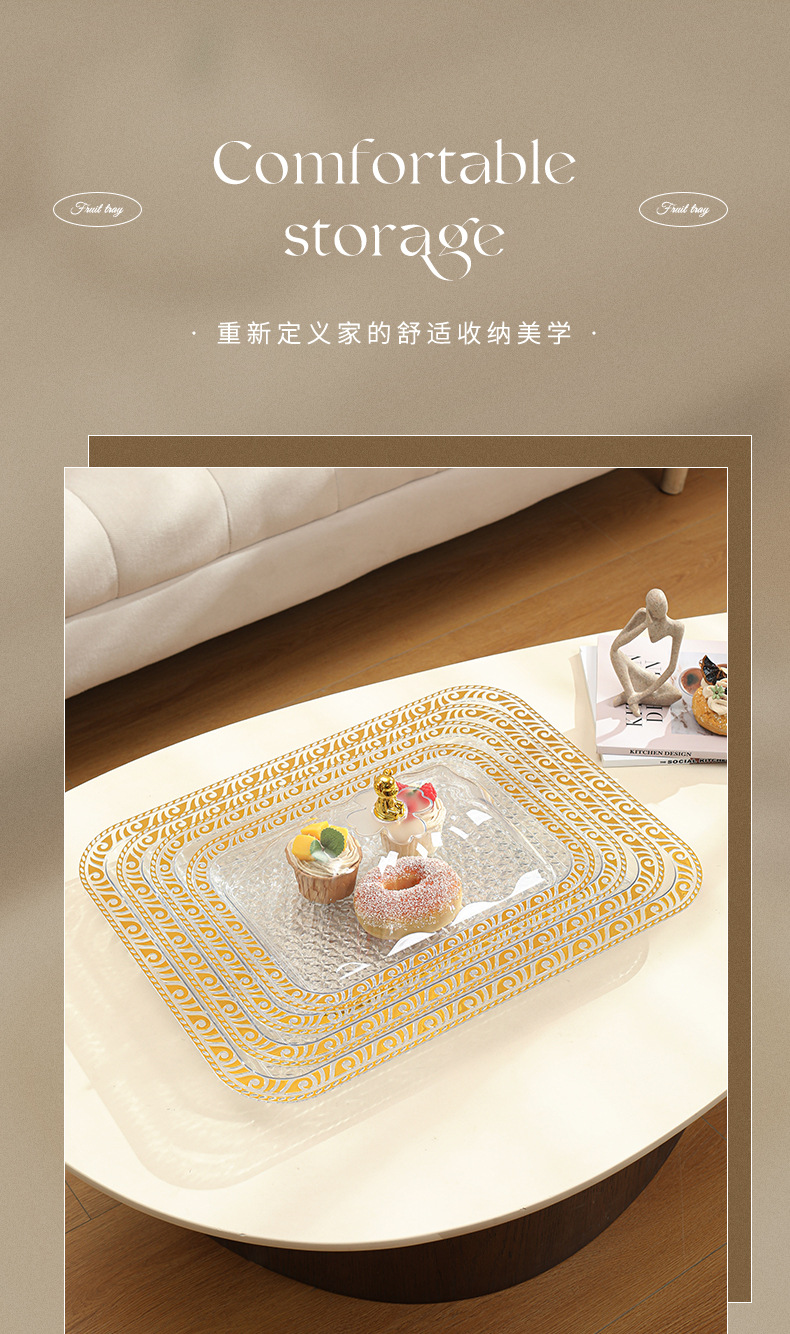 塑料托盘长方形家用轻奢高档客厅茶盘餐厅蛋糕点心托盘放茶杯水