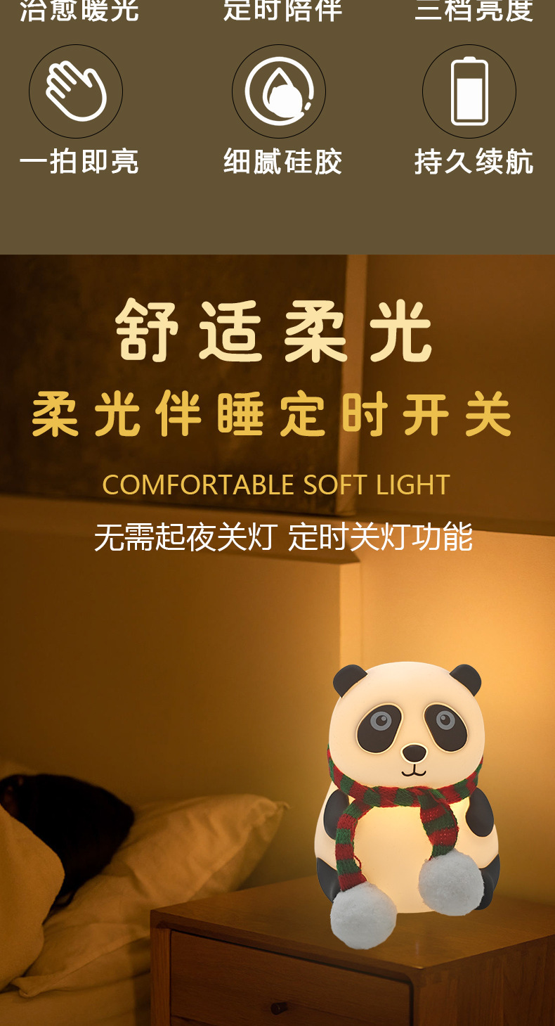 大眼熊猫小夜灯网红爆款女生卡通卧室睡眠灯婴儿伴睡氛围灯儿童