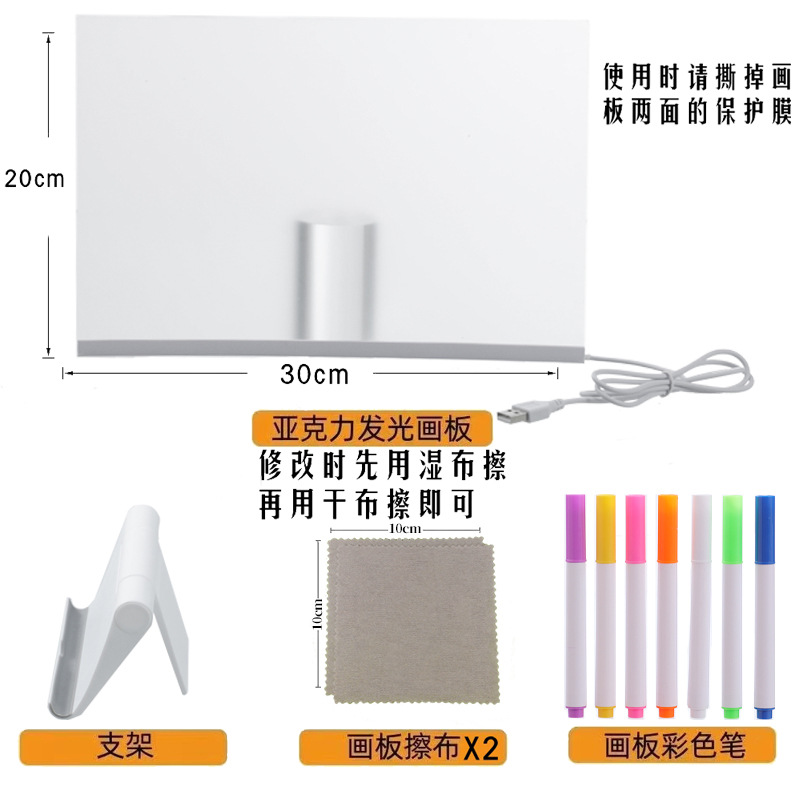 跨境可擦写DIY发光画板儿童涂鸦板广告牌亚克力留言板摆摊荧光板