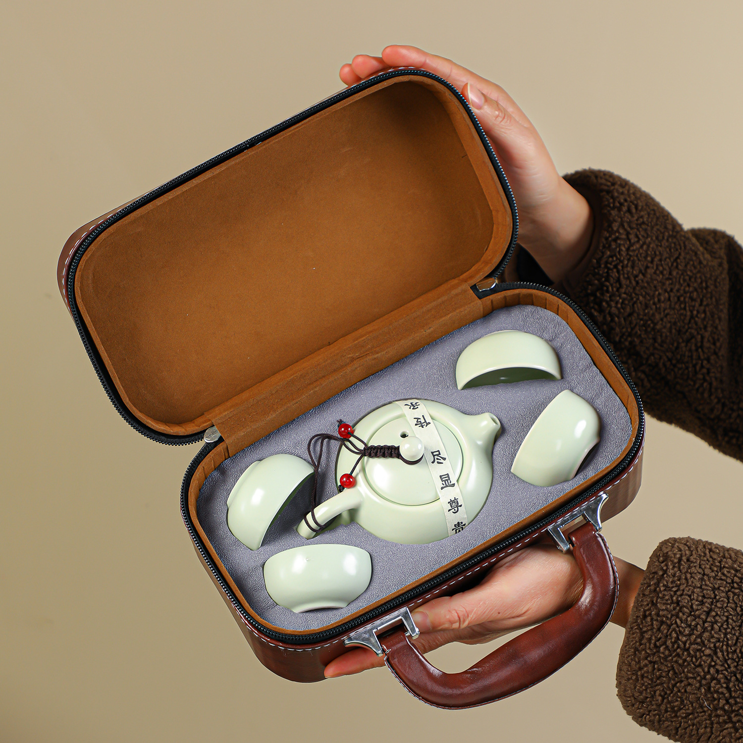 | 西施壶墨绿色一壶二杯-棕色皮盒 | USD $2.5 | 98410 set available |