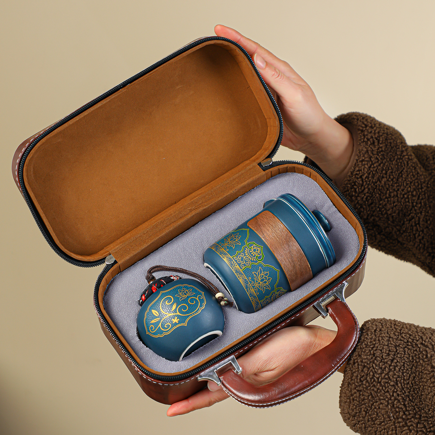 新款快客杯哑光茶具一壶三杯手提包旅行便携户外套装商务礼品套装