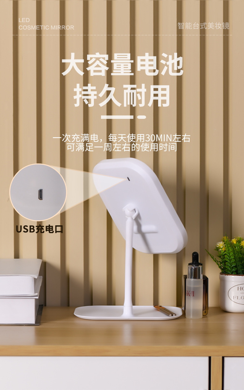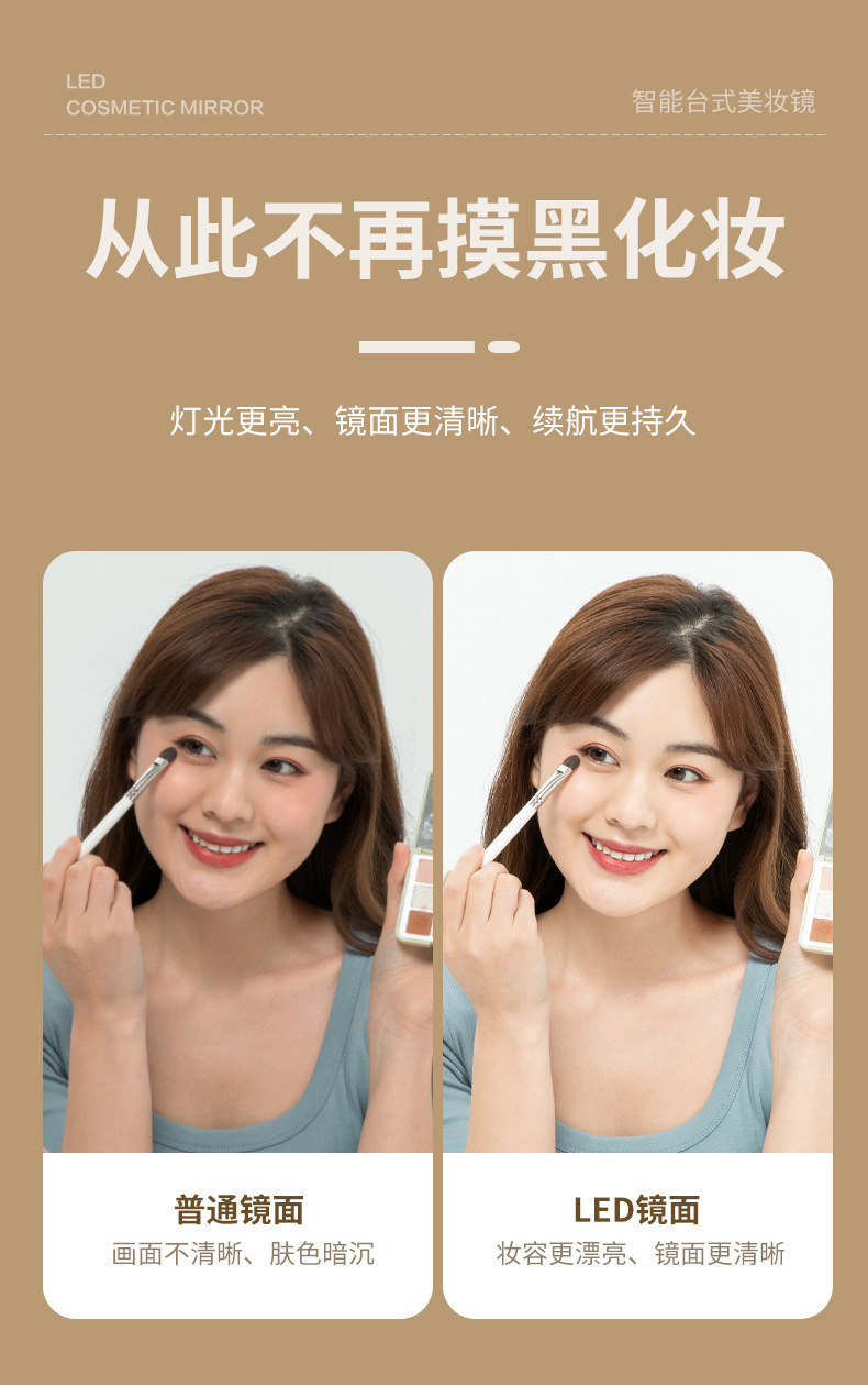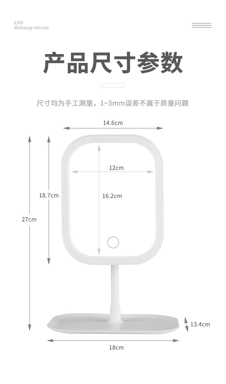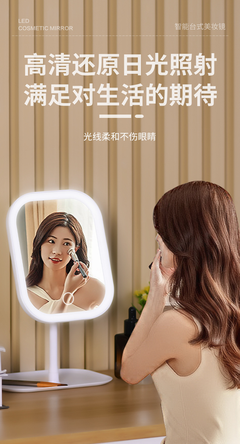 跨境led智能化妆镜带灯女生卧室梳妆台梳妆镜学生宿舍桌面补光镜