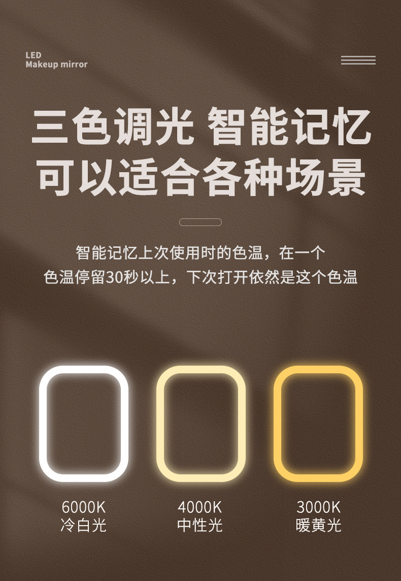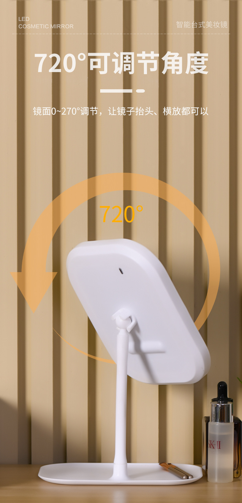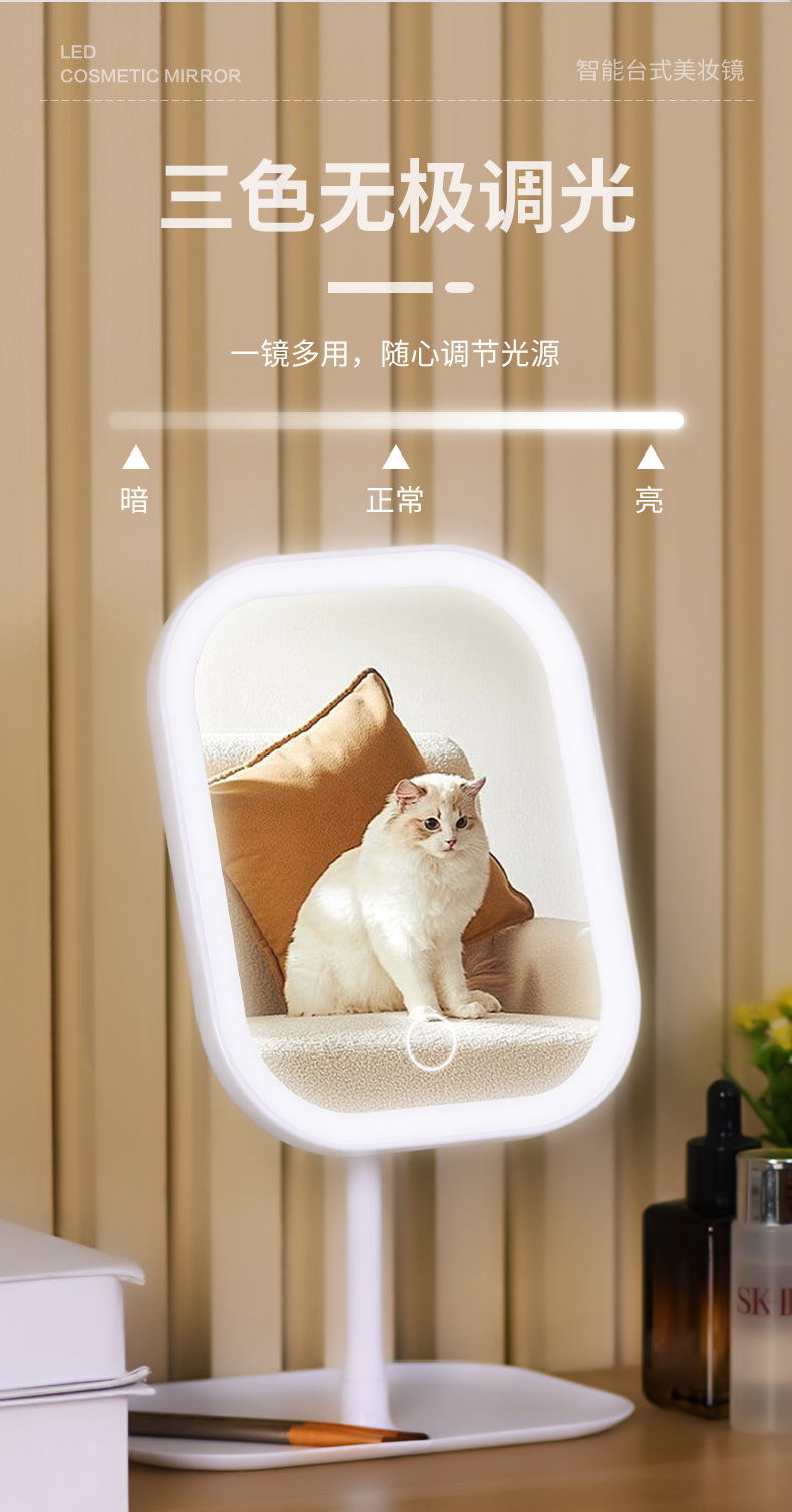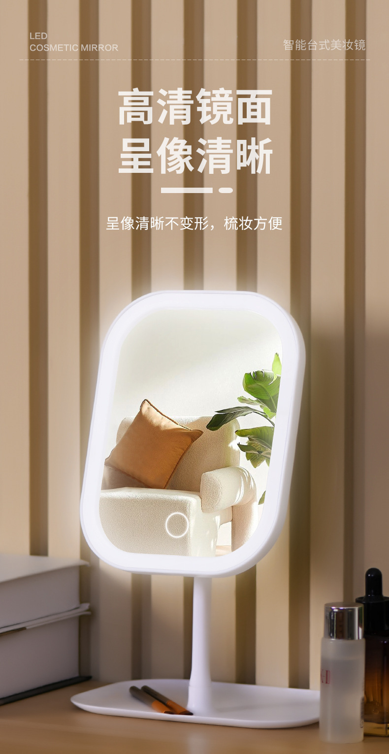 跨境led智能化妆镜带灯女生卧室梳妆台梳妆镜学生宿舍桌面补光镜
