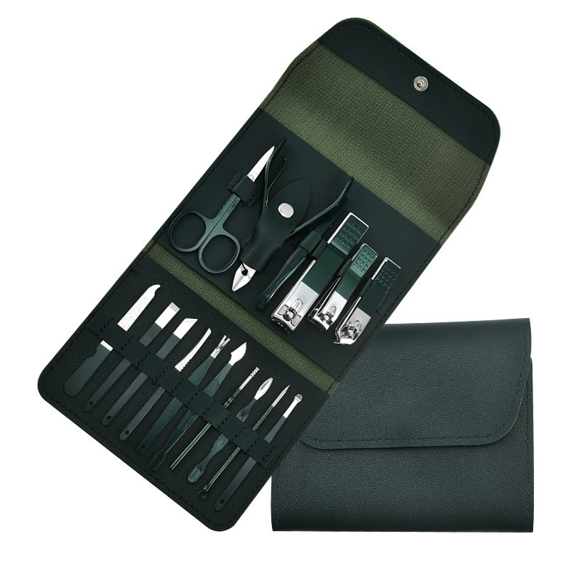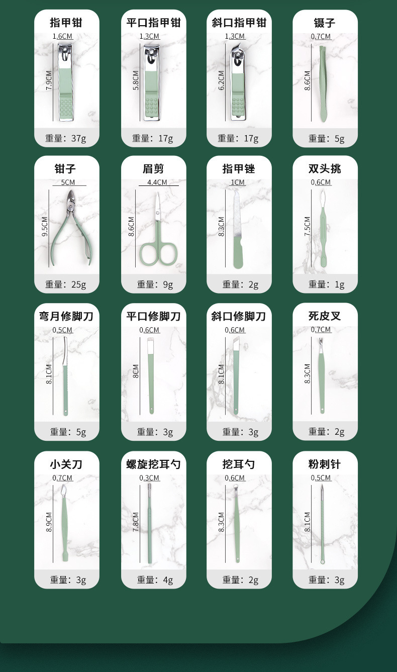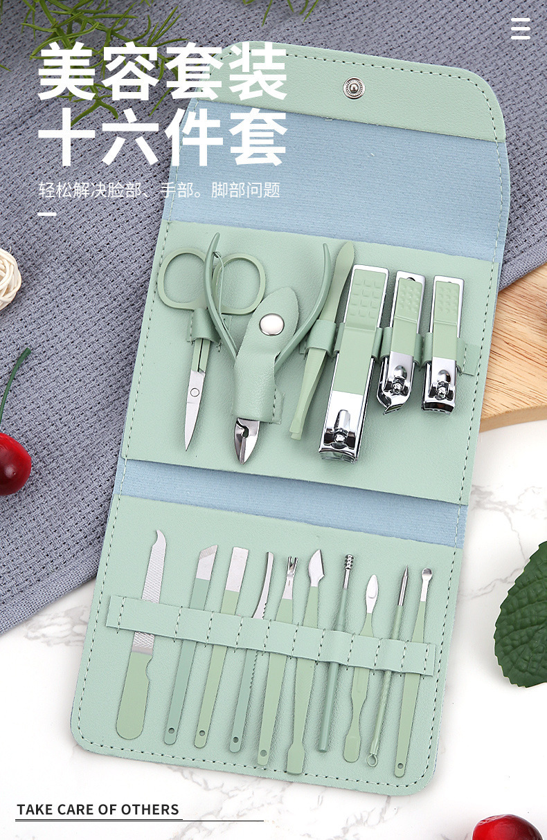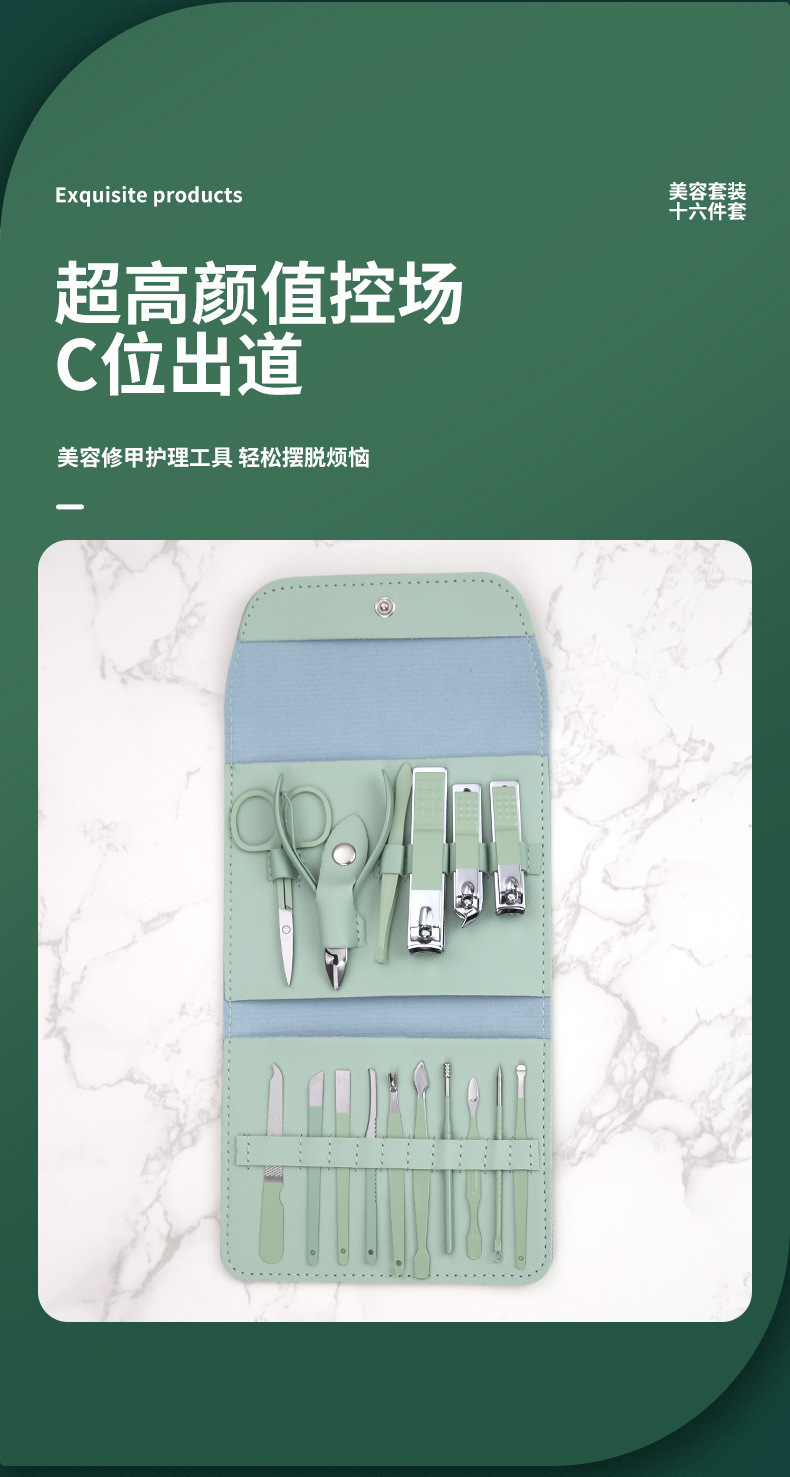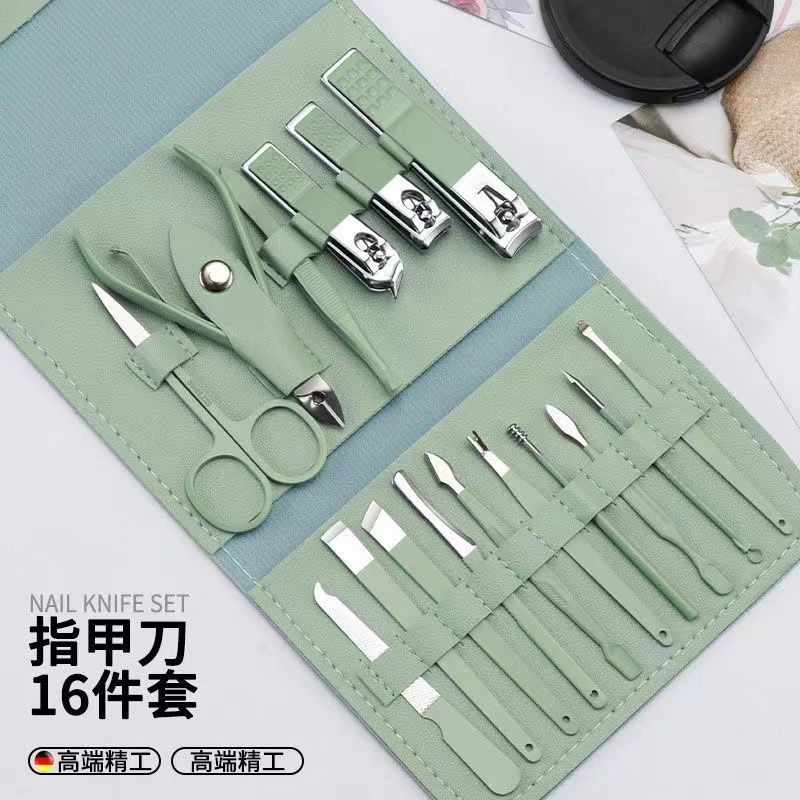 跨境不锈钢指甲刀套装16件套套装 家用修脚工具修甲剪刀斜口剪刀