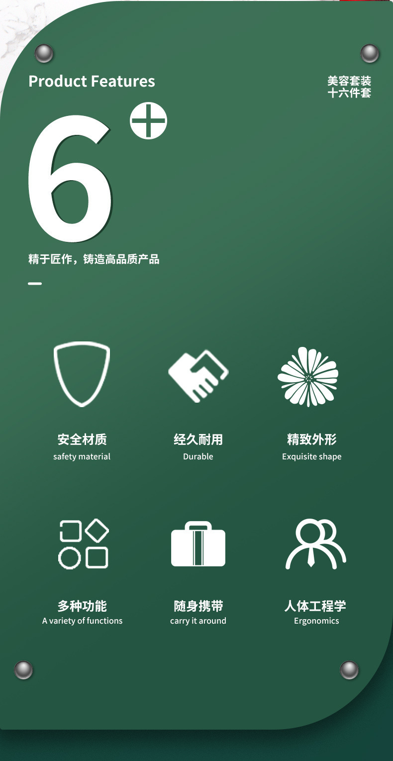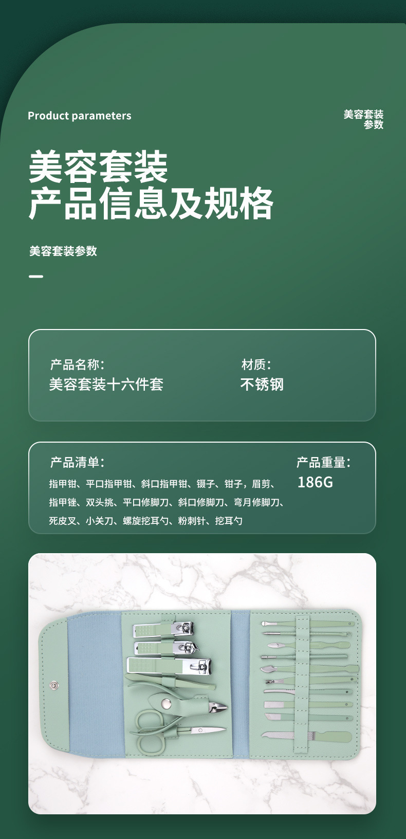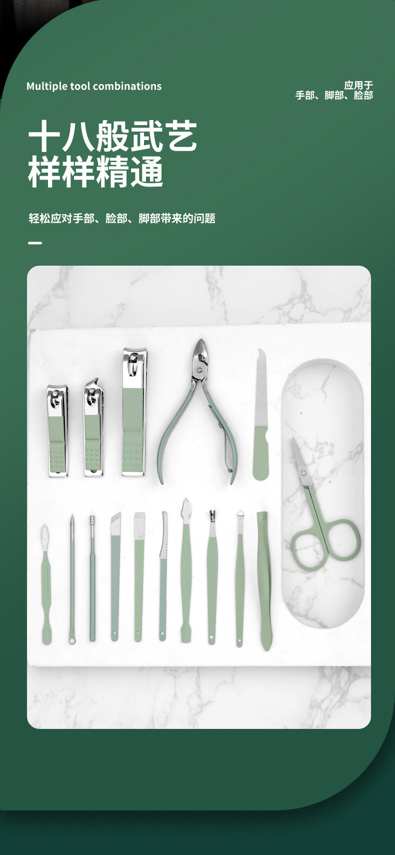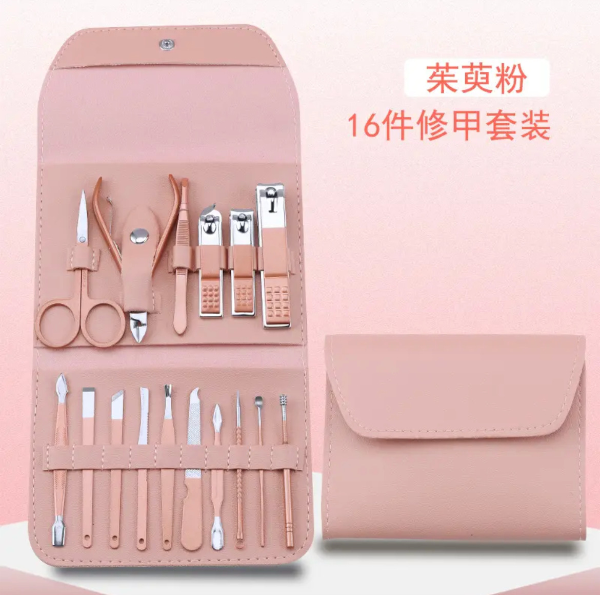 跨境不锈钢指甲刀套装16件套套装 家用修脚工具修甲剪刀斜口剪刀