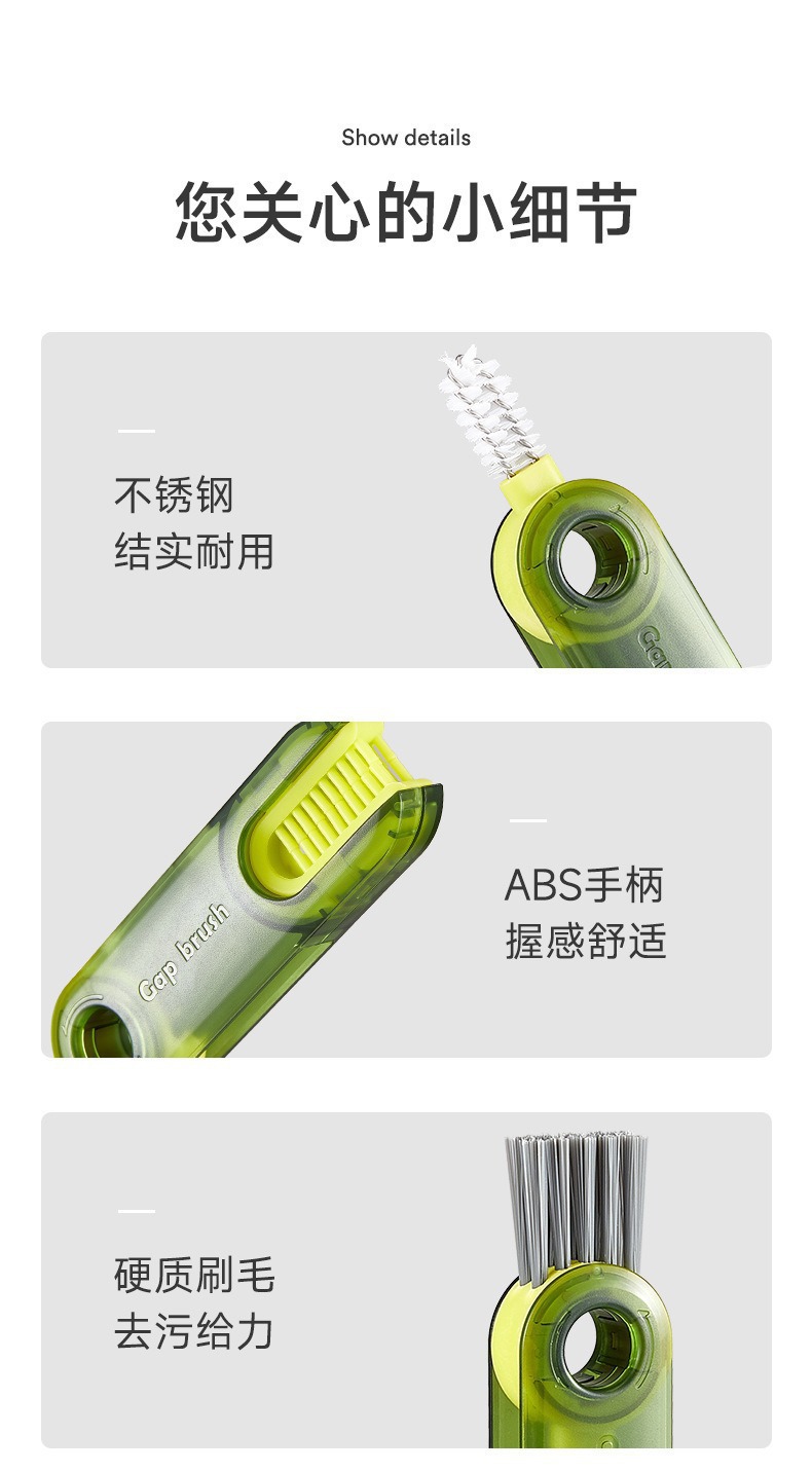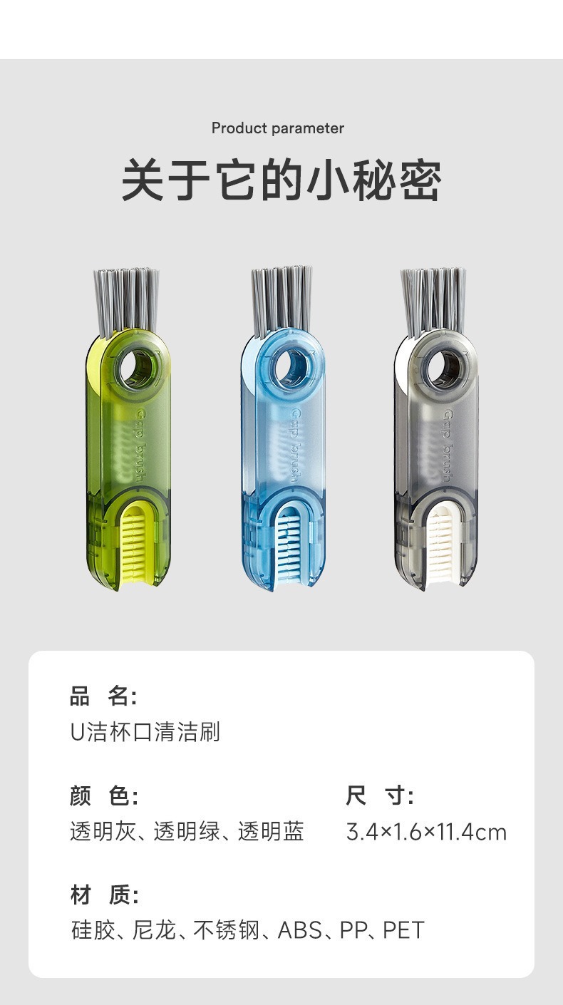 三合一U形杯刷水杯清洗便捷神器保温杯奶瓶茶杯缝隙U型杯口清洁刷