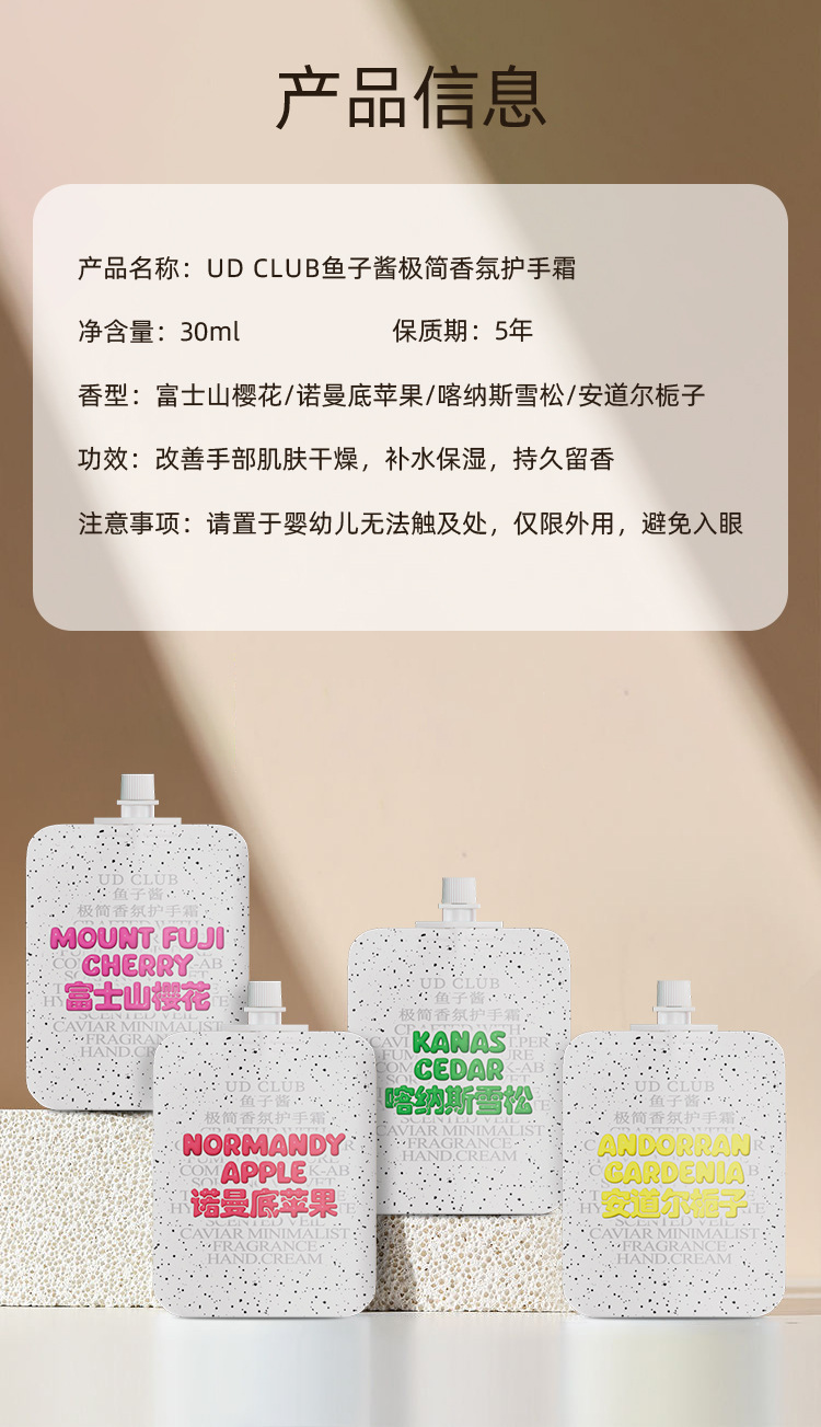 UD CLUB鱼子酱极简香氛香水护手霜小礼品苹果雪松补水滋润保湿女