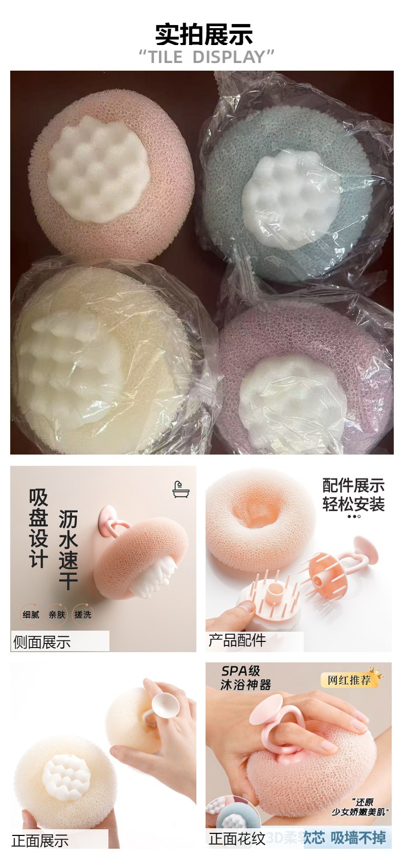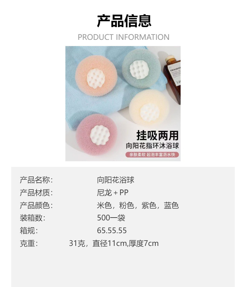 向阳花洗澡沐浴球搓澡两用浴花球海绵擦神器吸盘沐浴球高档不散