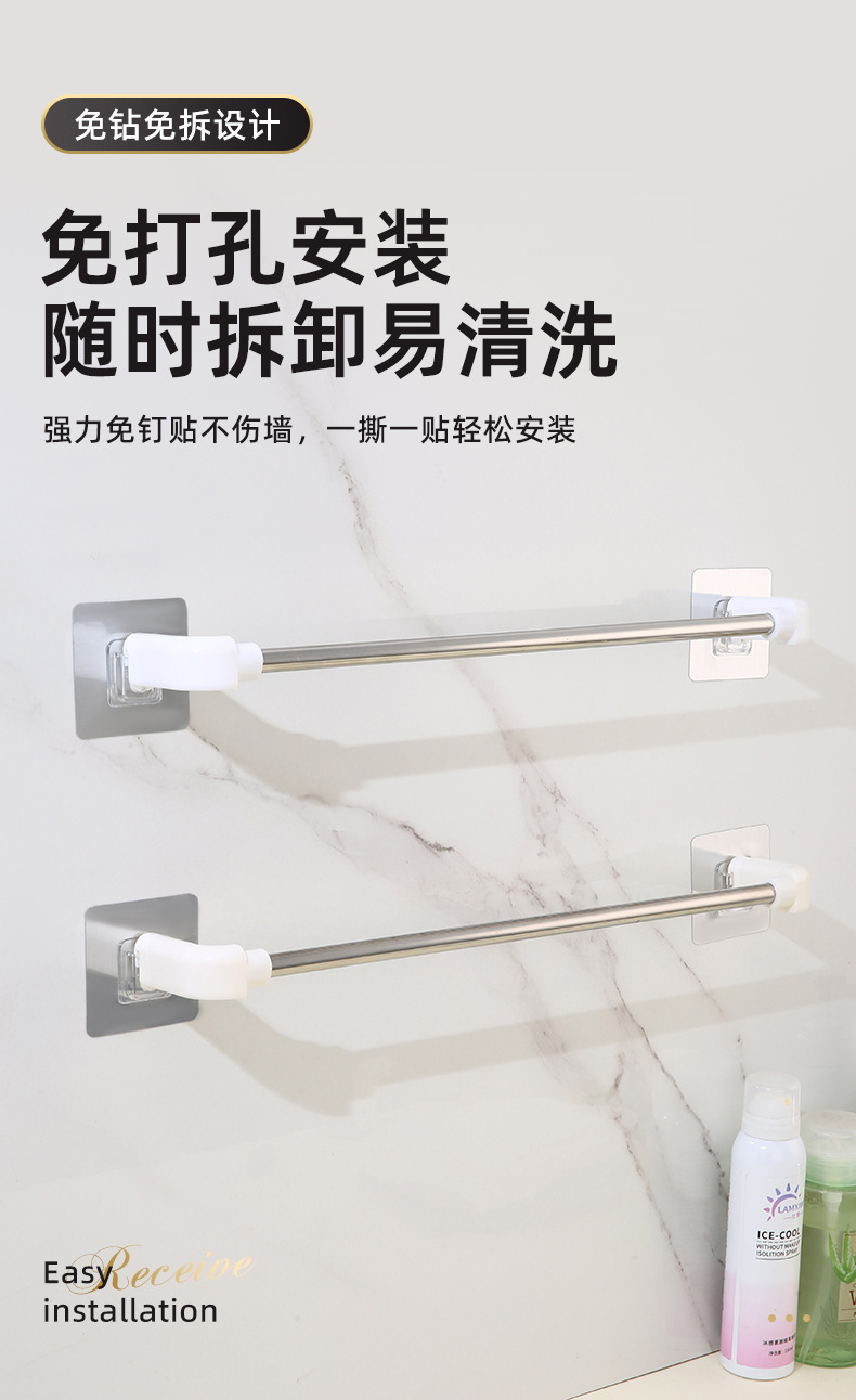 浴室卫生间免打孔简约毛巾架厕所不锈钢拖鞋收纳架免钉置物架收纳