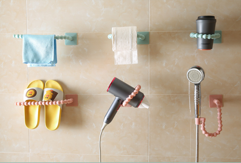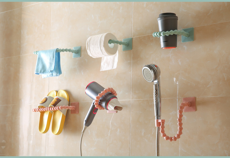 调节架浴室置物架花洒支架毛巾吹风机拖鞋纸巾壁挂式收纳免打孔
