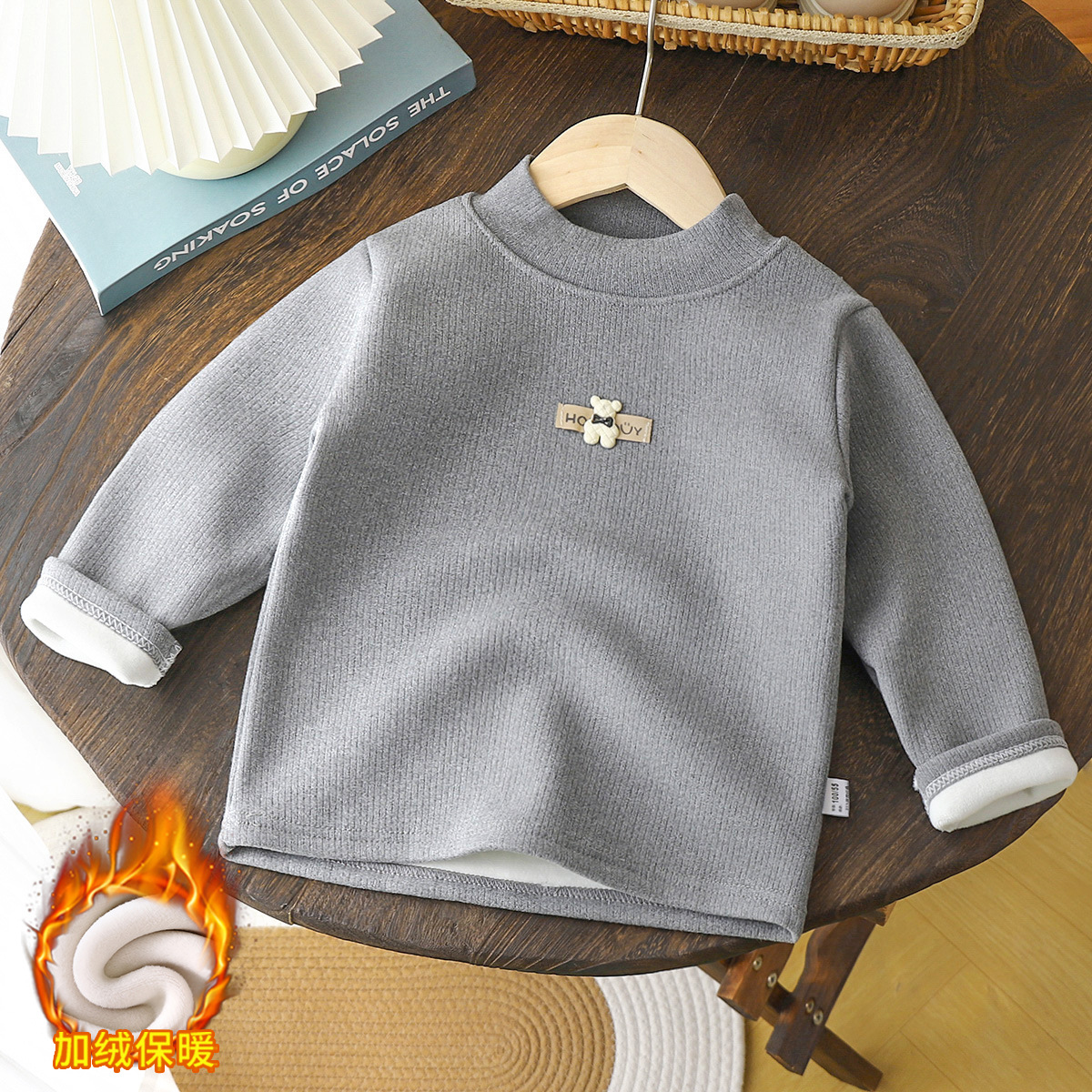 男童半高领保暖内搭女童打底衫冬季新款儿童宝宝加绒上衣童装批发
