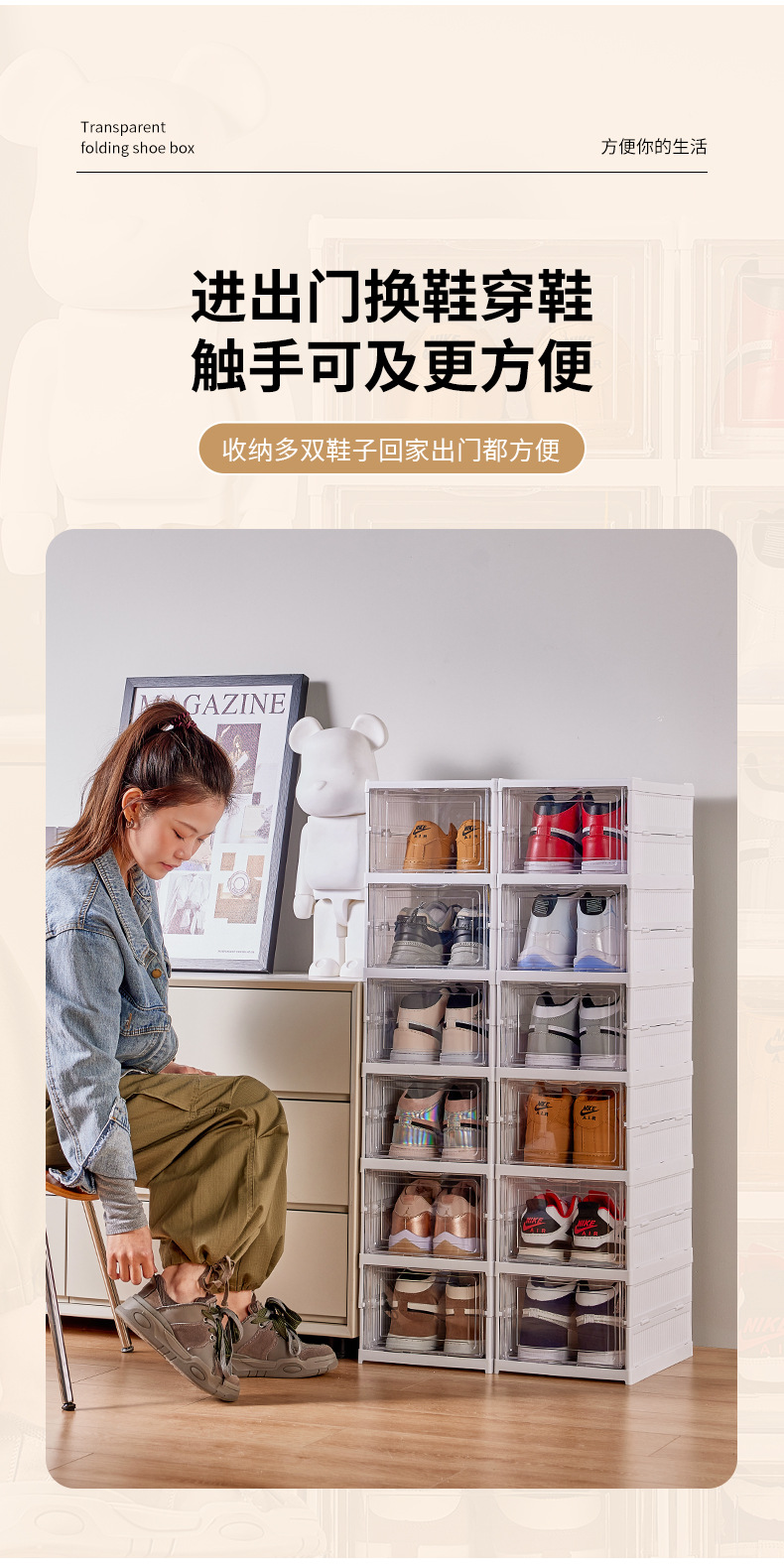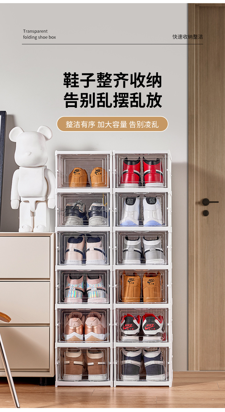 免安装鞋盒透明折叠鞋柜一拉成型鞋子收纳神器塑料加厚一体式鞋架