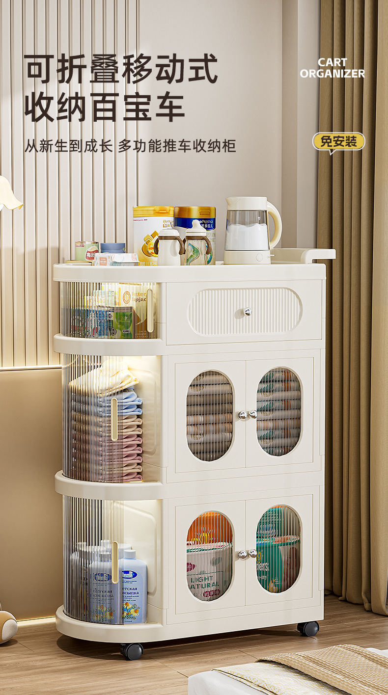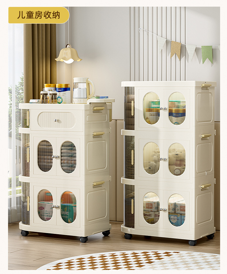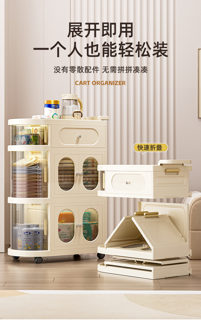 家用多层收纳柜储物柜可折叠手办展示柜可移动零食柜置物架整理架