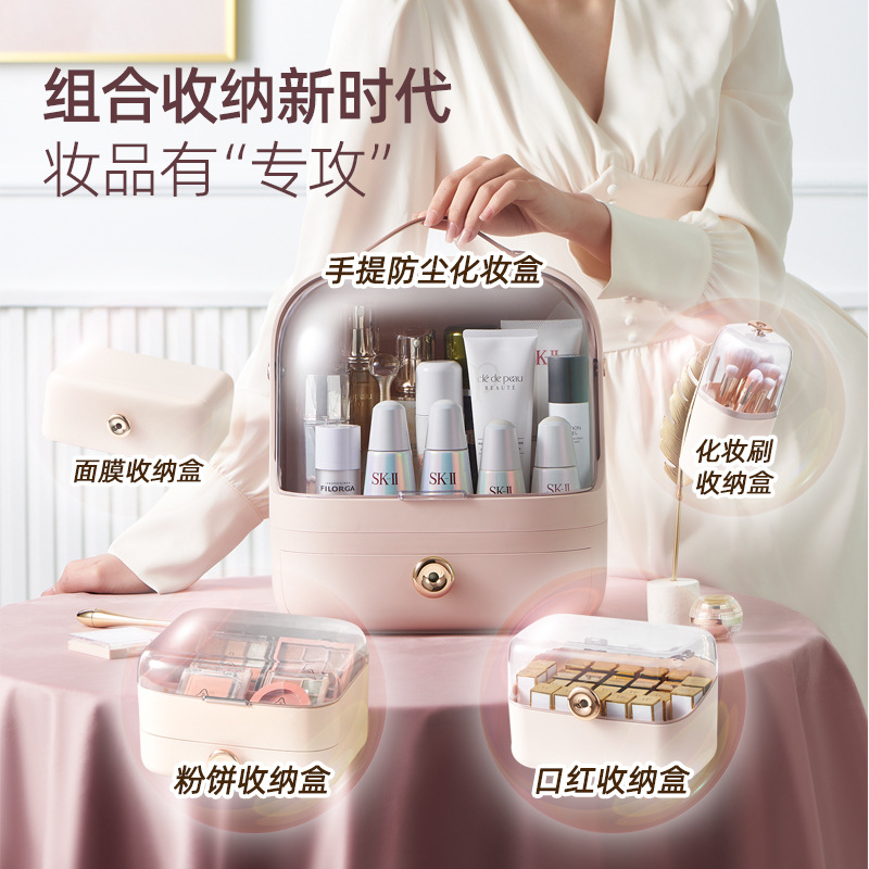 化妆品收纳盒套装新款桌面防尘护肤品口红置物架轻奢大容量化妆盒