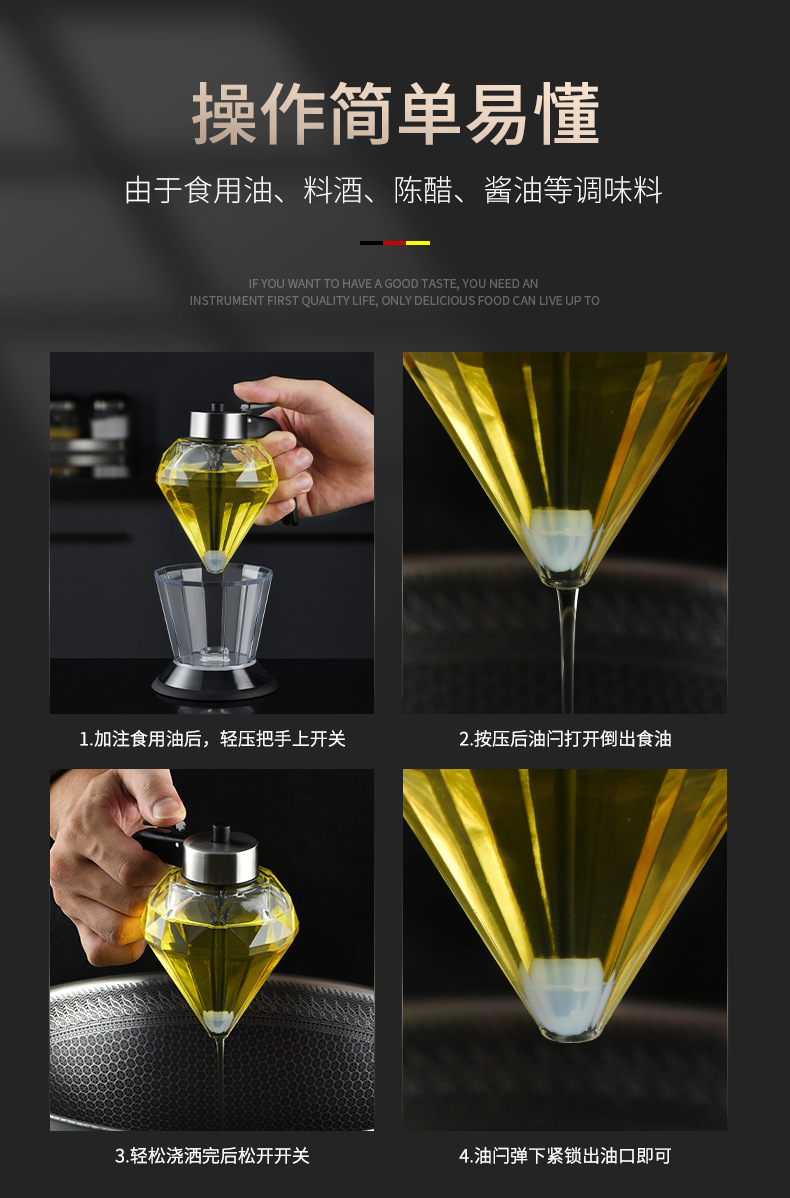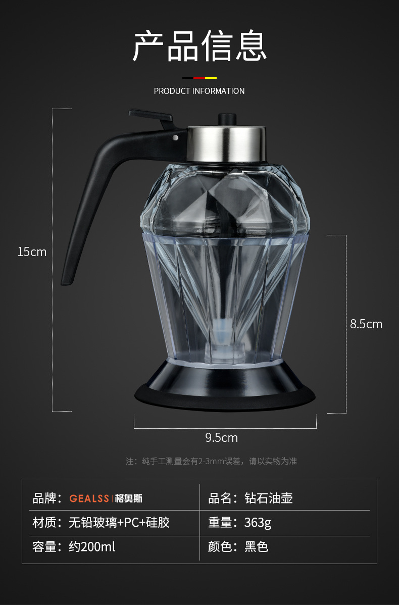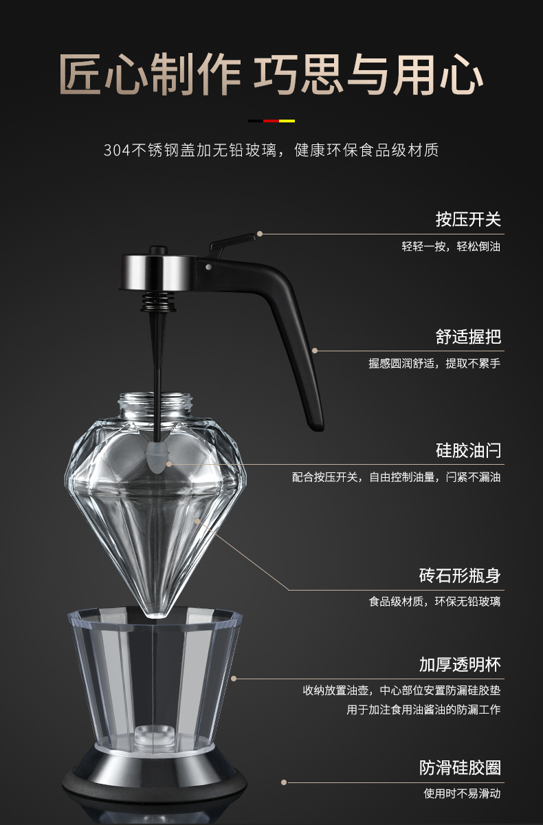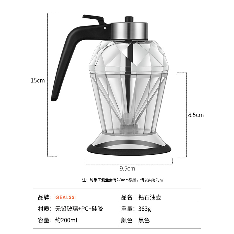 亚马逊热销蜂密罐钻石玻璃油壶滴油壶批发电商现货蜂蜜罐批发