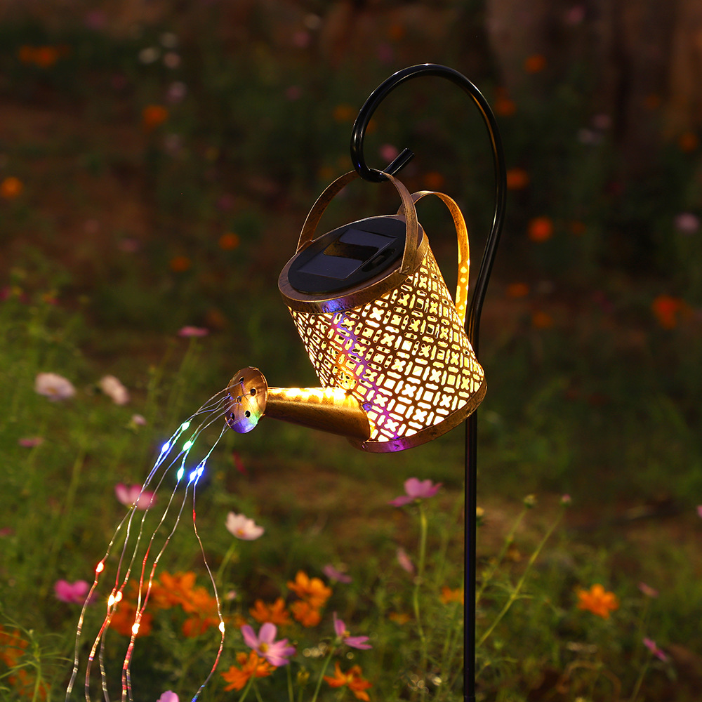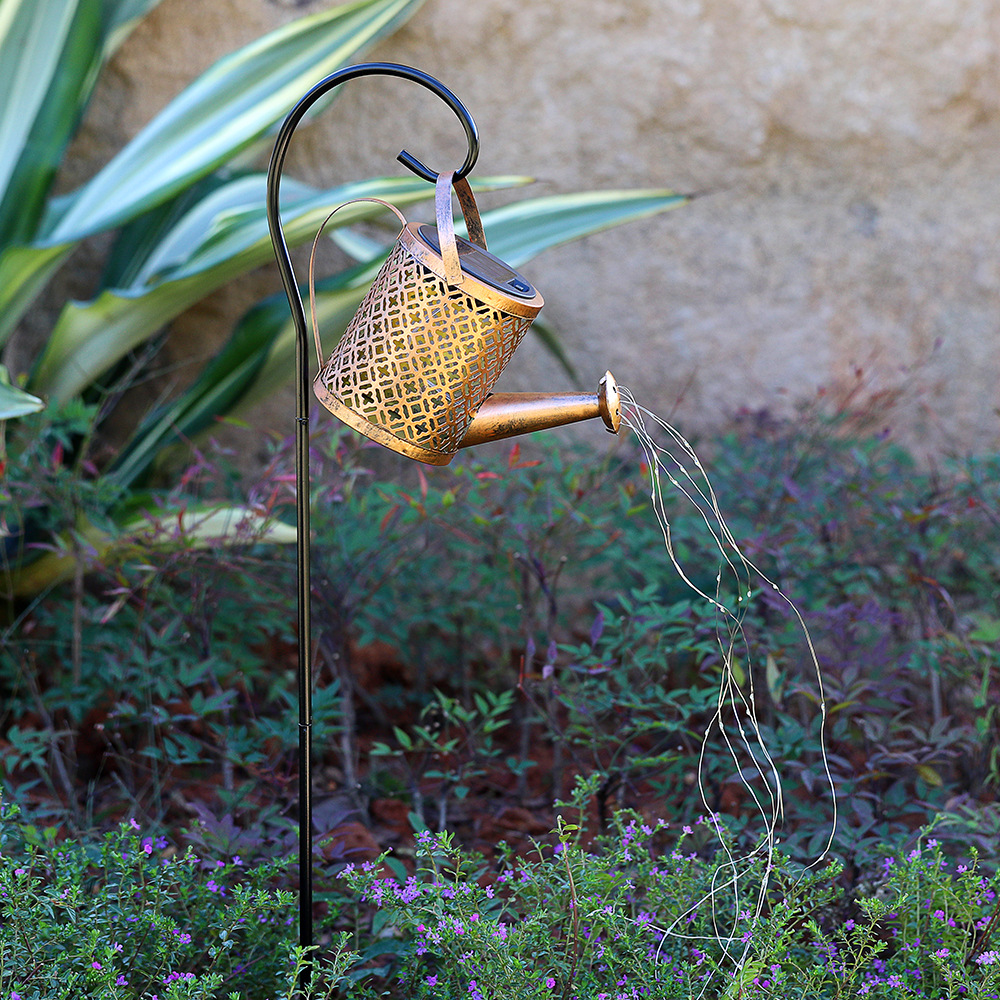 跨境新款太阳能水壶灯铁艺流水花洒灯户外庭院花园装饰景观灯