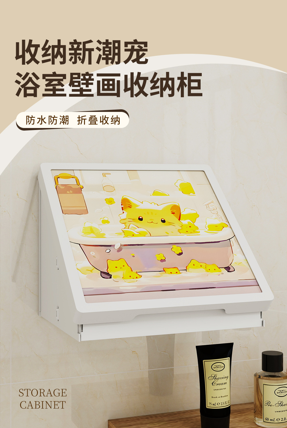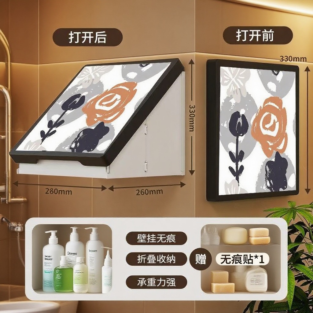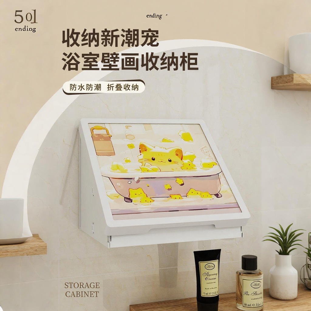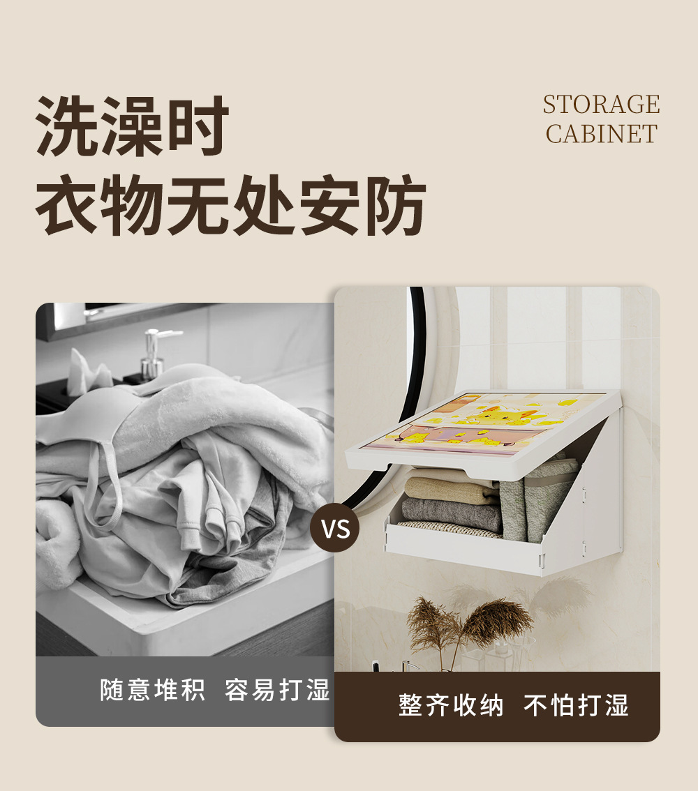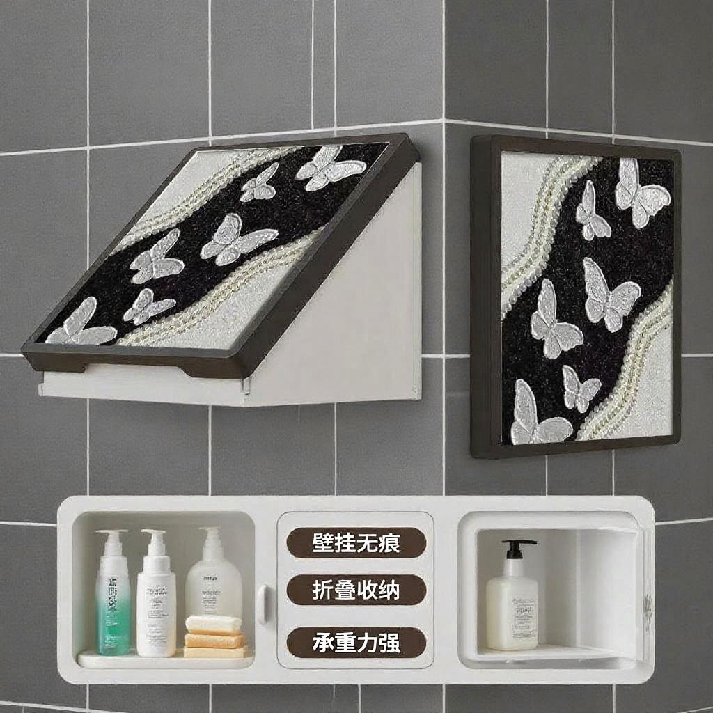 浴室壁画纳箱折叠防水置物架卫生间挂画挂墙洗澡放衣服神器