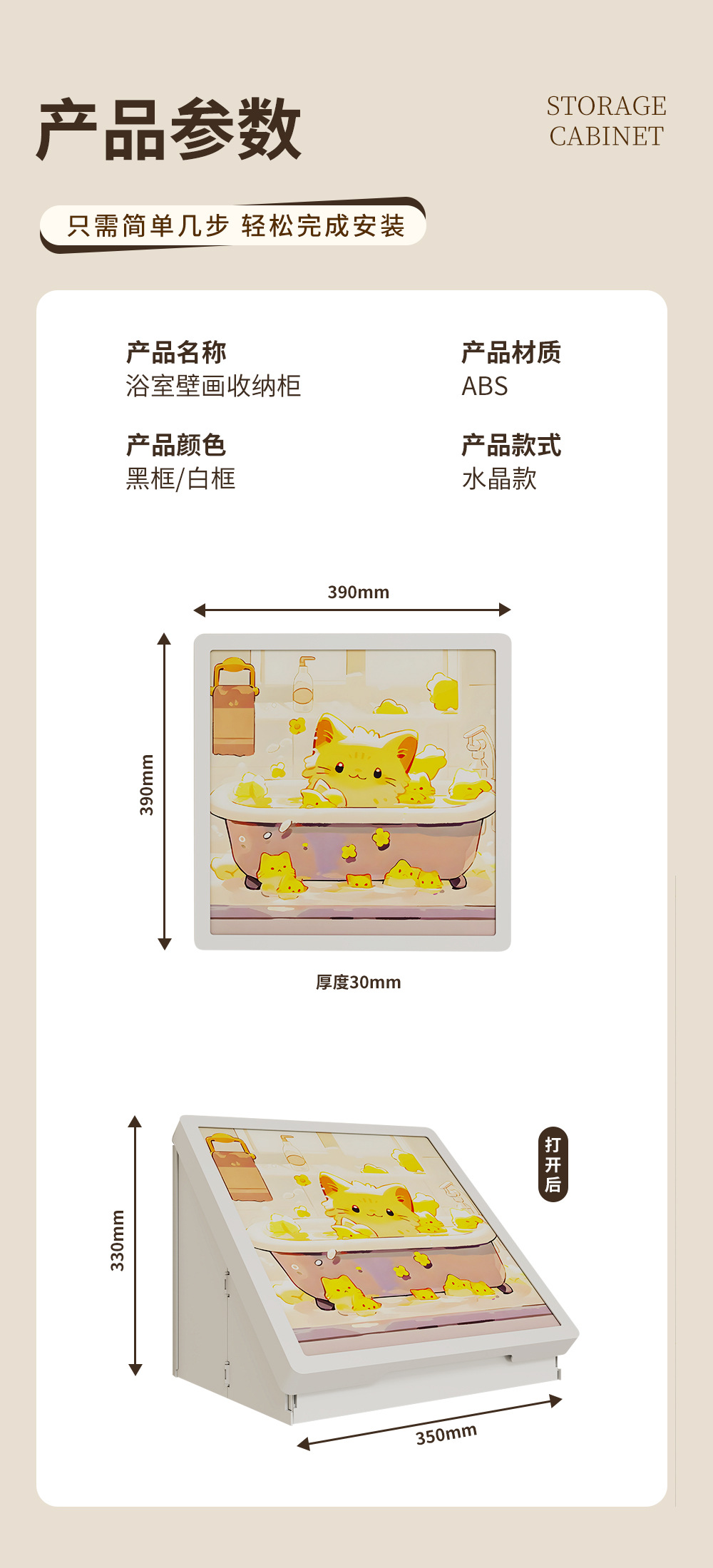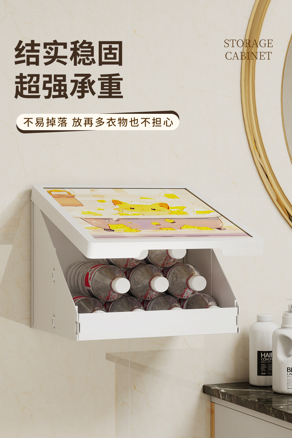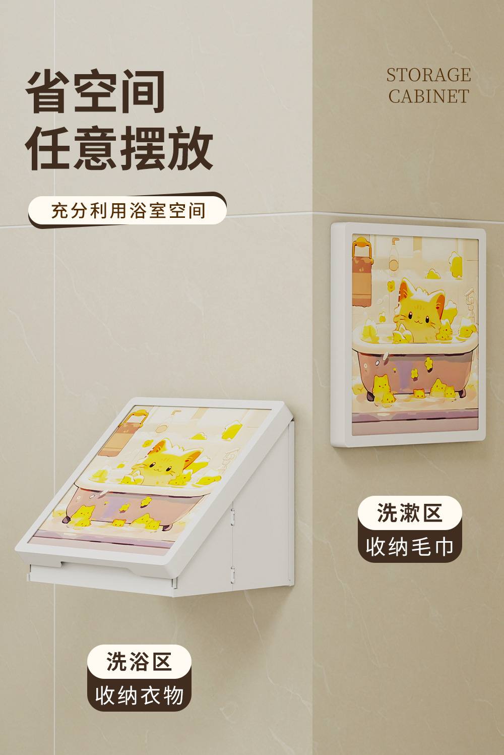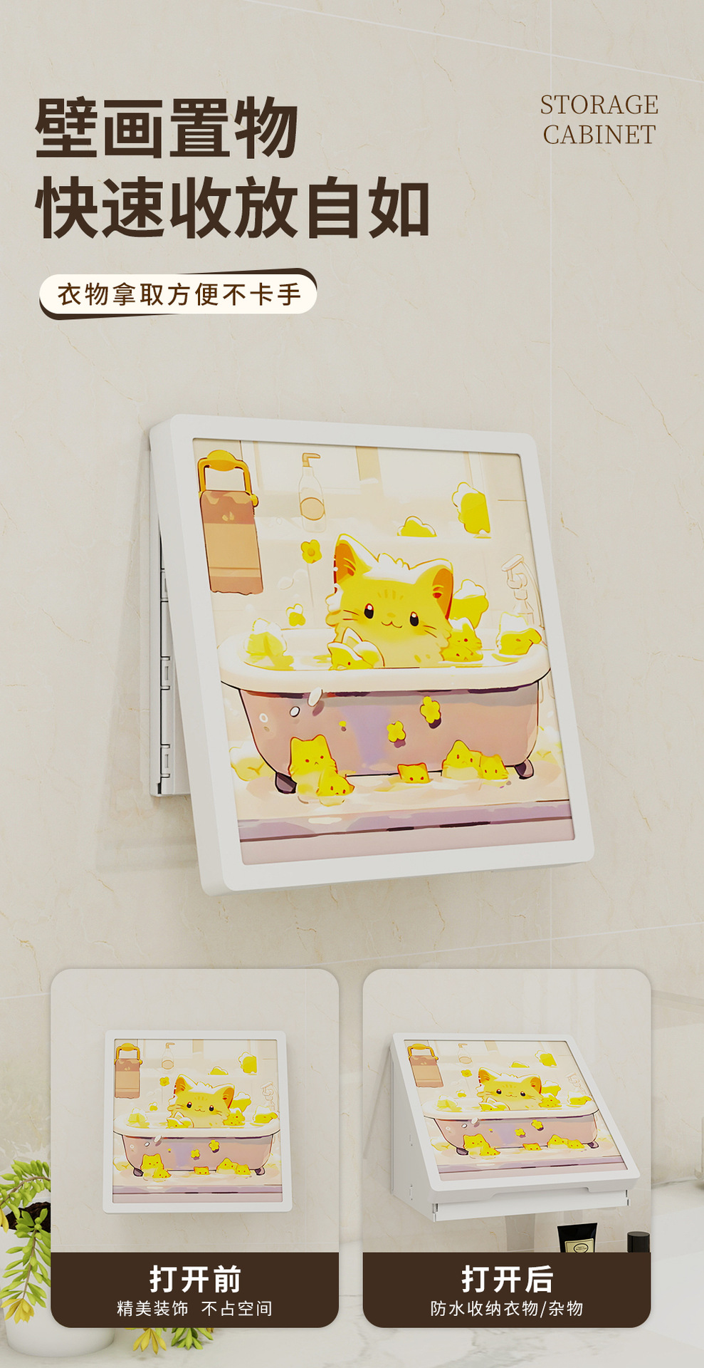浴室壁画纳箱折叠防水置物架卫生间挂画挂墙洗澡放衣服神器