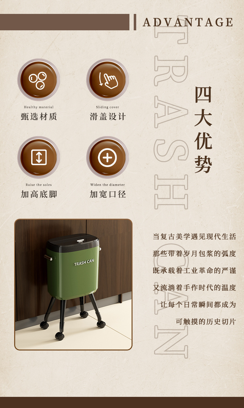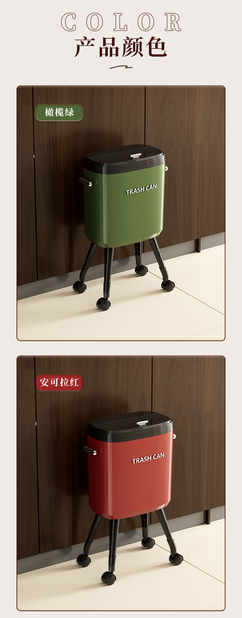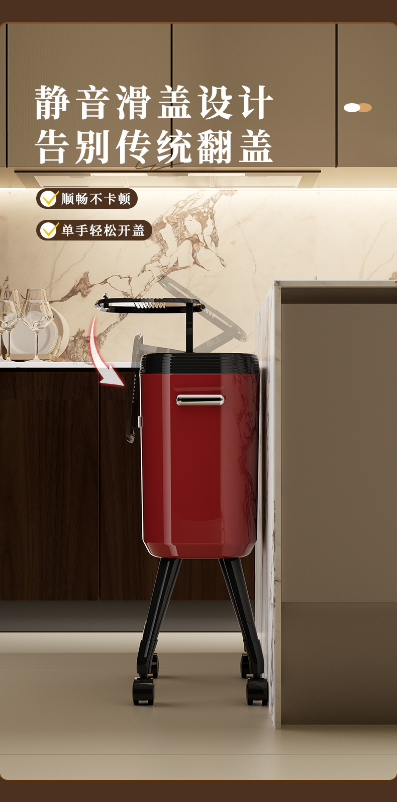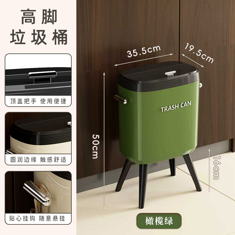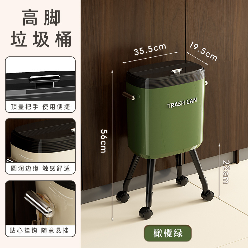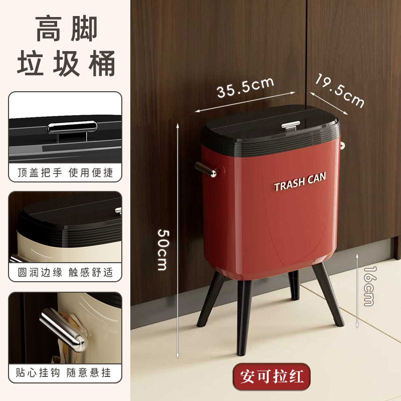 免弯腰高脚垃圾桶厨房家用高级感客厅轻奢大容量可移动带盖垃圾筒