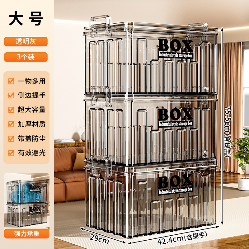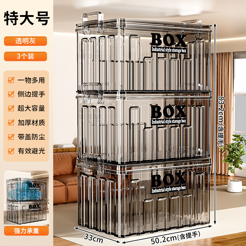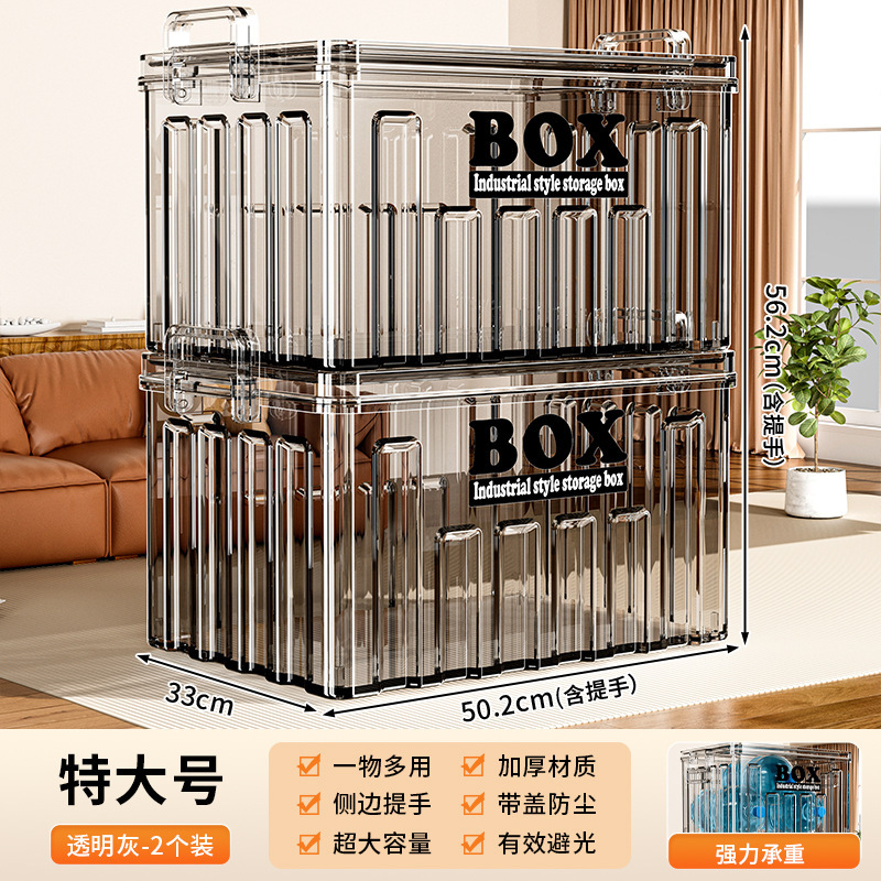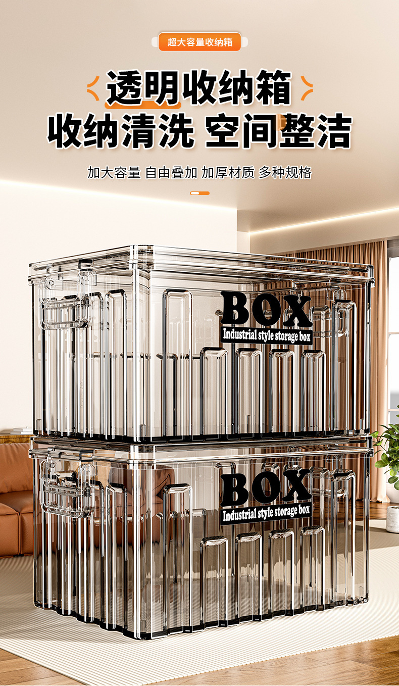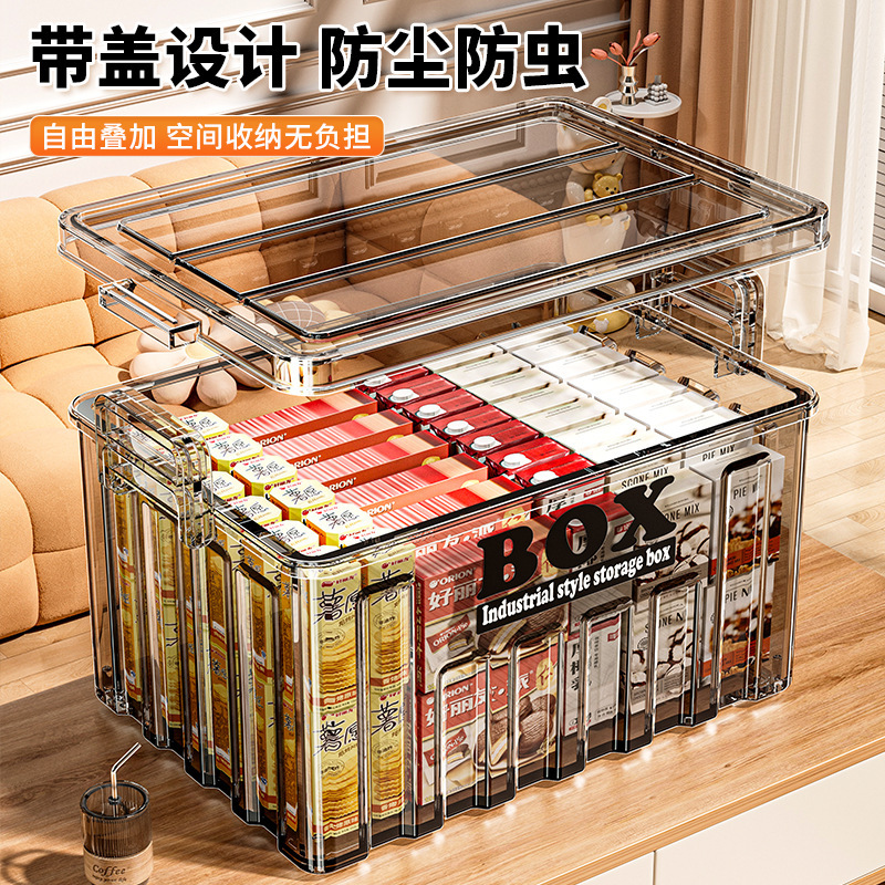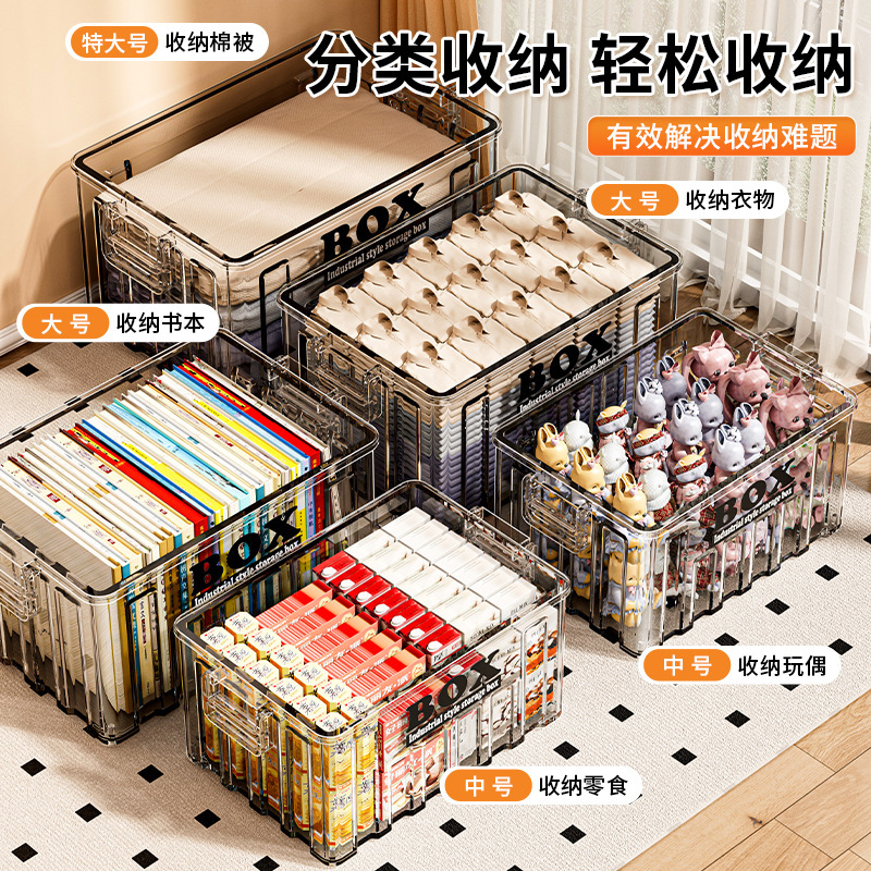收纳箱家用透明可视大容量储物箱可叠加多规格带盖玩具零食整理箱