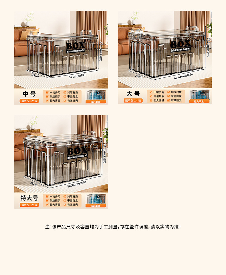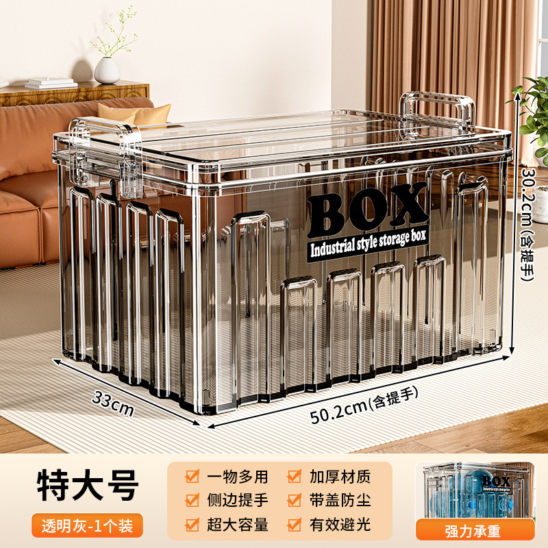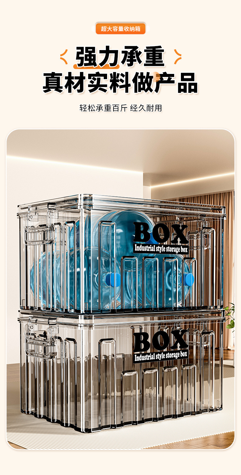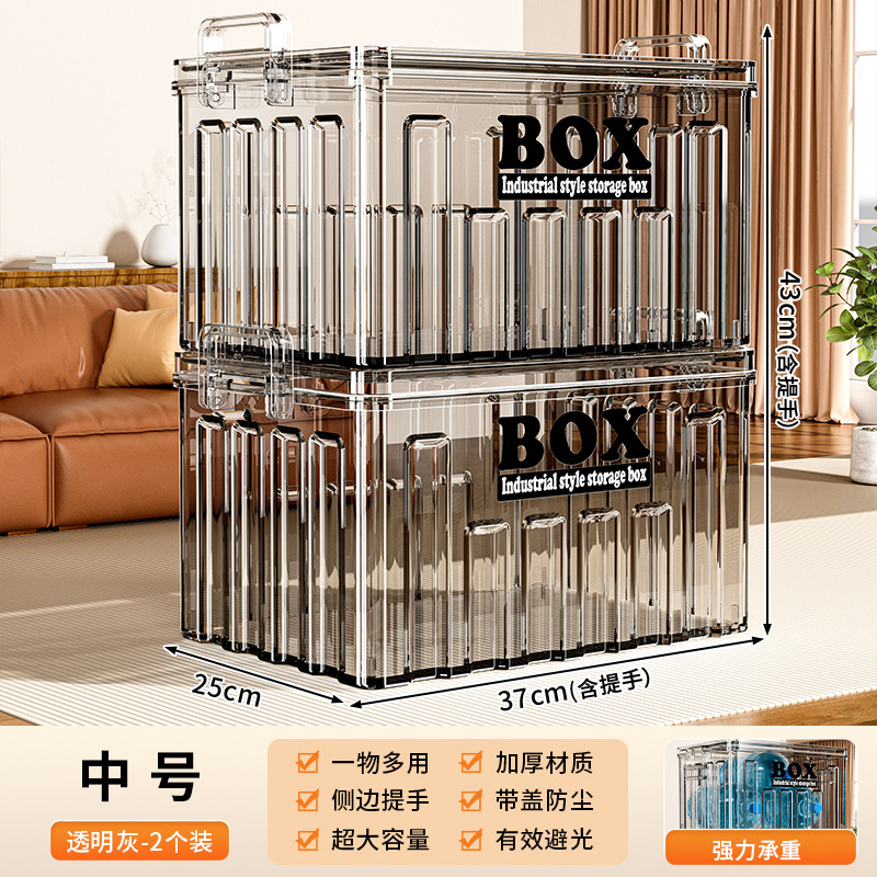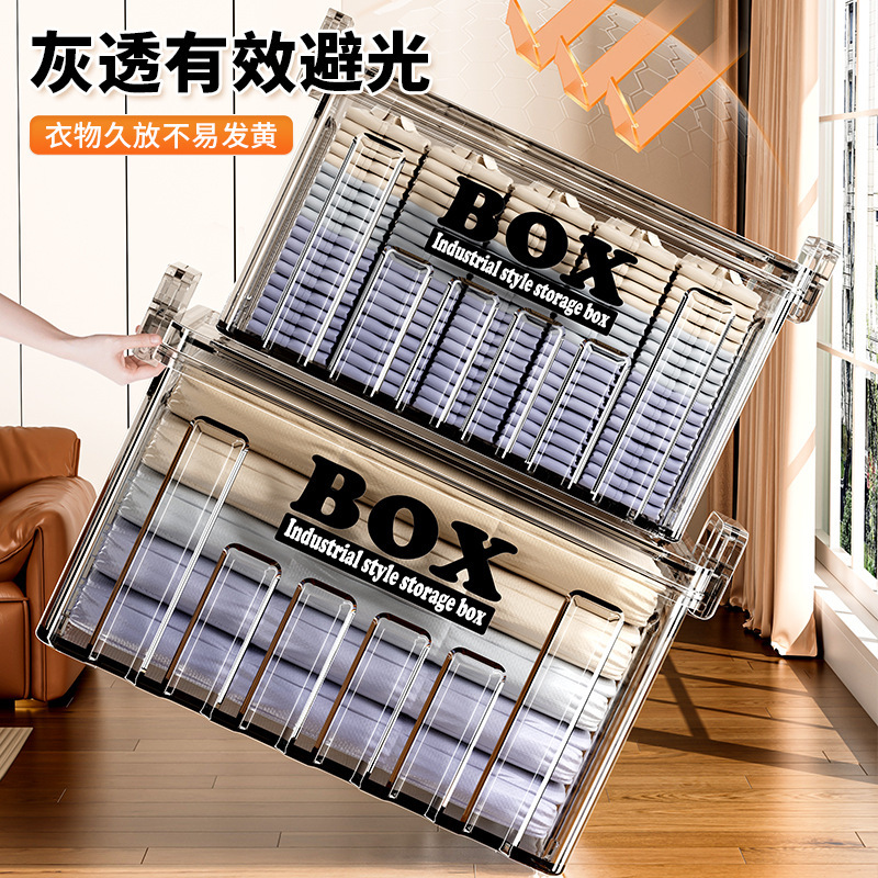 收纳箱家用透明可视大容量储物箱可叠加多规格带盖玩具零食整理箱