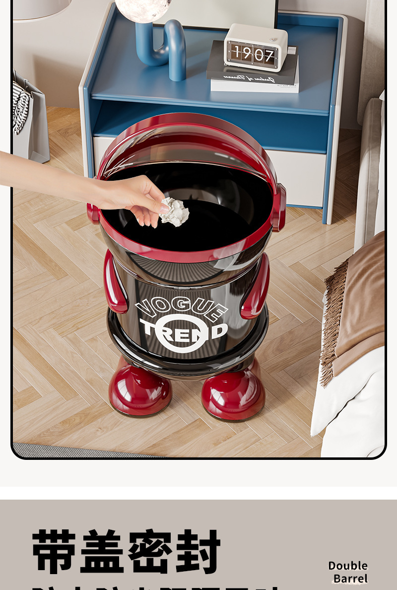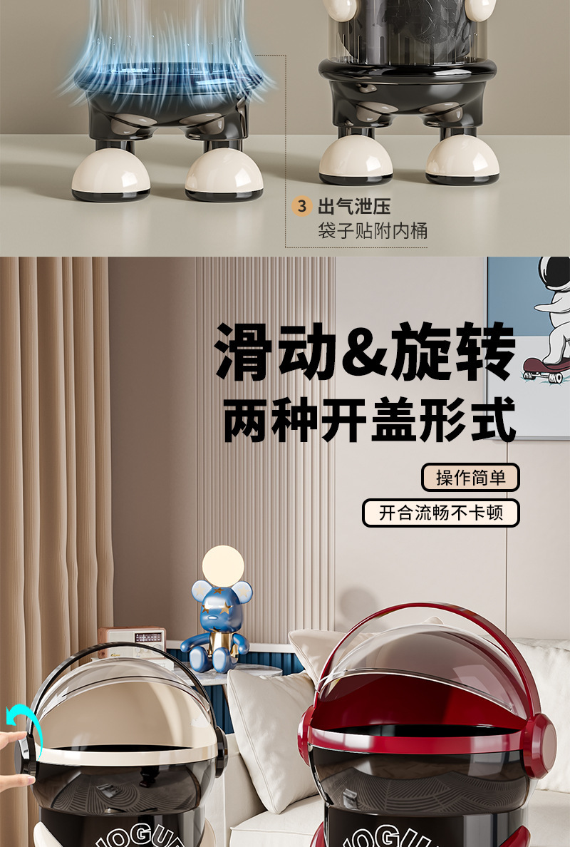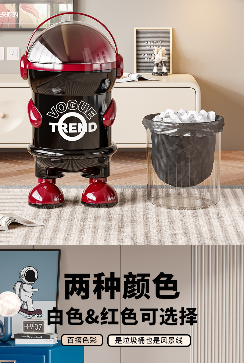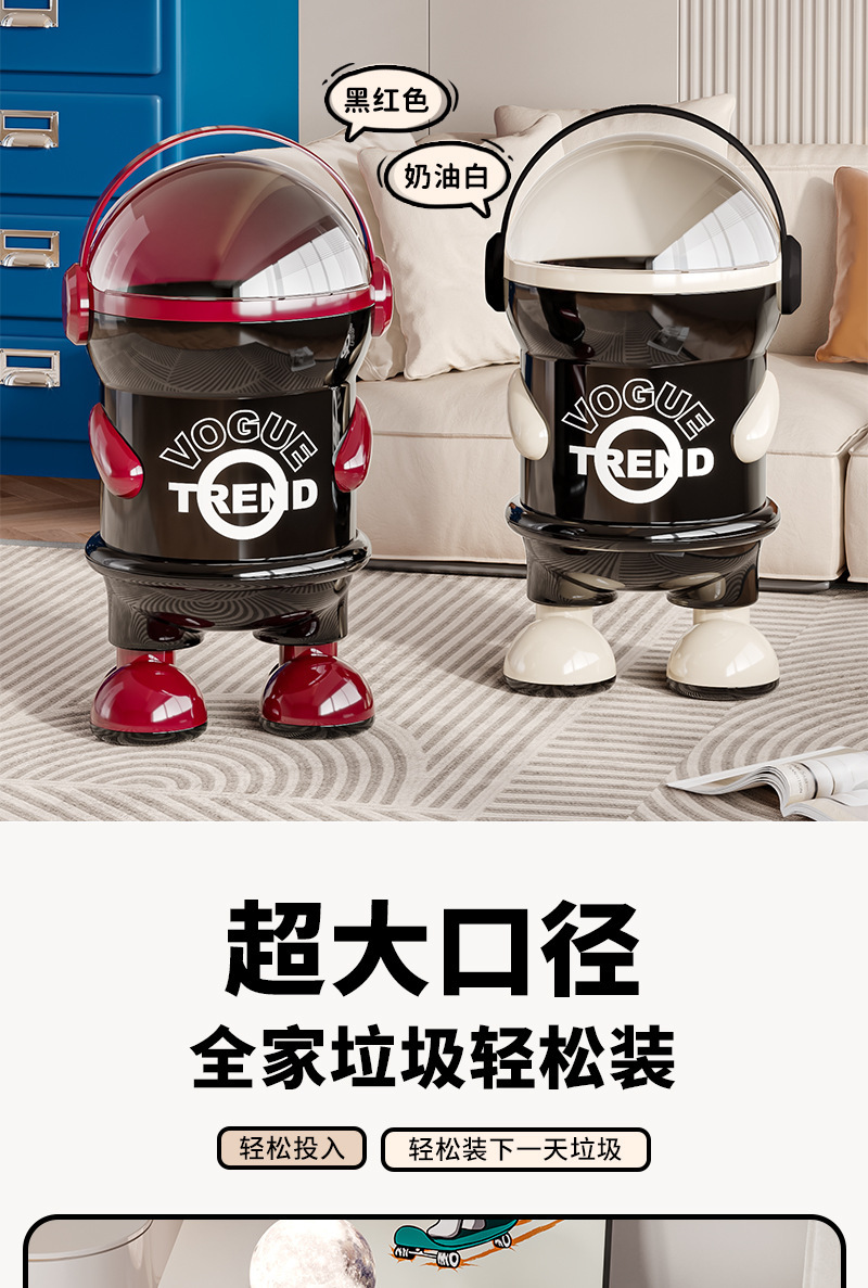 太空人垃圾桶家用客厅轻奢高档2025高颜值创意卧室大容量带盖纸篓