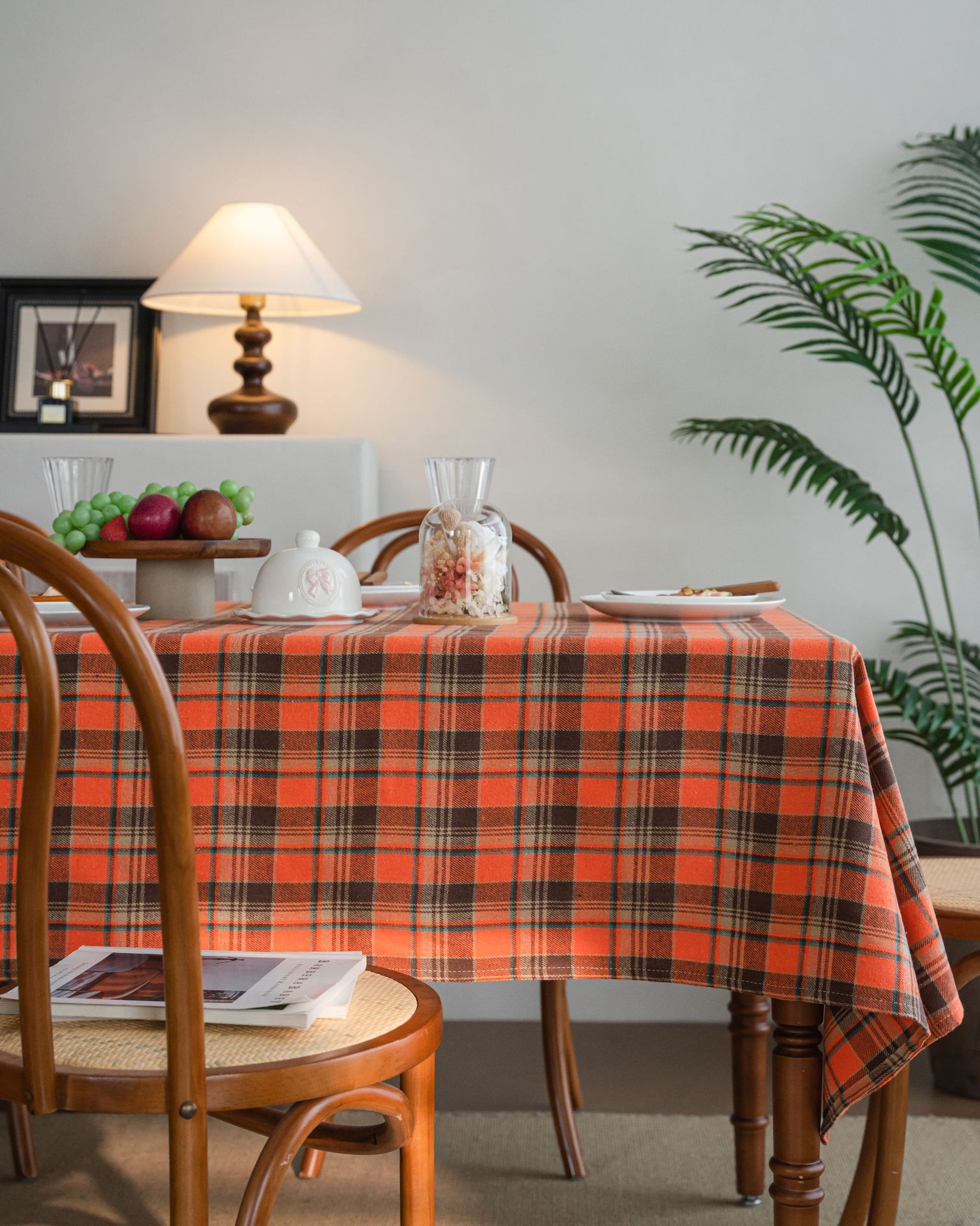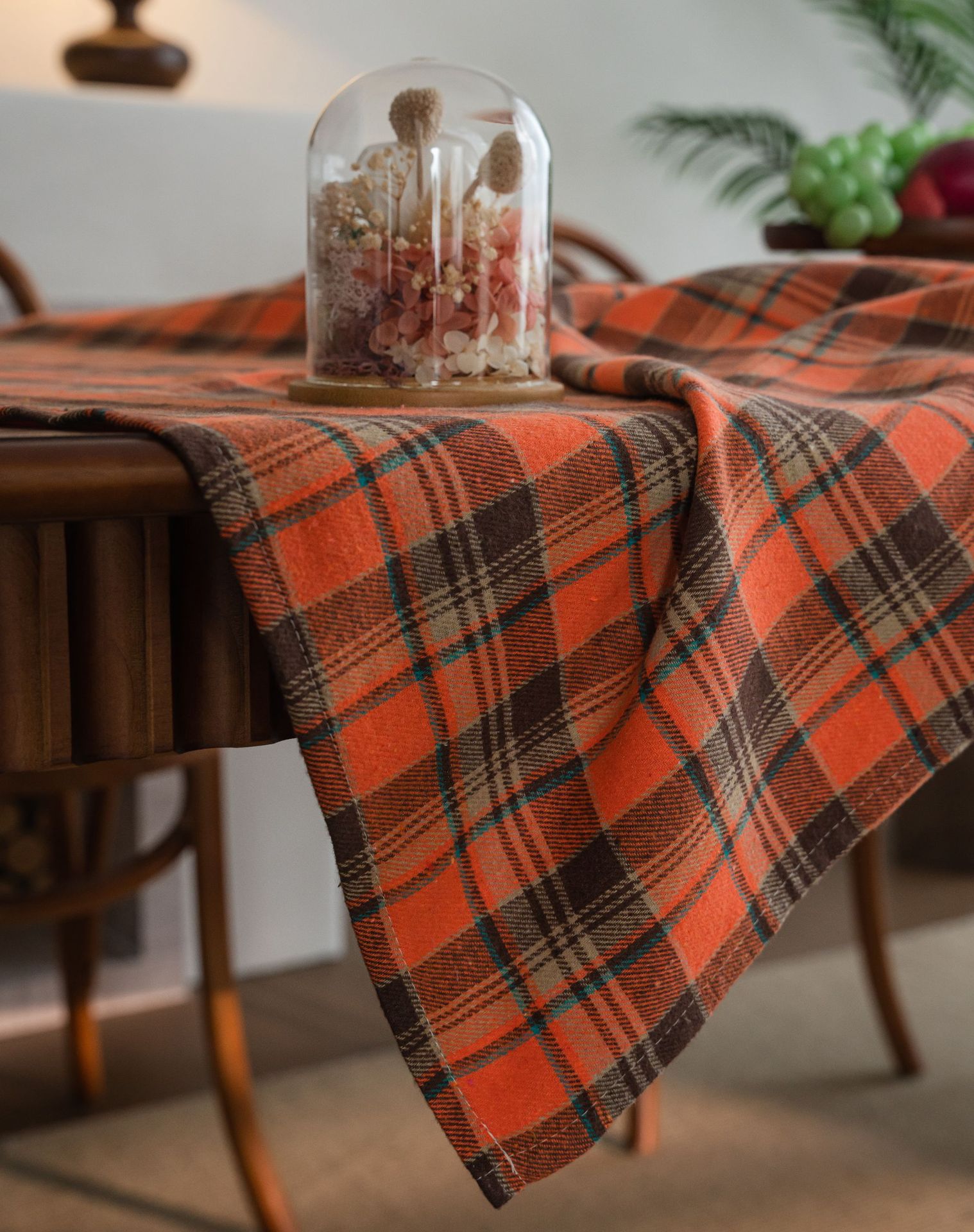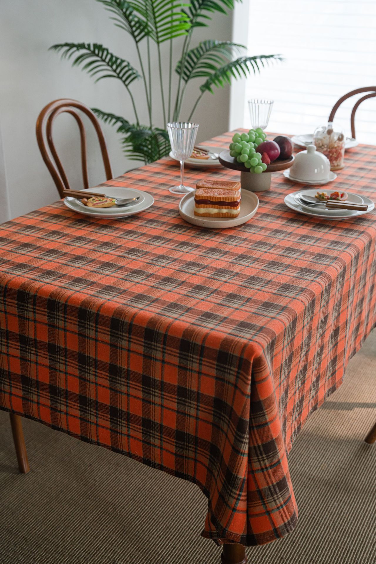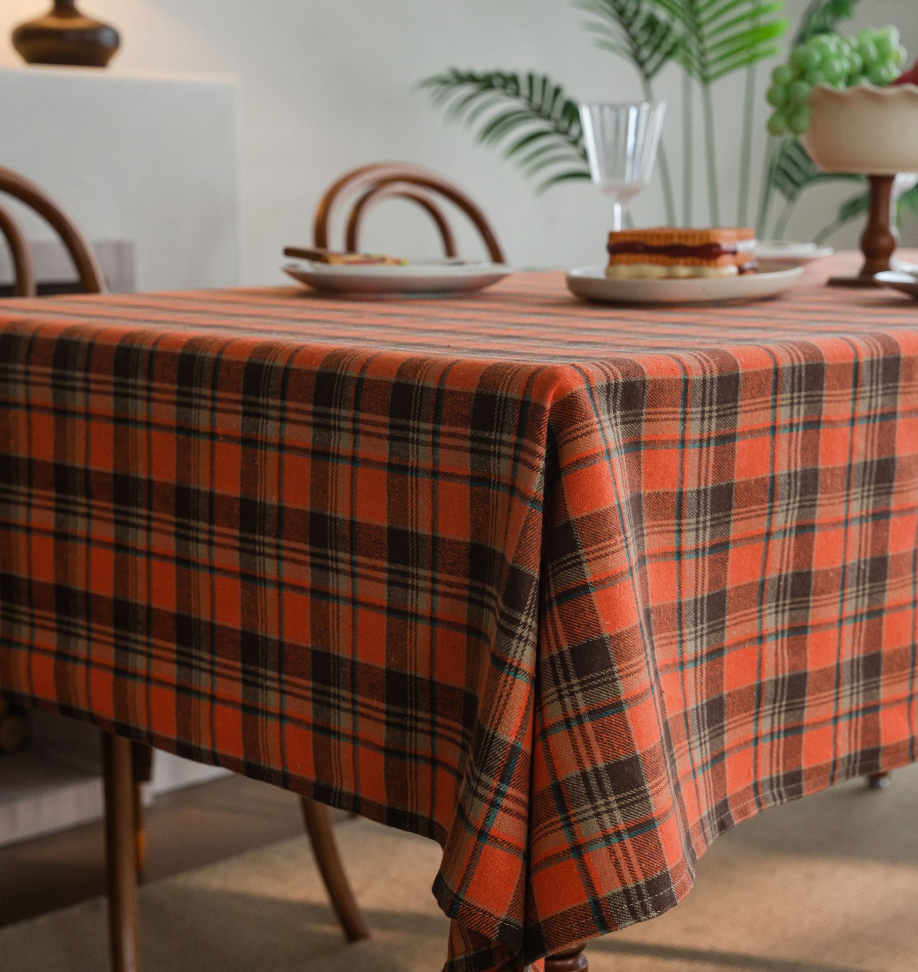 伊缦琪韵桌布色织绿色格子圣诞节日餐桌布美式布艺长方形厂家直供