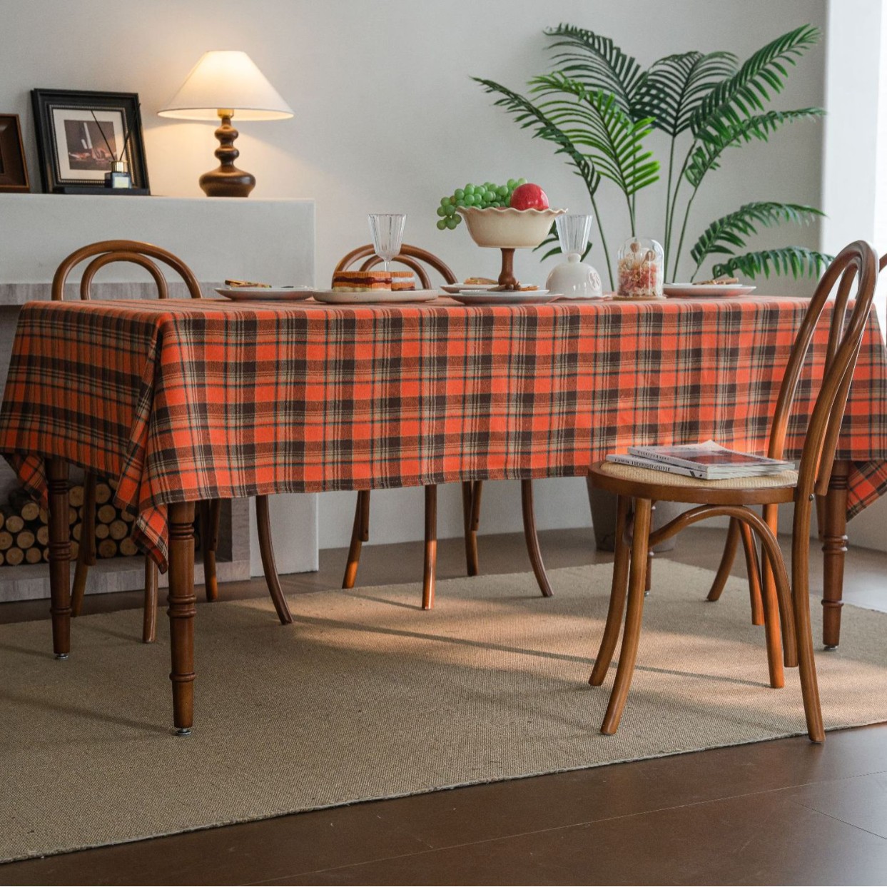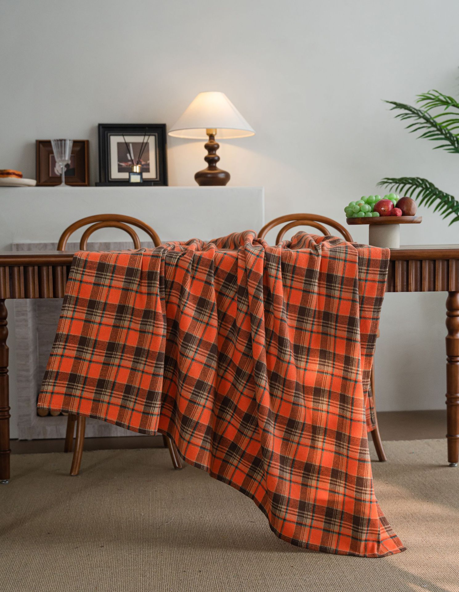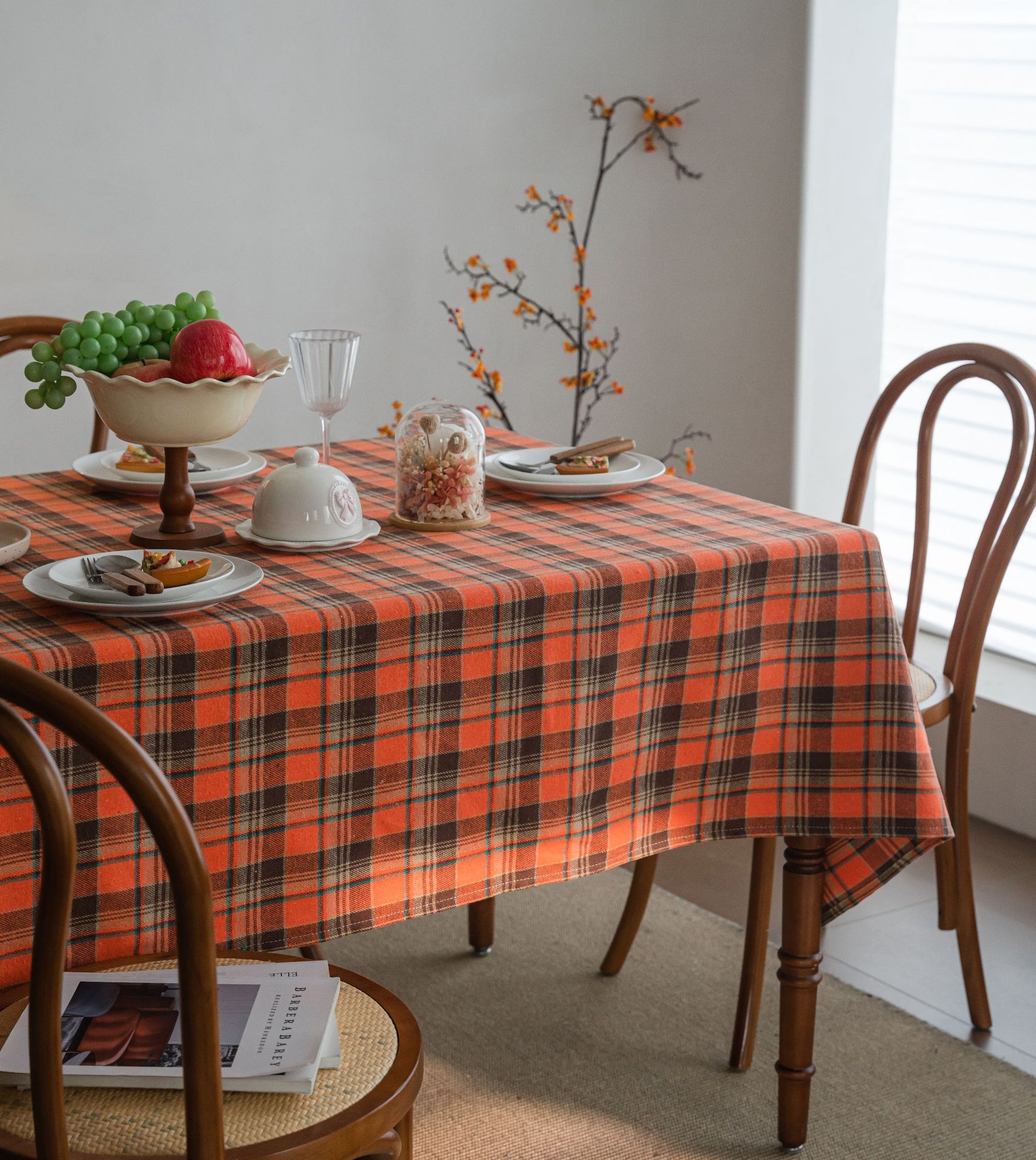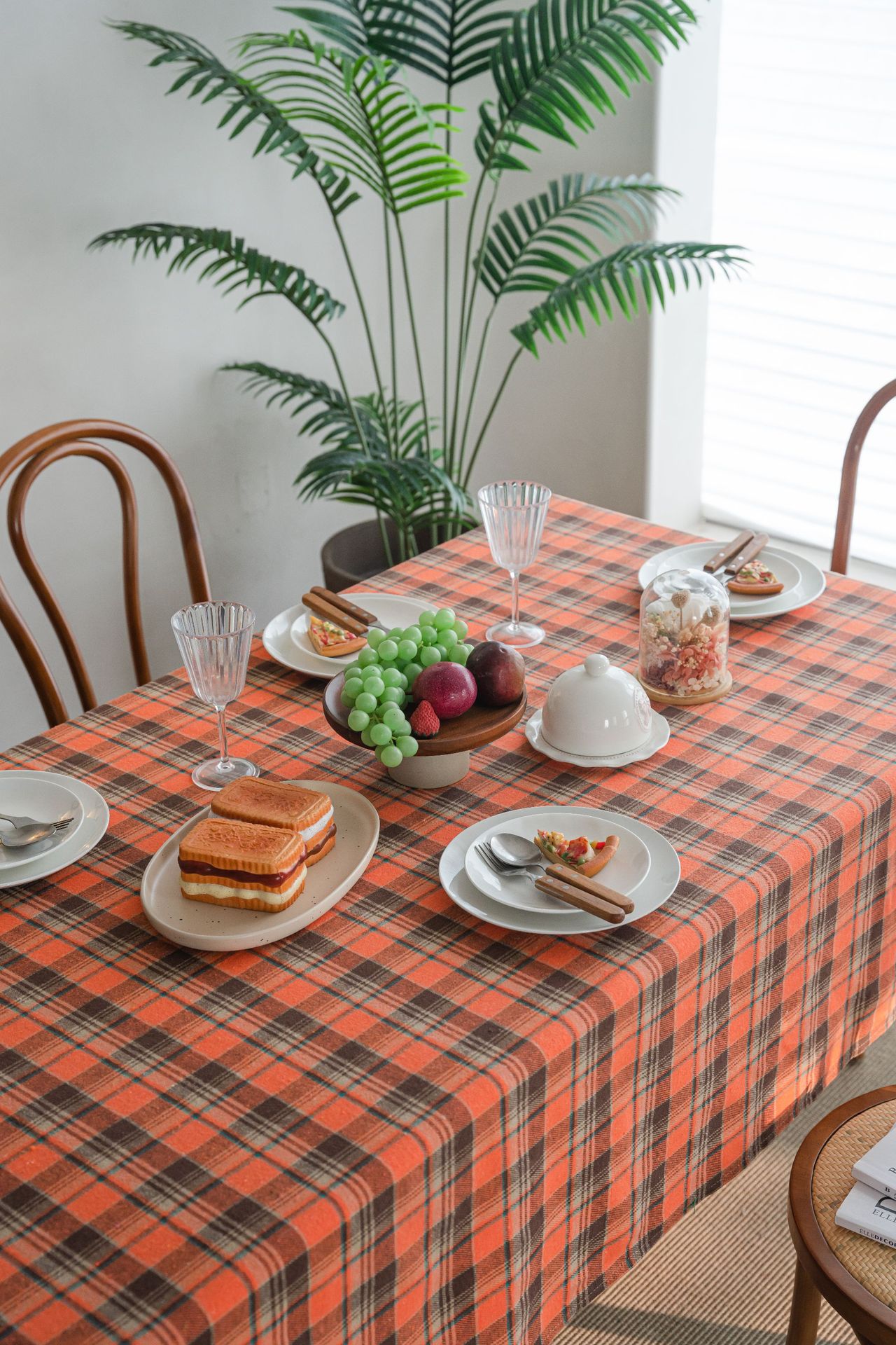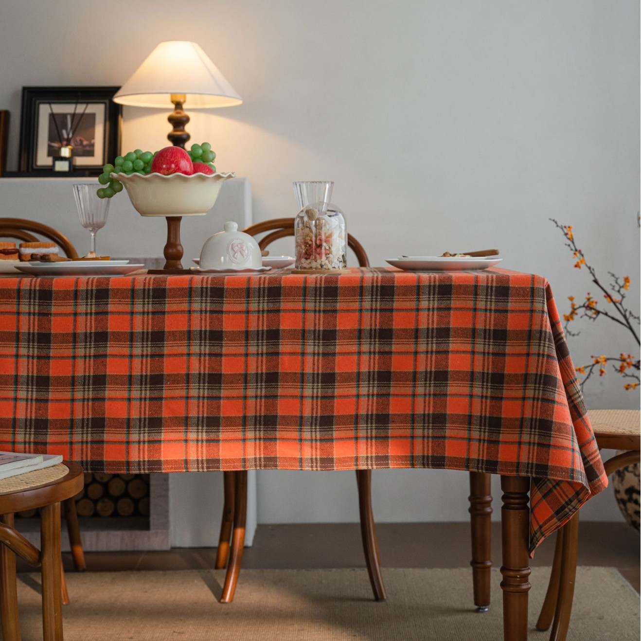伊缦琪韵桌布色织绿色格子圣诞节日餐桌布美式布艺长方形厂家直供