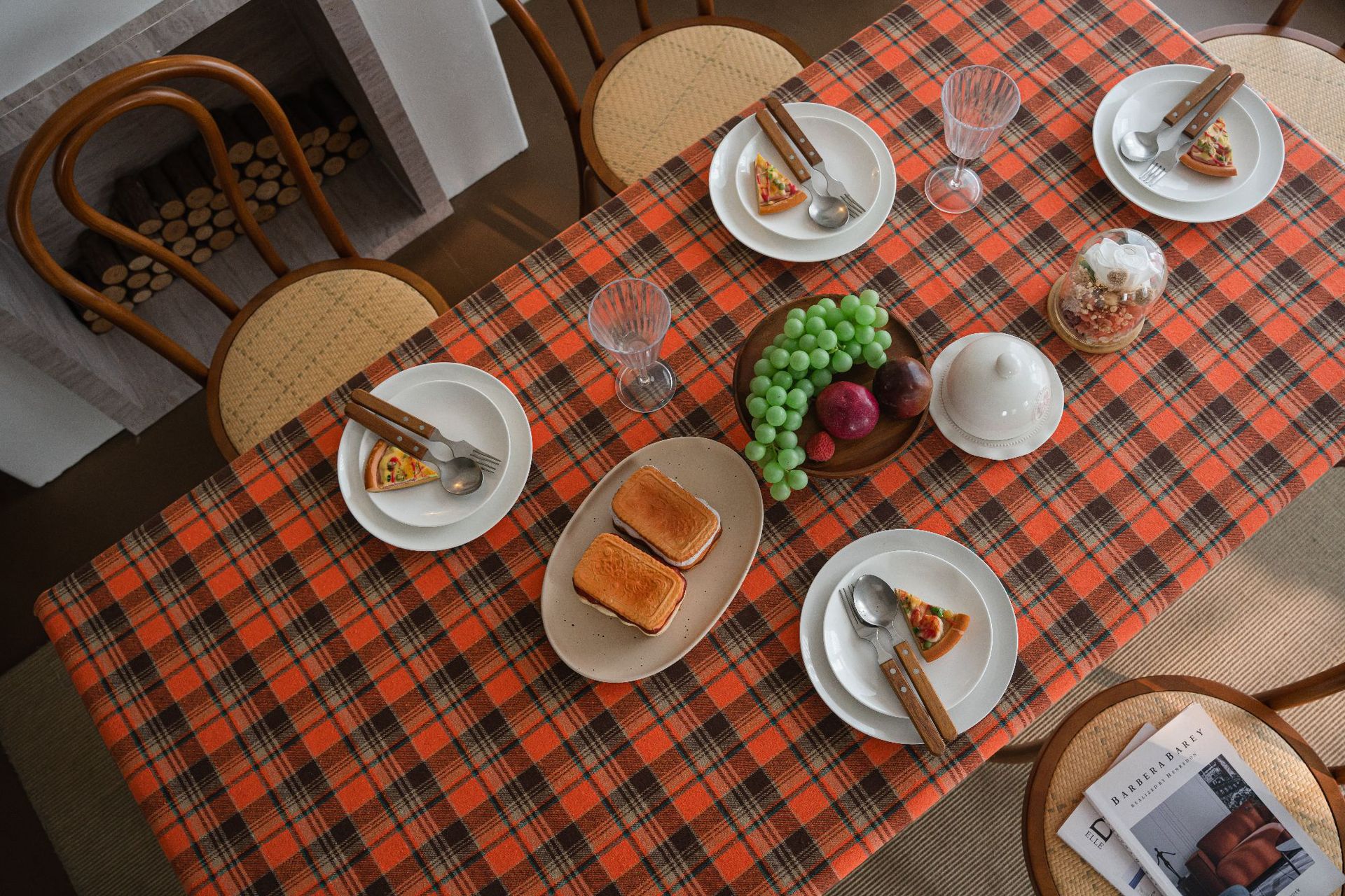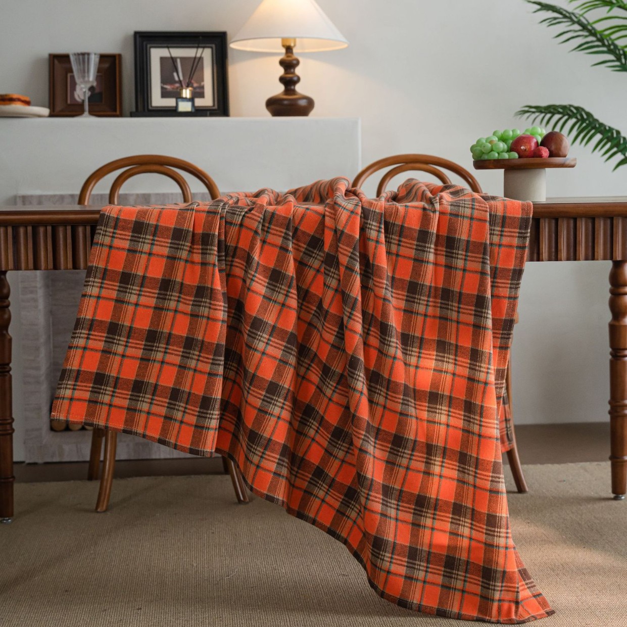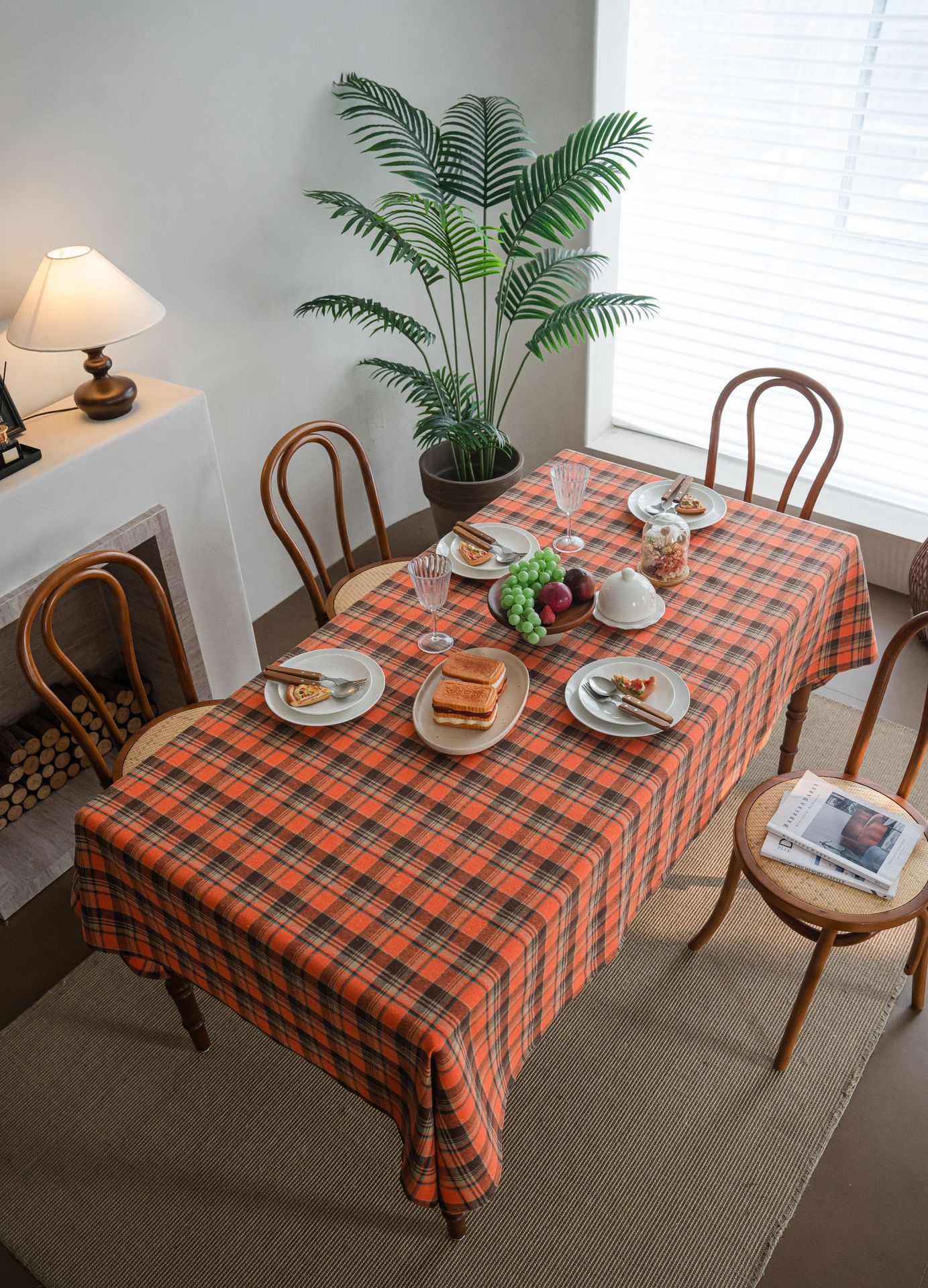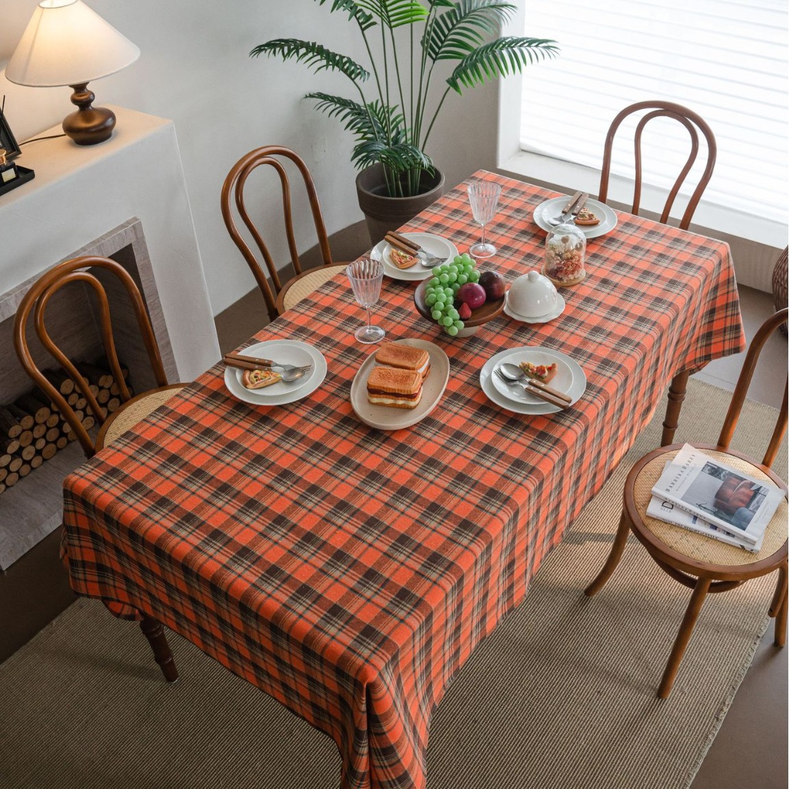 伊缦琪韵桌布色织绿色格子圣诞节日餐桌布美式布艺长方形厂家直供