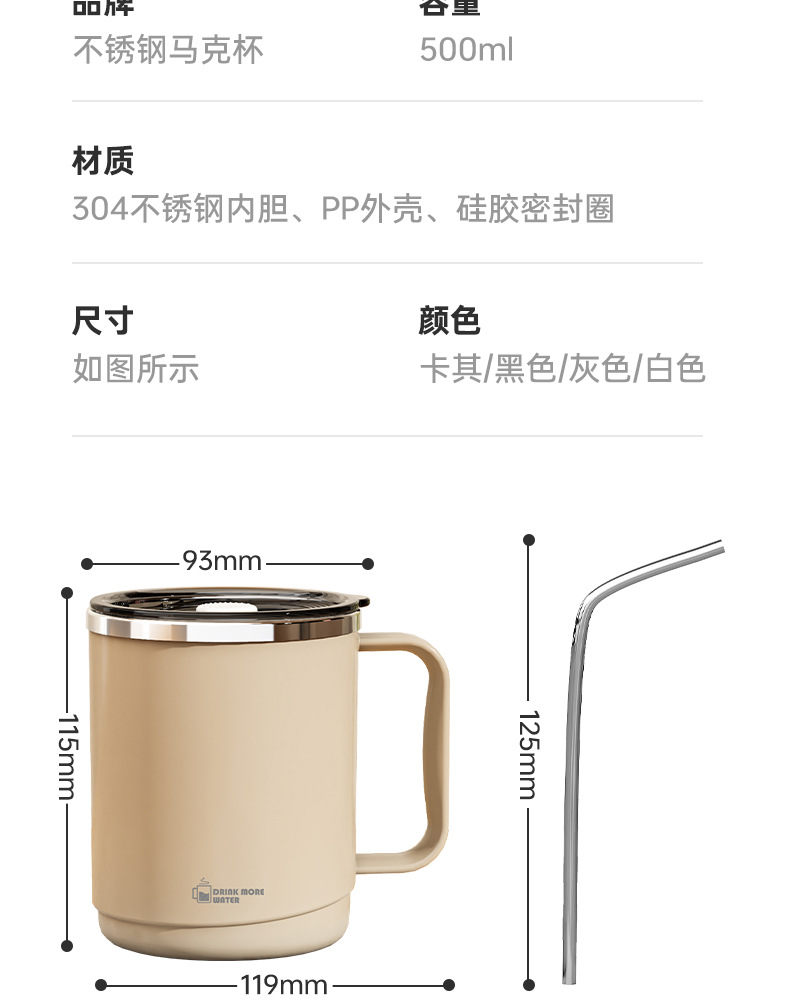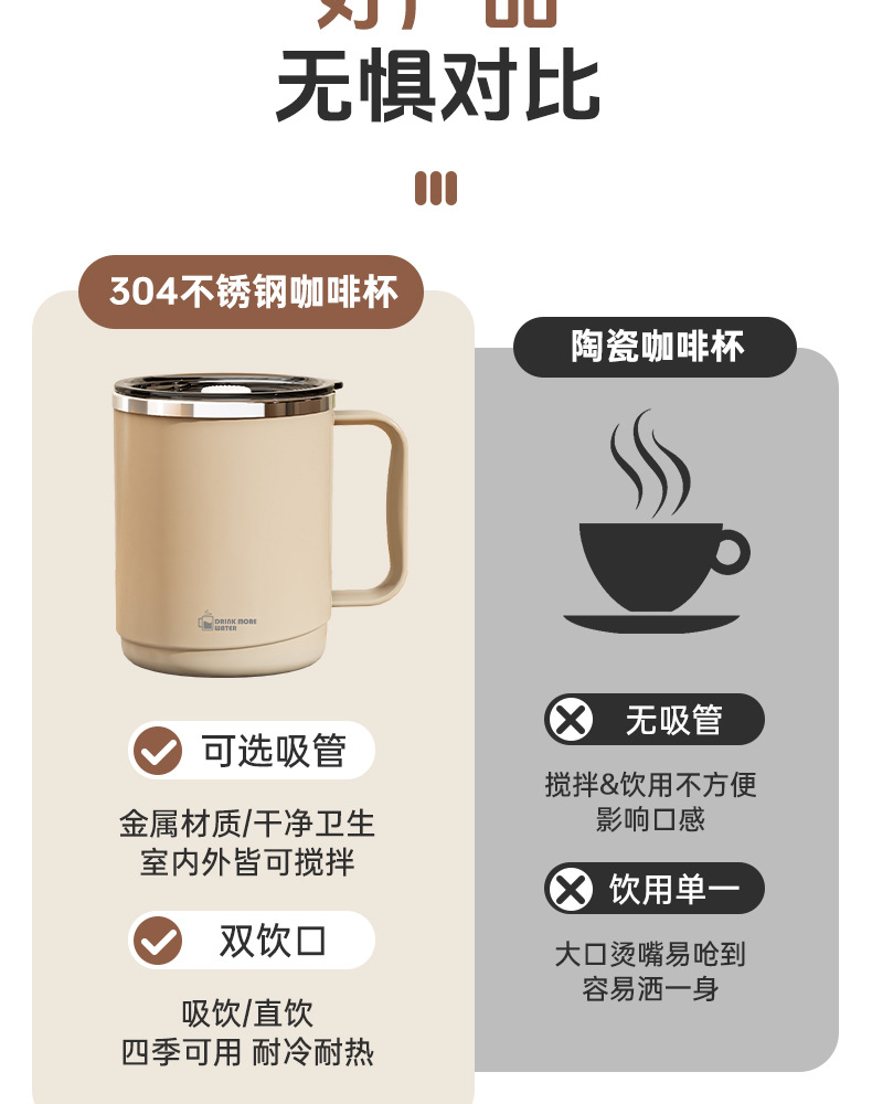 304不锈钢马克杯双层隔热防烫咖啡杯牛奶杯家用办公保温水杯茶杯