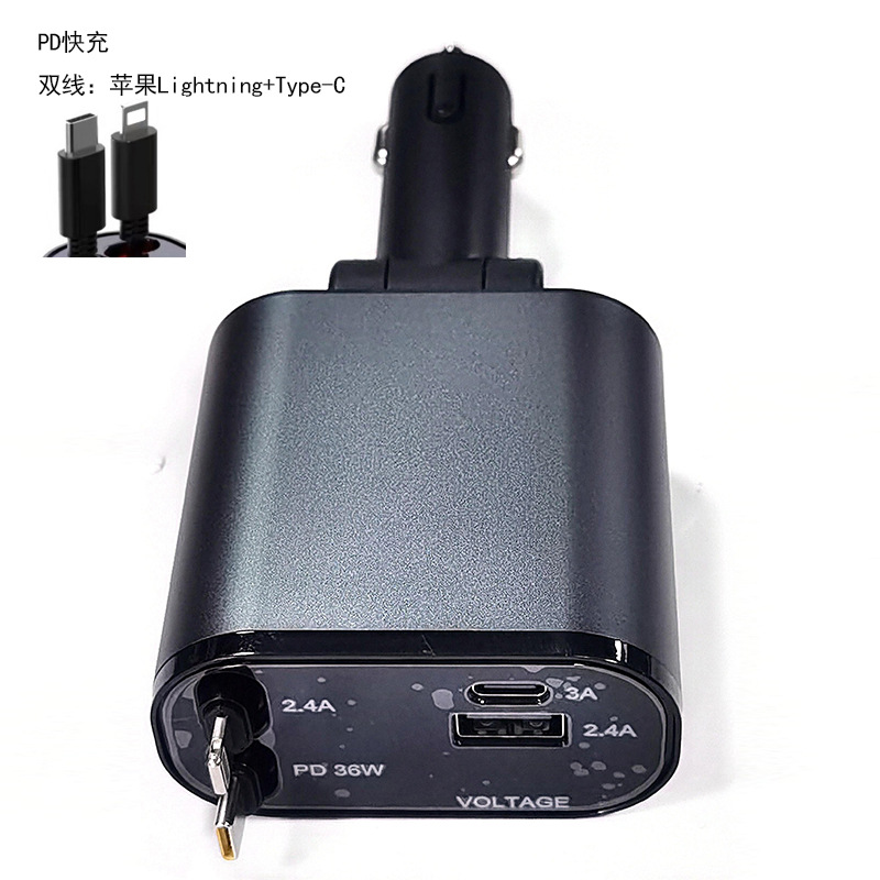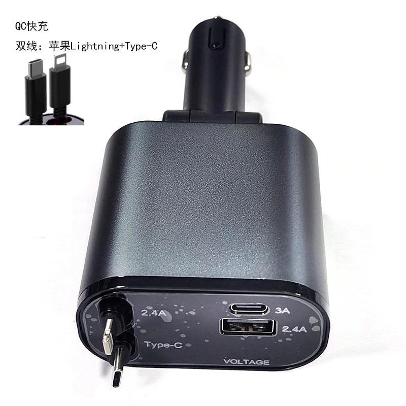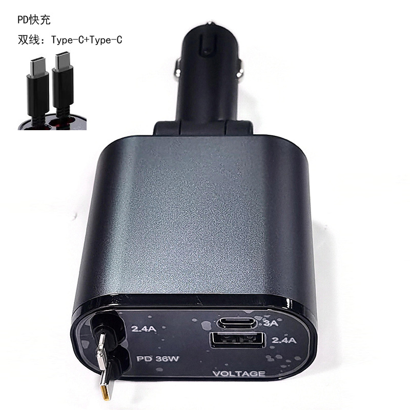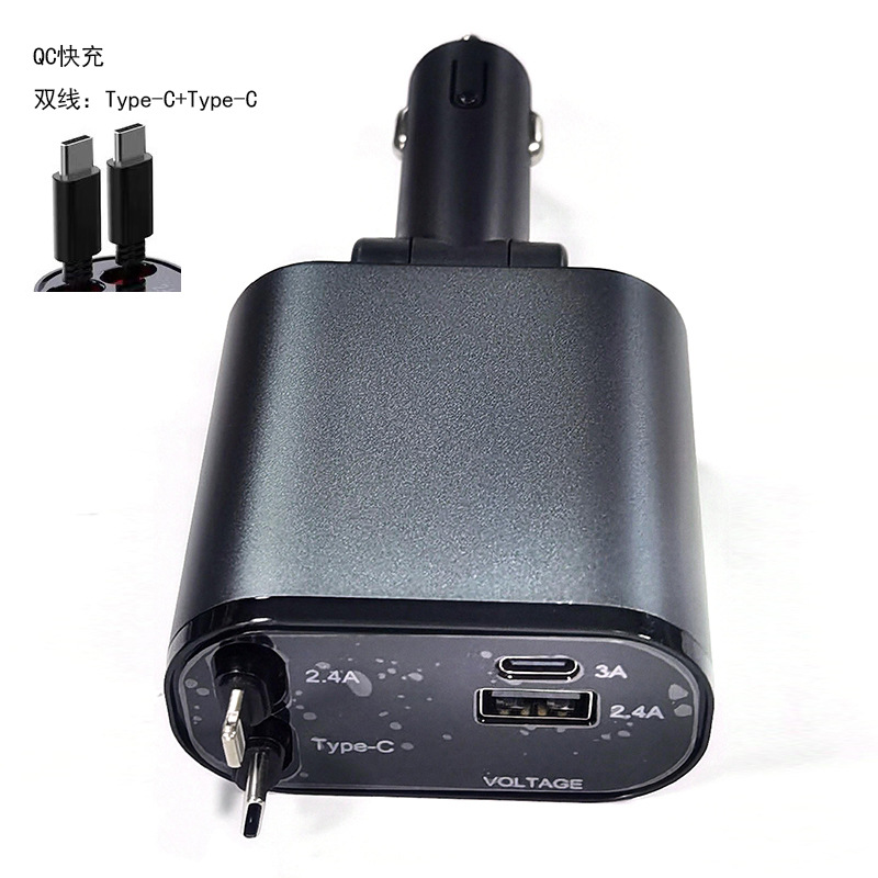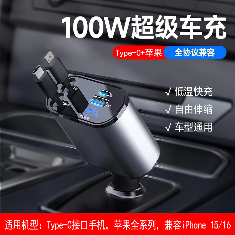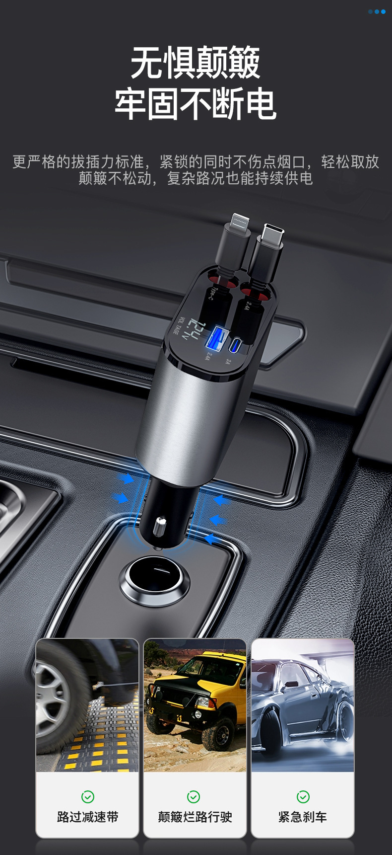 车充数显超级快充闪充金属伸缩线三合一厂家直销点烟器车载充电器