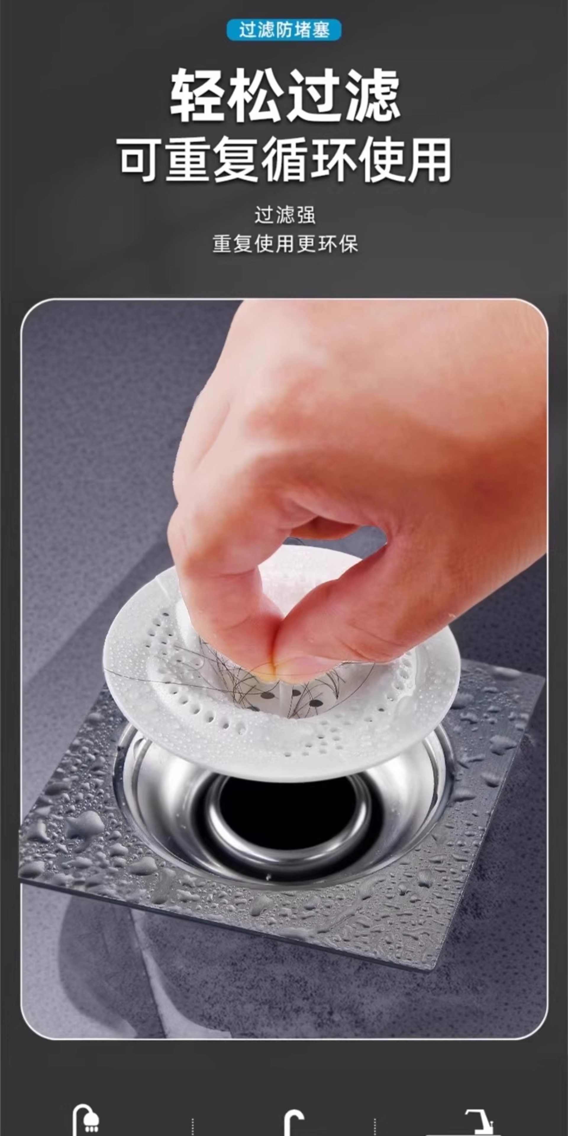 日式旋涡地漏浴室防头发过滤网下水道卫生间浴缸毛发防堵塞地漏盖