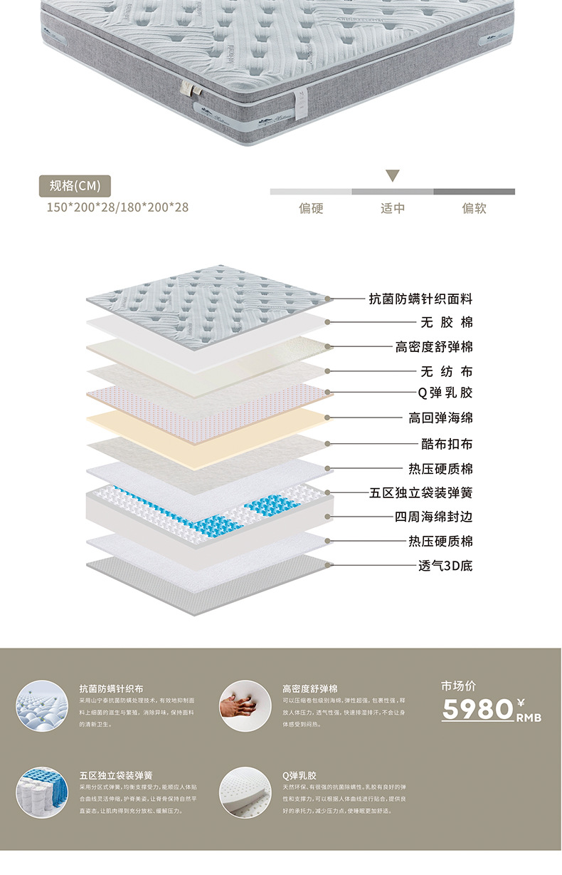 【会呼吸的床垫】主卧家用卧室家用加厚乳胶独立弹簧床垫