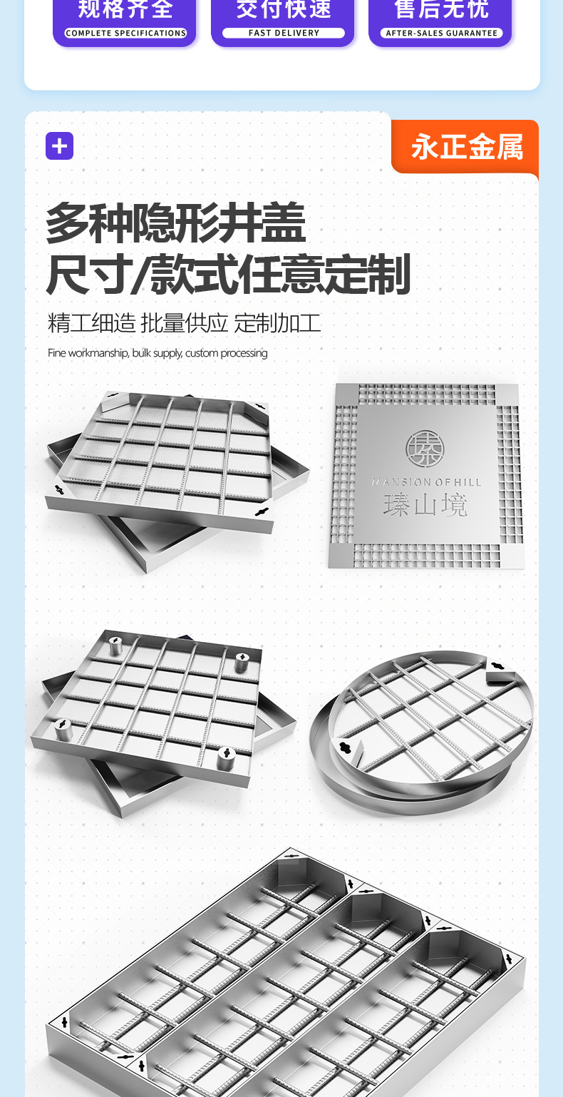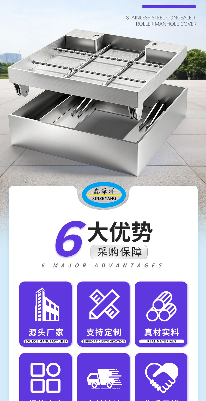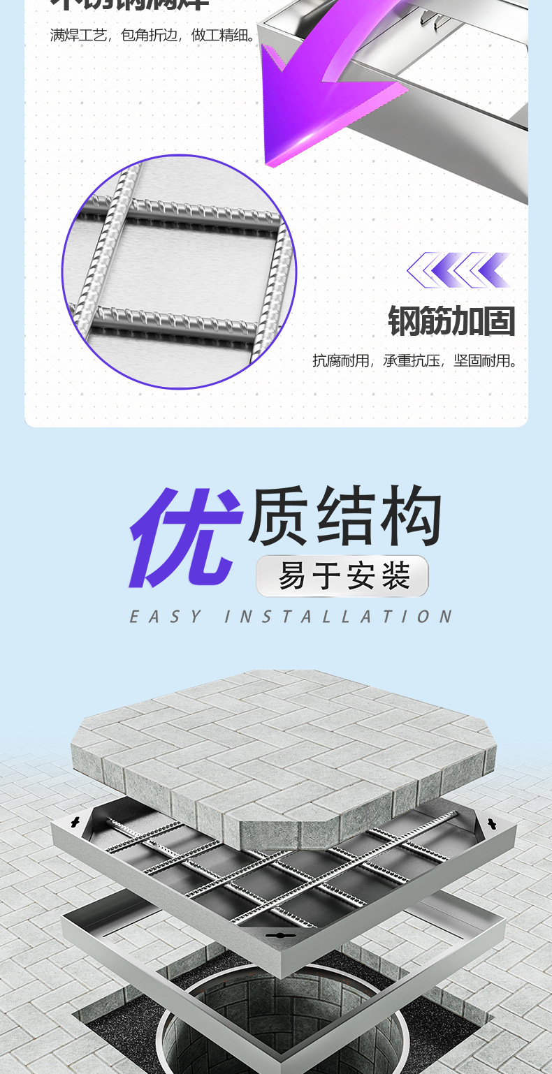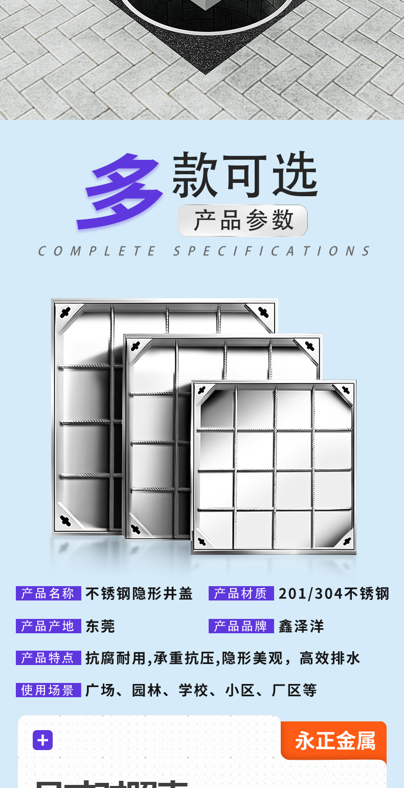 304不锈钢井盖 污水隐形下沉式电缆电力井盖 不锈钢铺砖井盖厂家