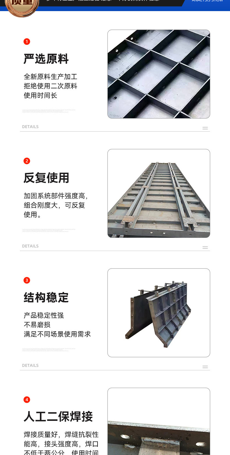 | flat steel formwork(平面钢模板) | USD $0.0 | 94713 piece available |