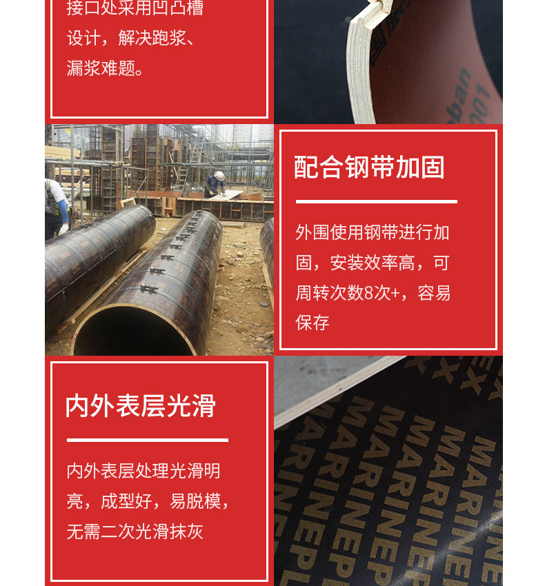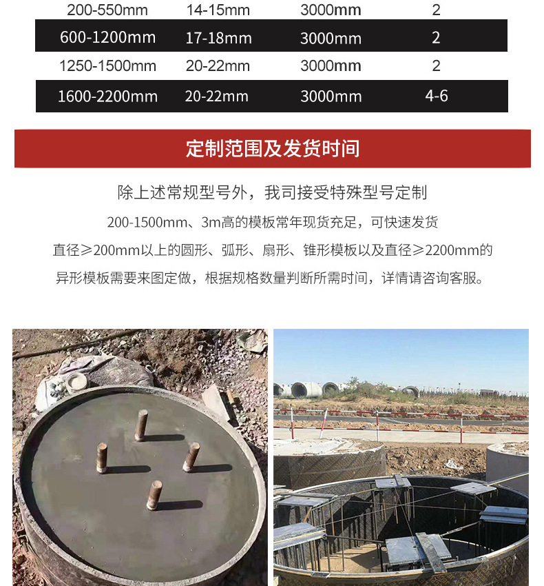 污水检查井模具建筑工地圆模板柱子弧形异形电力基础现浇木质模板