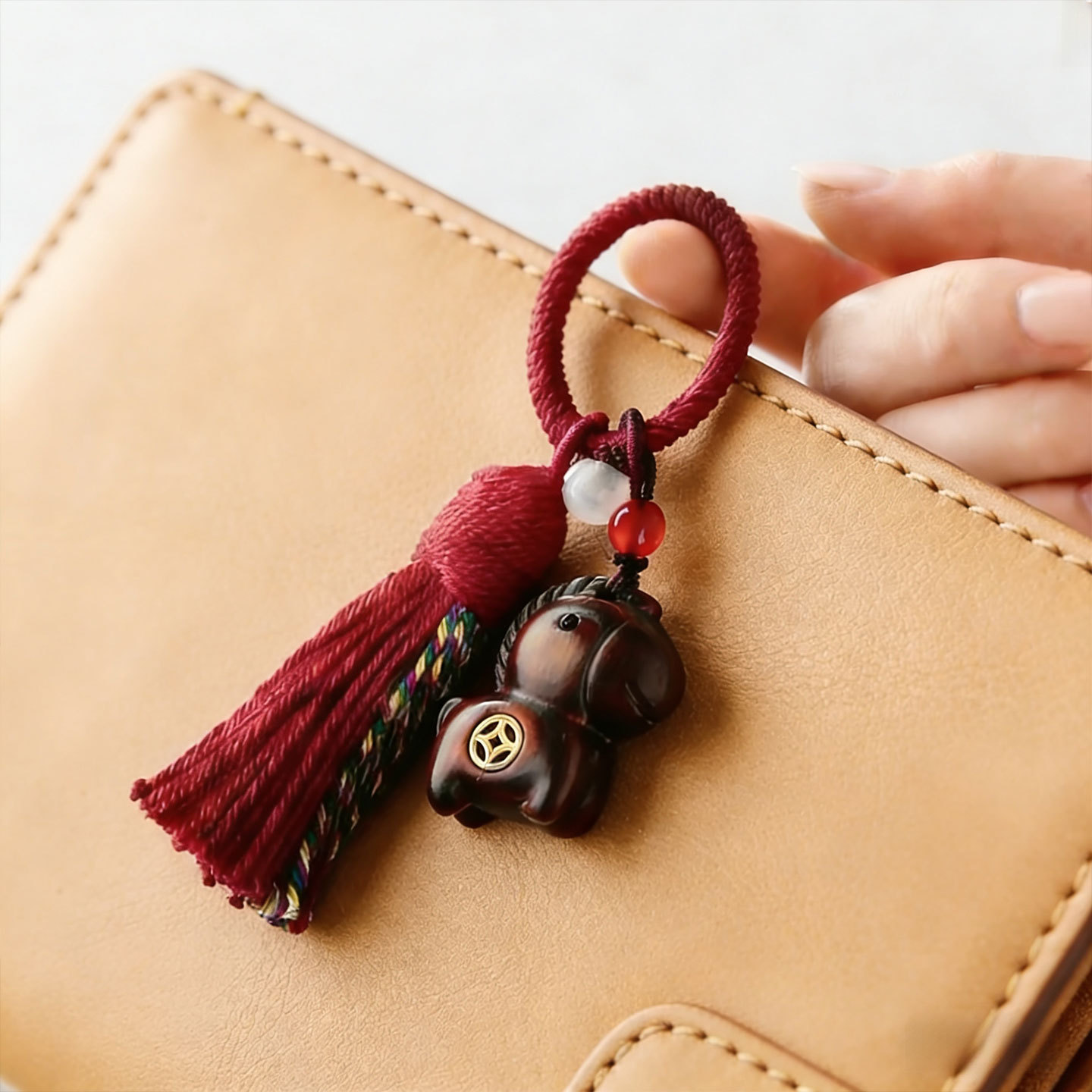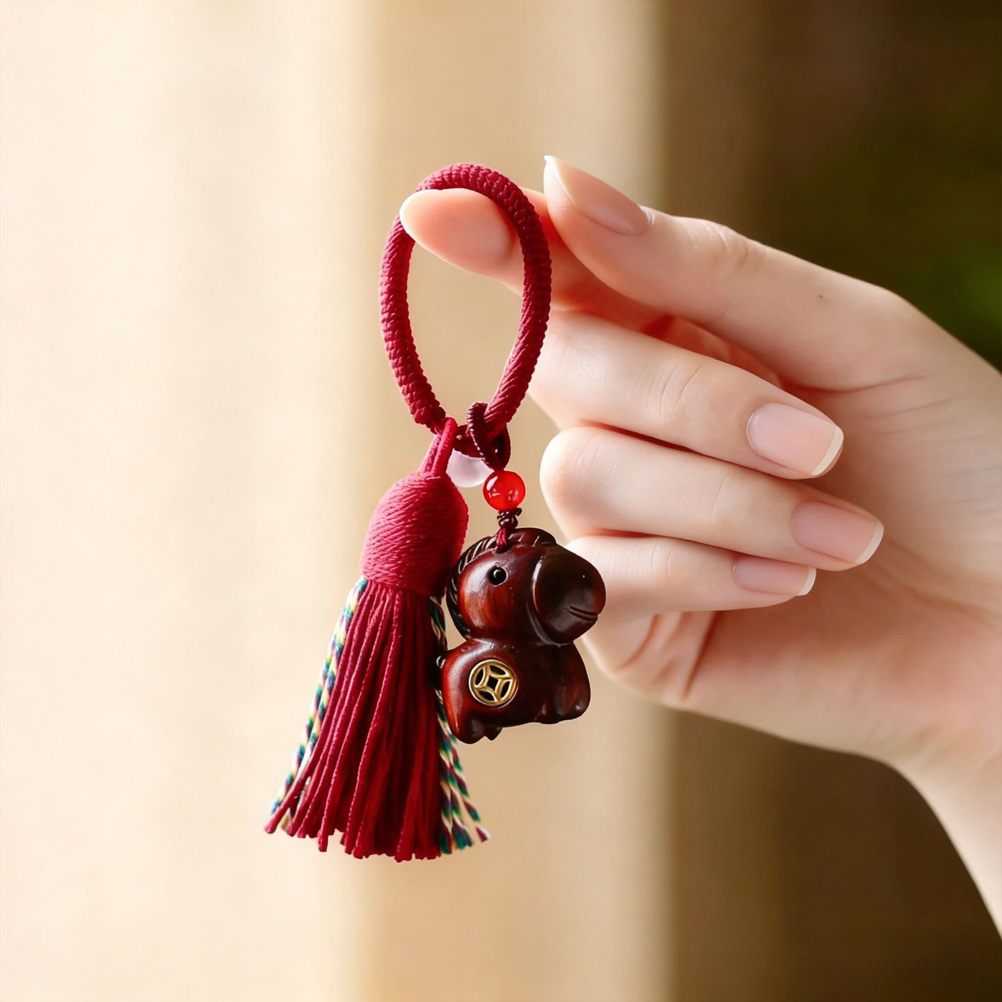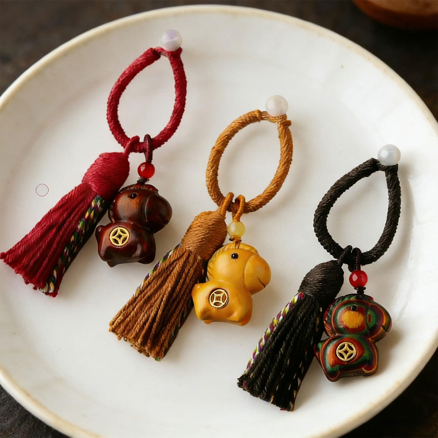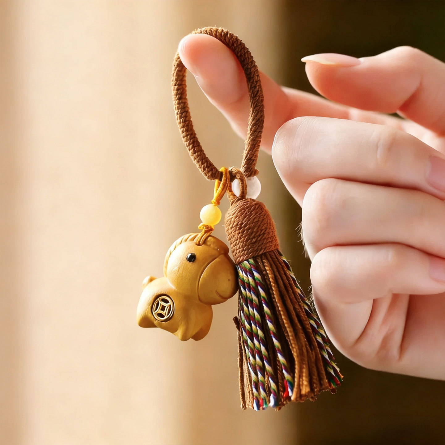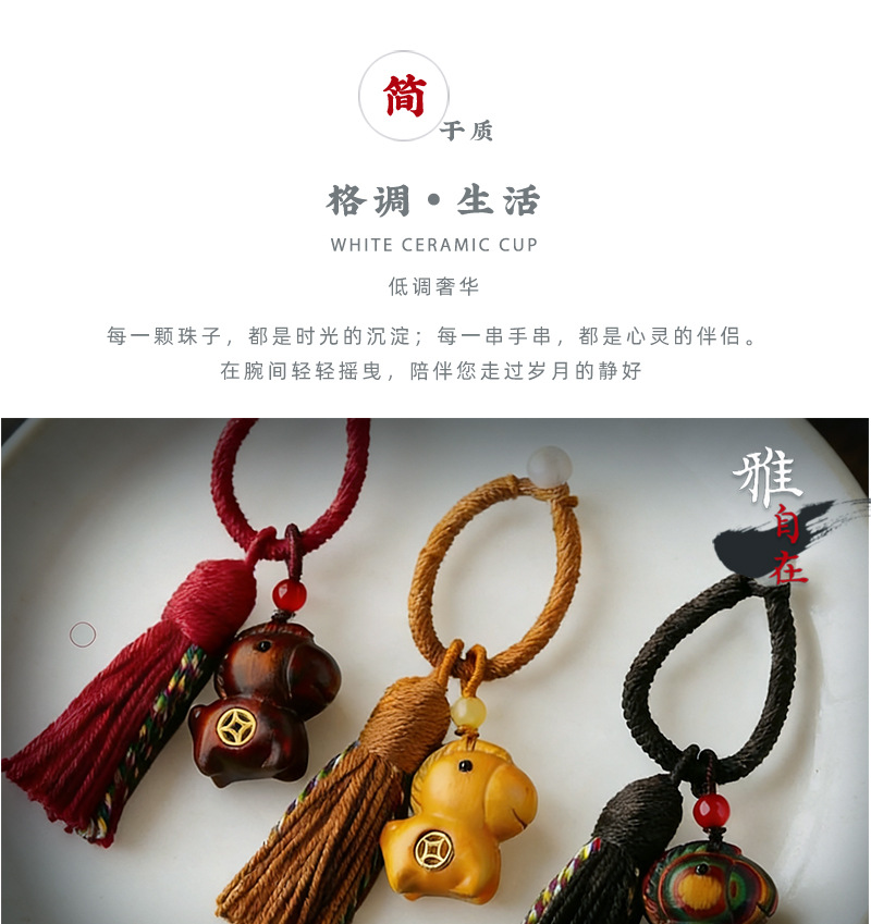 彩虹木马上有钱汽车钥匙扣生肖马车挂手工雕刻包包挂饰情侣挂件