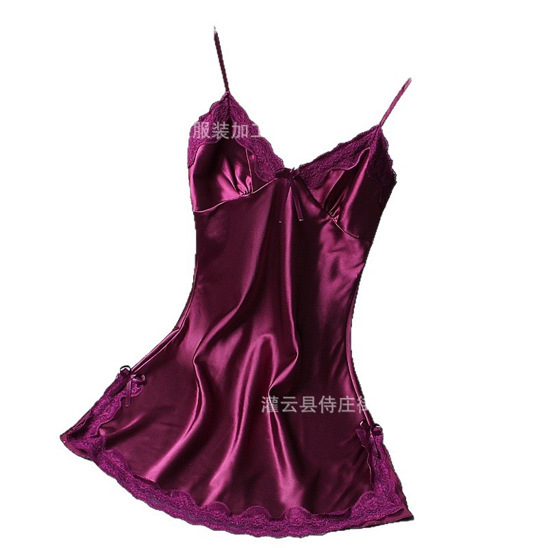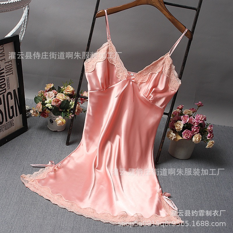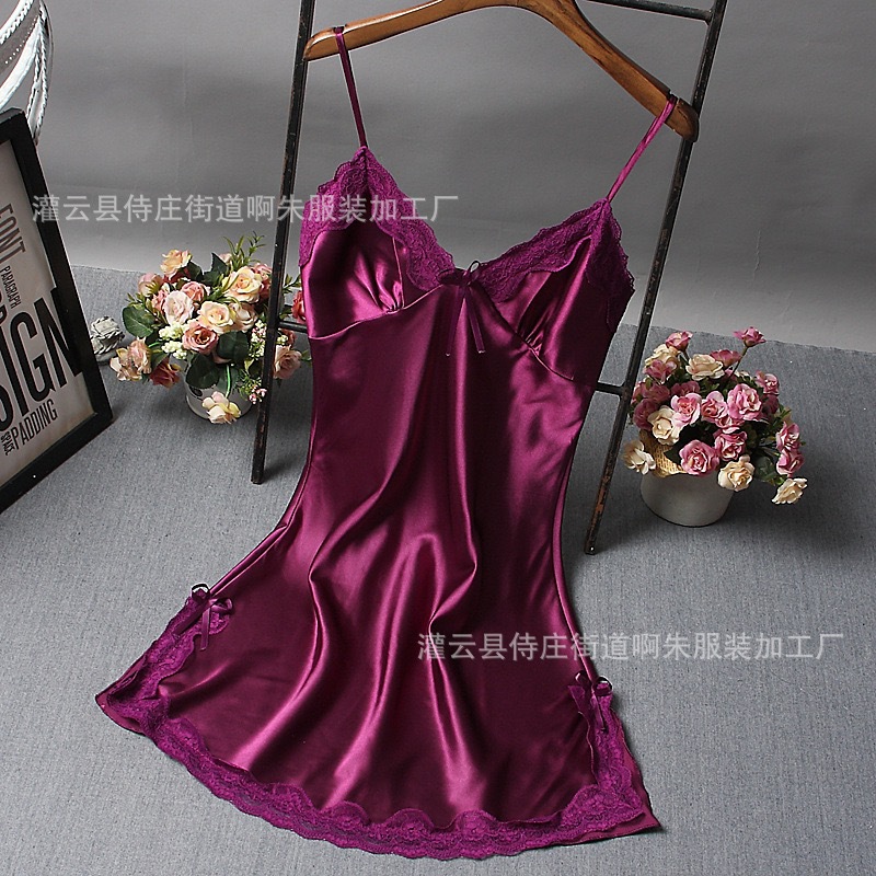 外贸情趣内衣深V领吊带裙仿真丝睡裙家居服睡衣多色套装女亚马逊