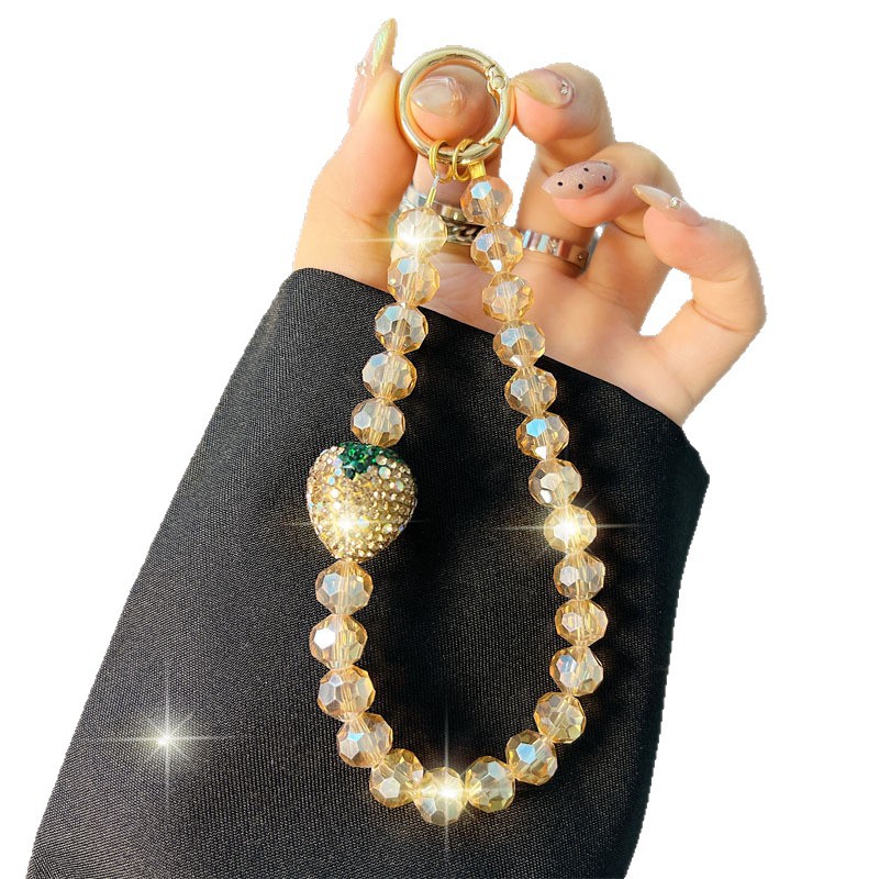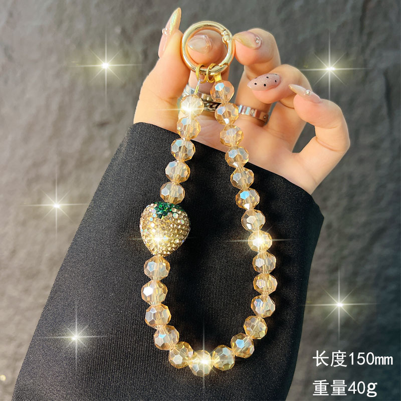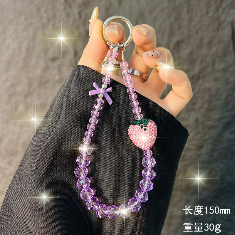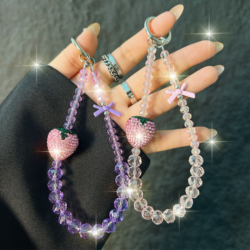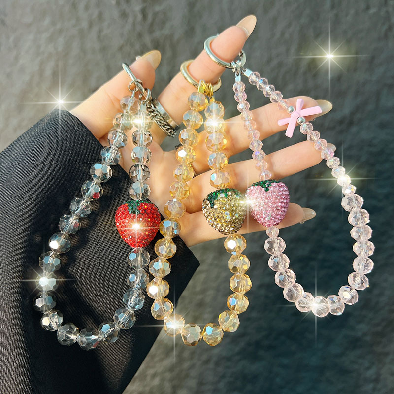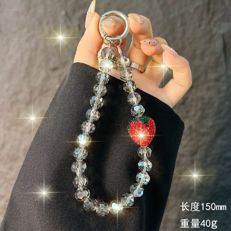 爆款超闪满钻草莓水晶手机挂链手腕串珠挂绳水晶手机链钥匙扣防摔