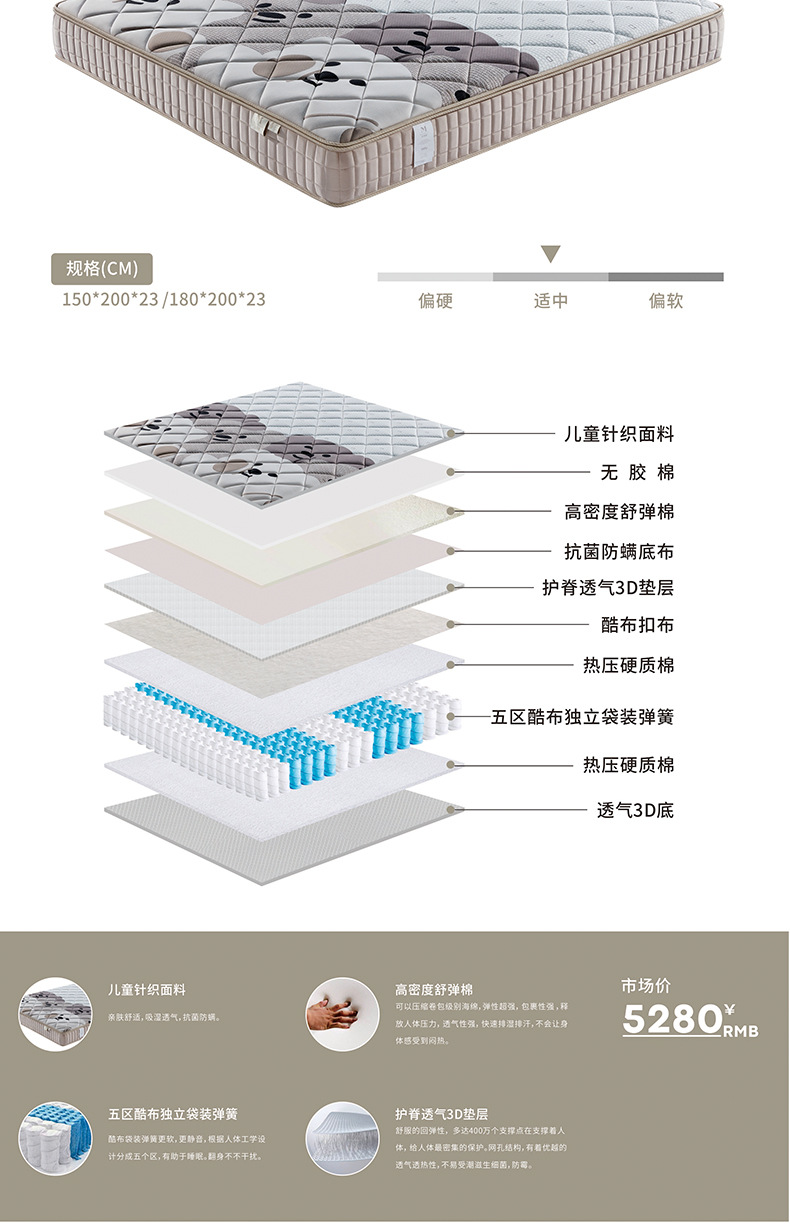 【儿童床垫】主卧家用卧室亲肤家用儿童护脊弹簧床垫